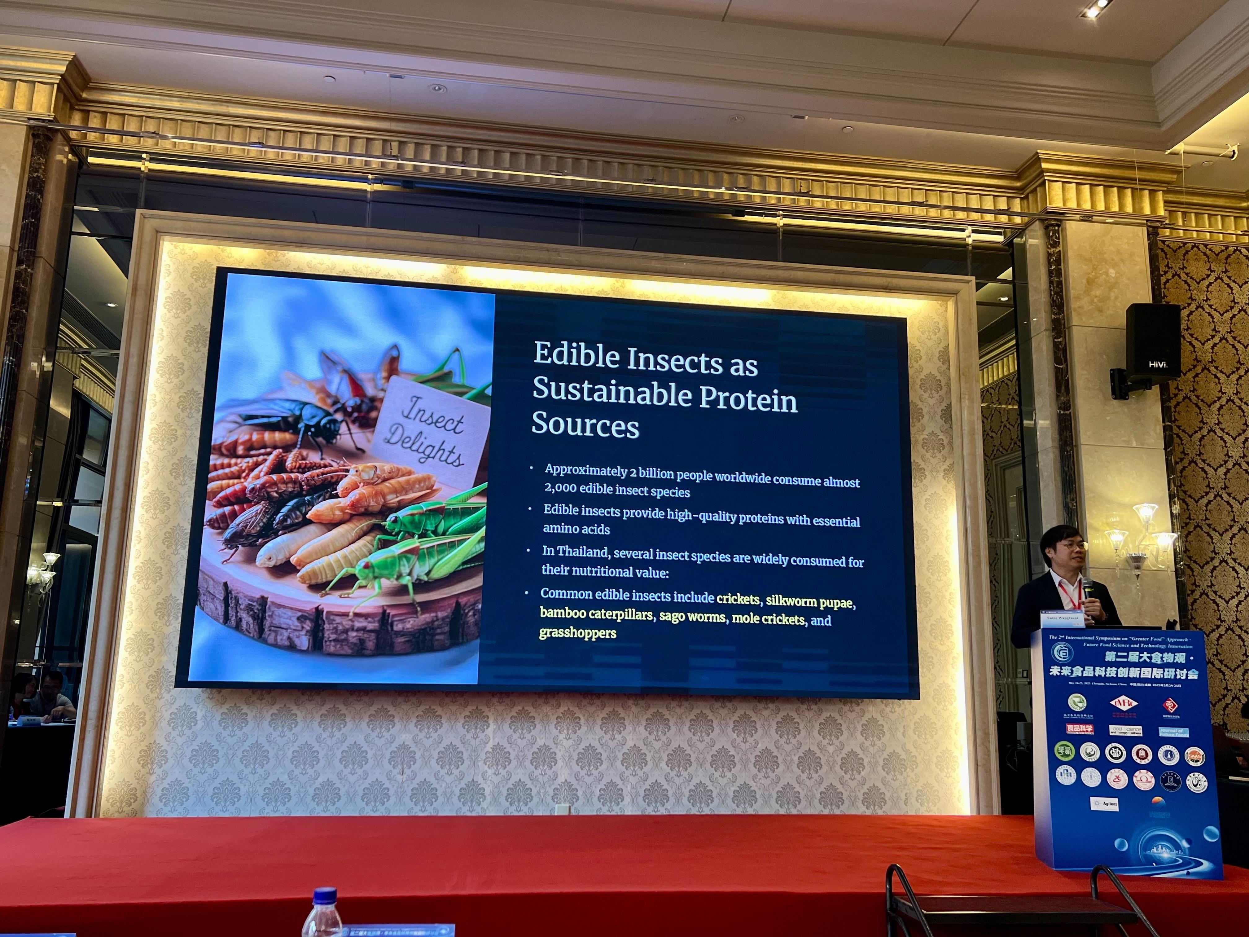 At the symposium, Assoc. Prof. Dr. Sutee Wangtueai delivered a well-received guest lecture on “Physicochemical and Biological Properties of Protein Isolates and Hydrolysates from Six Edible Insect Species in Thailand,” attracting strong interest from both local and international participants.