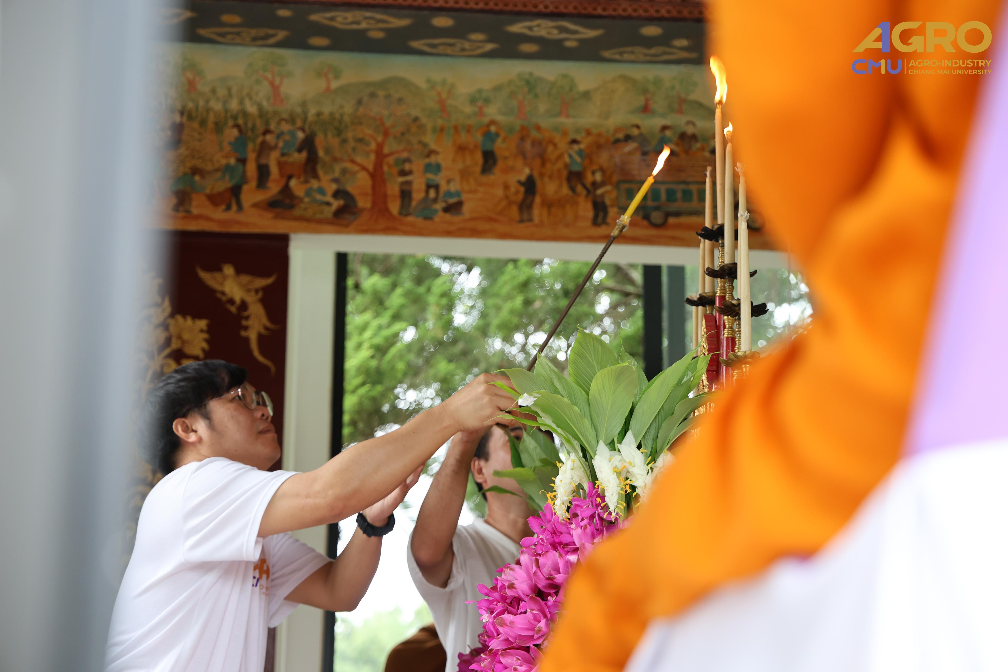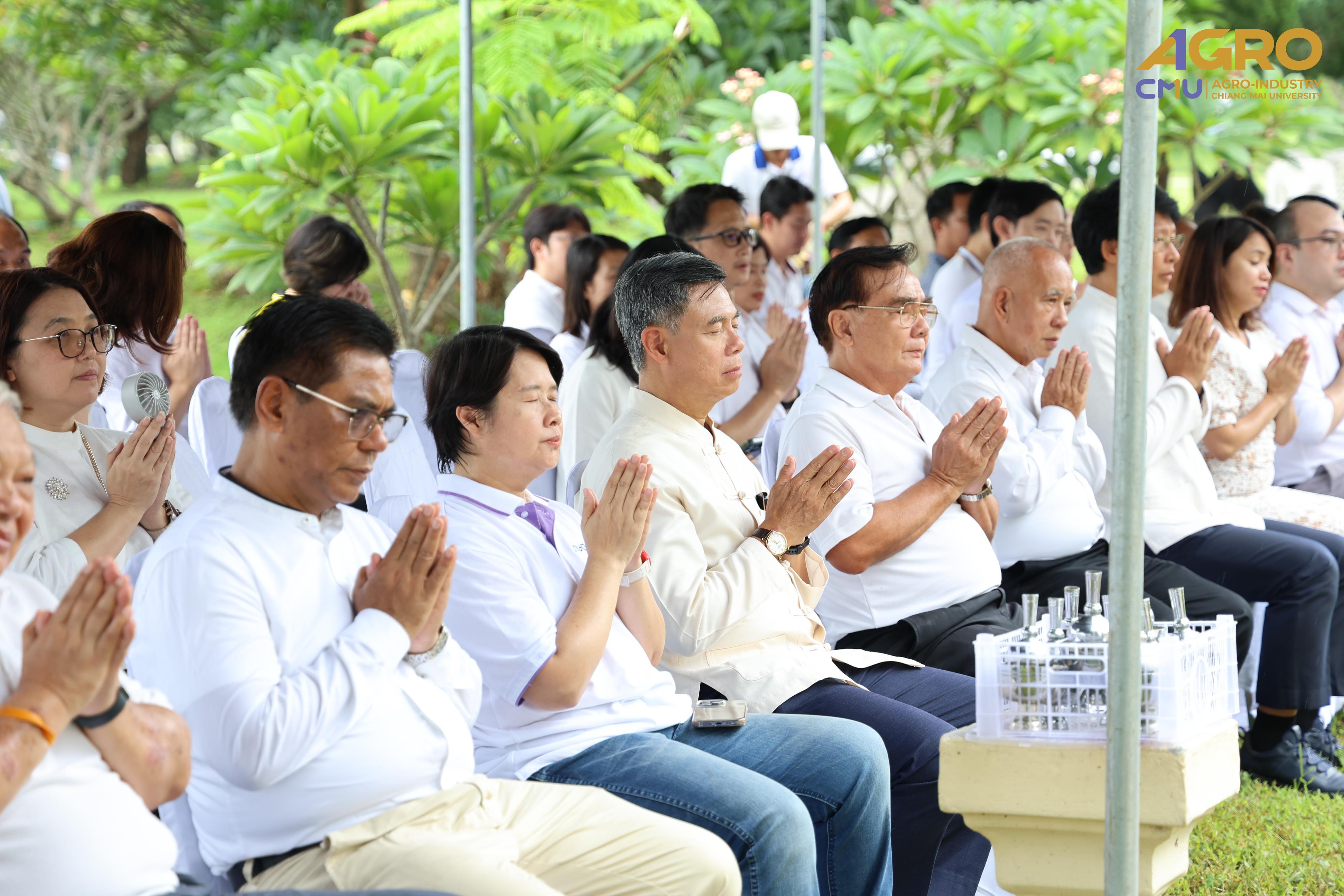 On July 17, 2025, Associate Professor Dr. Sutee Wangtueai, Vice Dean of the Faculty of Agro-Industry, Chiang Mai University, participated in the Ceremonial Placement of the Chatra (Tiered Umbrella) atop the Phra Phuttha Saen Yat Buddha image. This sacred ritual was held as an act of reverence and spiritual offering to honor the Buddha and to bring auspicious blessings to faculty members, staff, and students from various departments of the university. The ceremony took place at the Phra Phuttha Saen Yat Hall, Mae Hia, Faculty of Agriculture, Chiang Mai University.