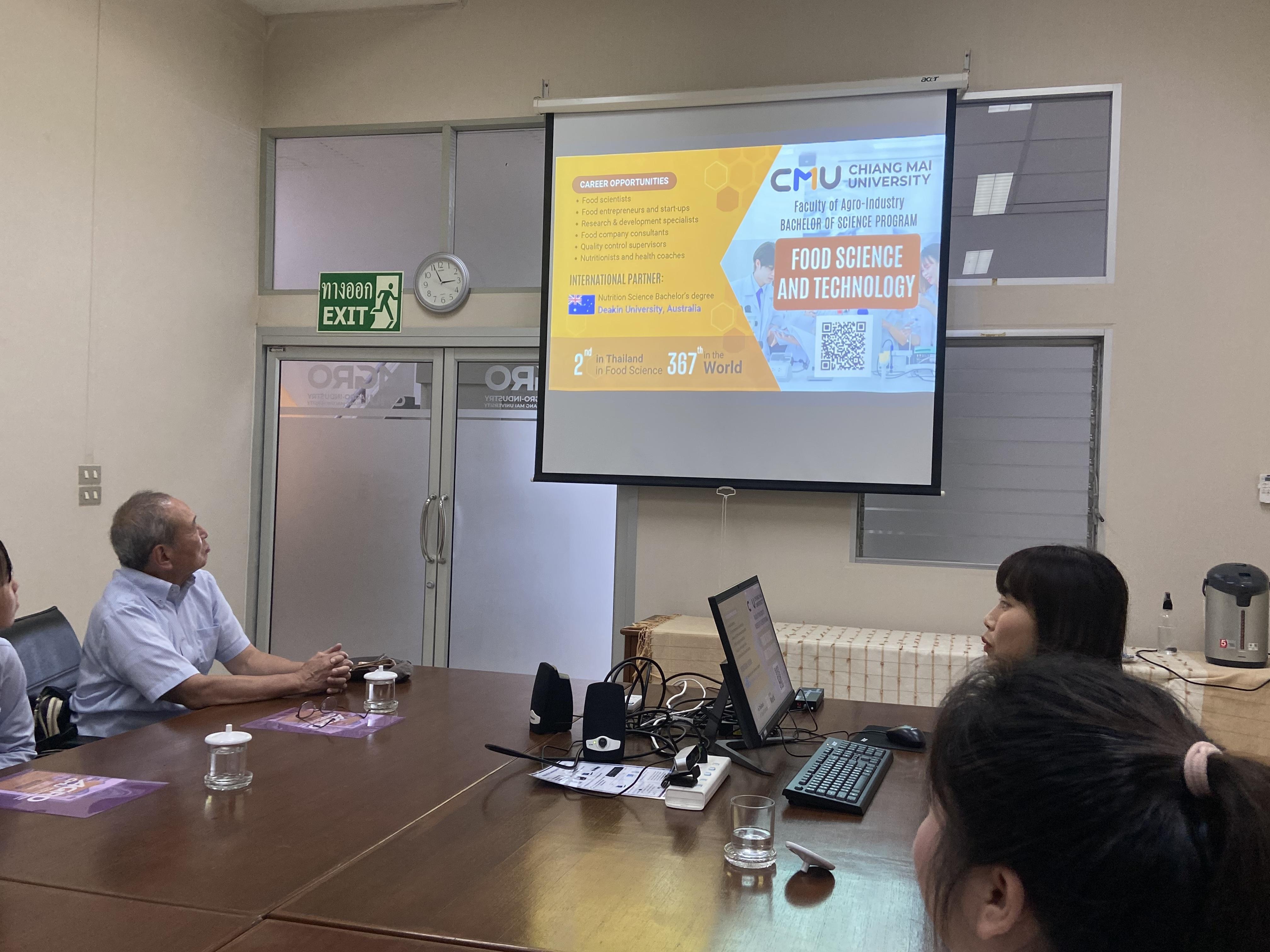 The visit aimed to inspire academic interest in food science and introduce the students to the international curriculum and research capabilities at Chiang Mai University, laying the groundwork for potential future collaboration.