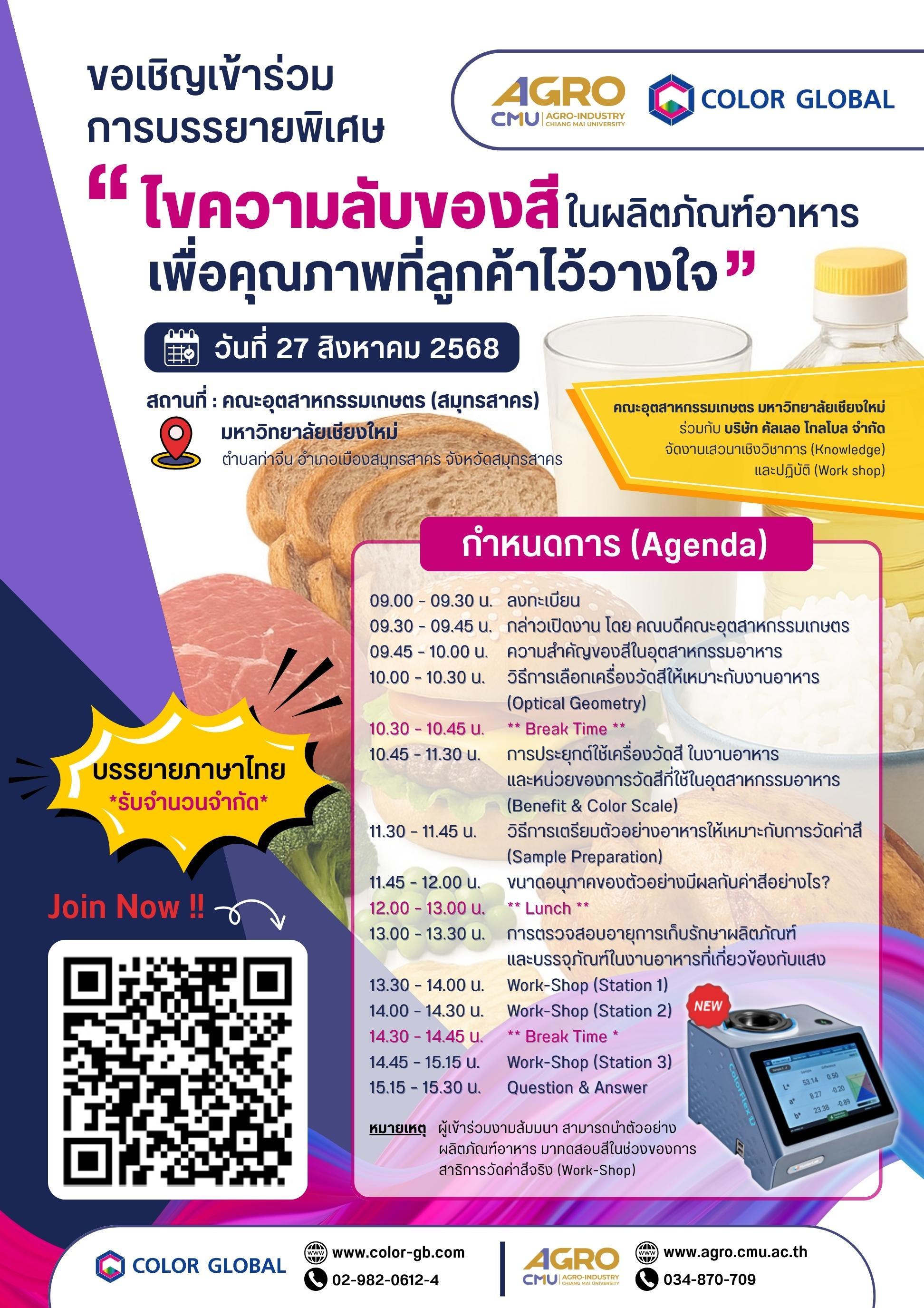ขอเชิญเข้าร่วมการบรรยายพิเศษ "ไขความลับของสีในผลิตภัณฑ์อาหารเพื่อคุณภาพที่ลูกค้าไว้วางใจ"