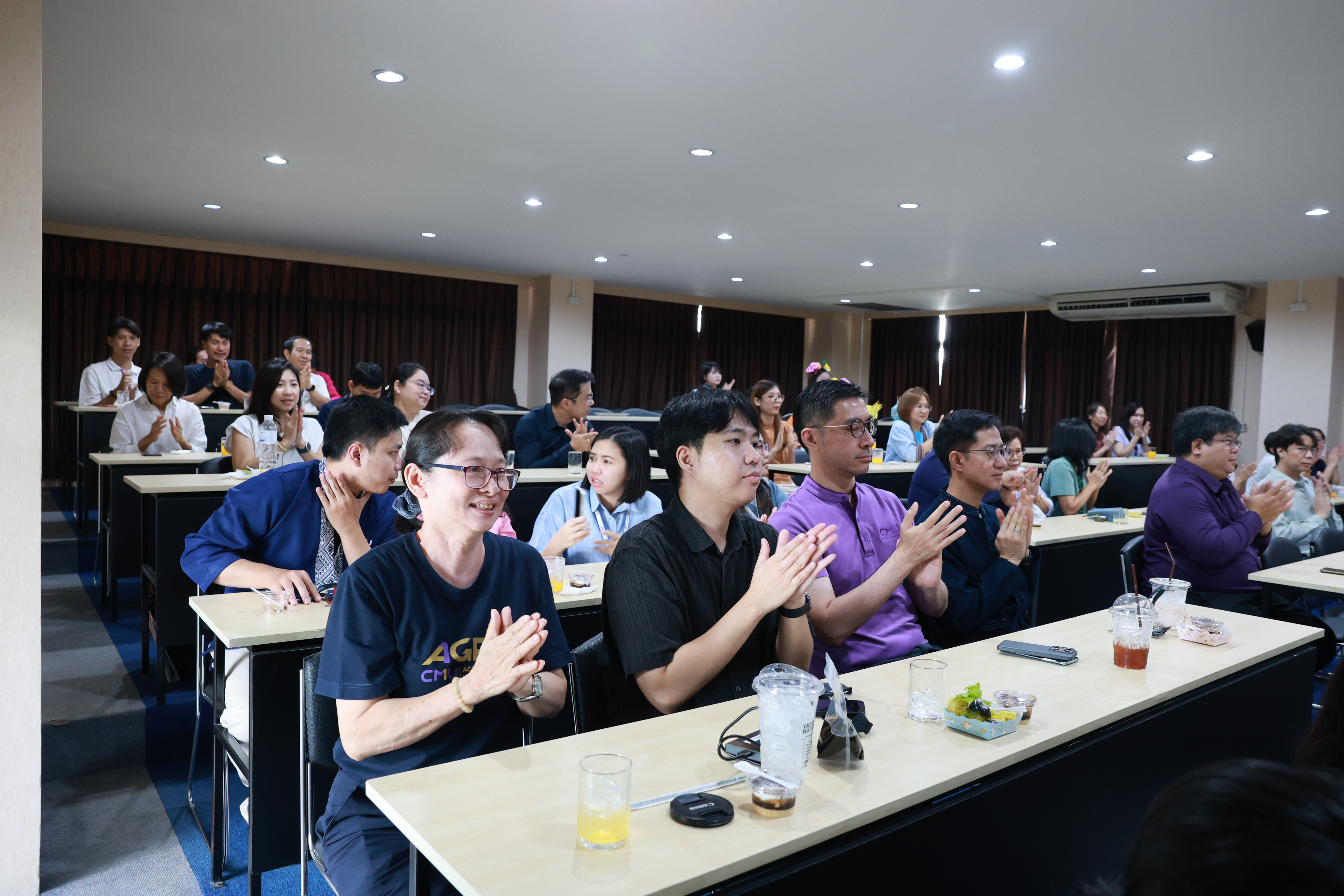 The event was filled with warmth and camaraderie, as administrators, faculty members, and colleagues gathered to extend their congratulations and best wishes for a joyful and fulfilling new chapter in her life. A commemorative gift was presented to Ms.Sangwan Wannakul in a warm and heartfelt atmosphere at Meeting Room 4, Faculty of Agro-Industry Office Building.