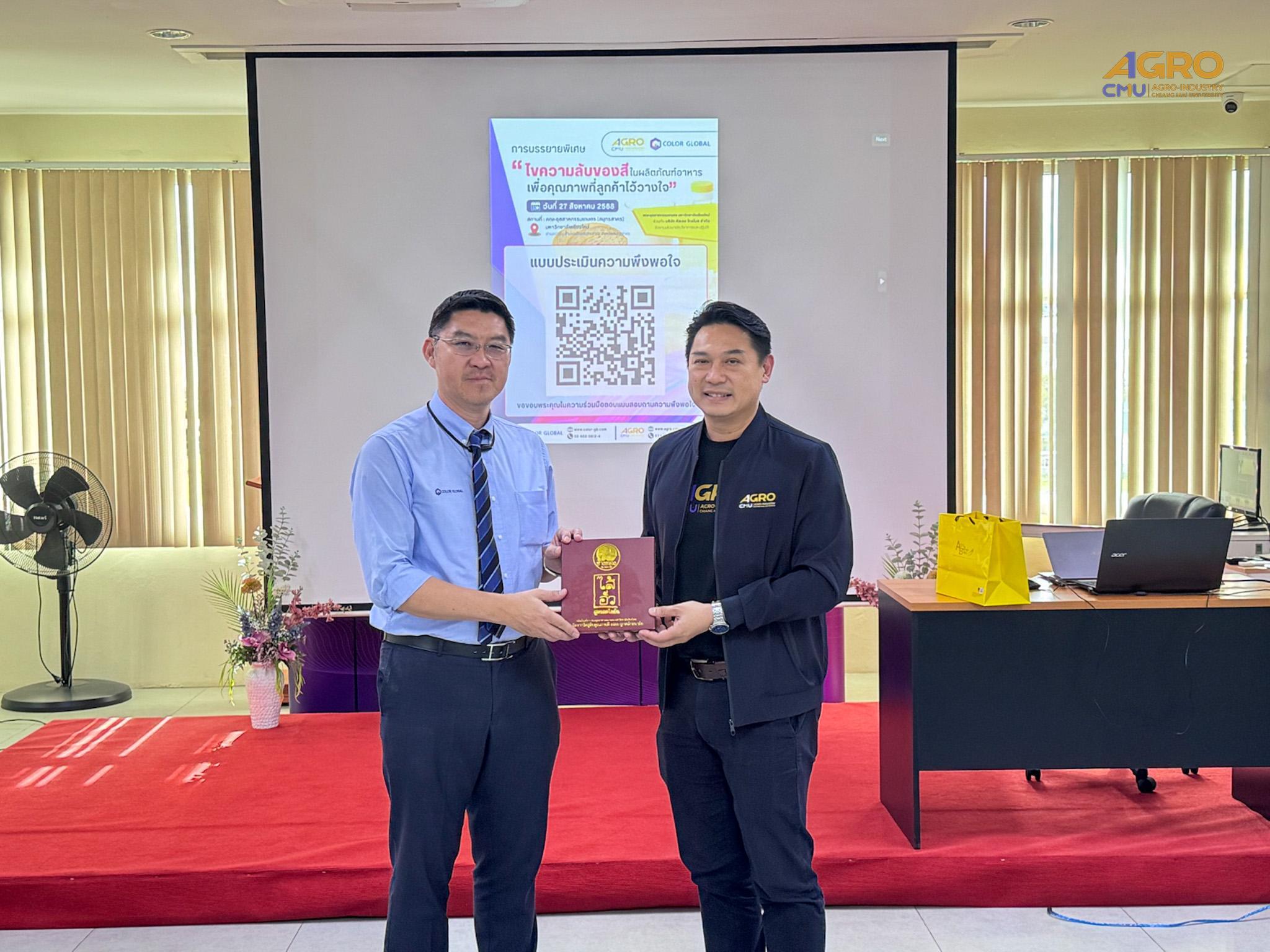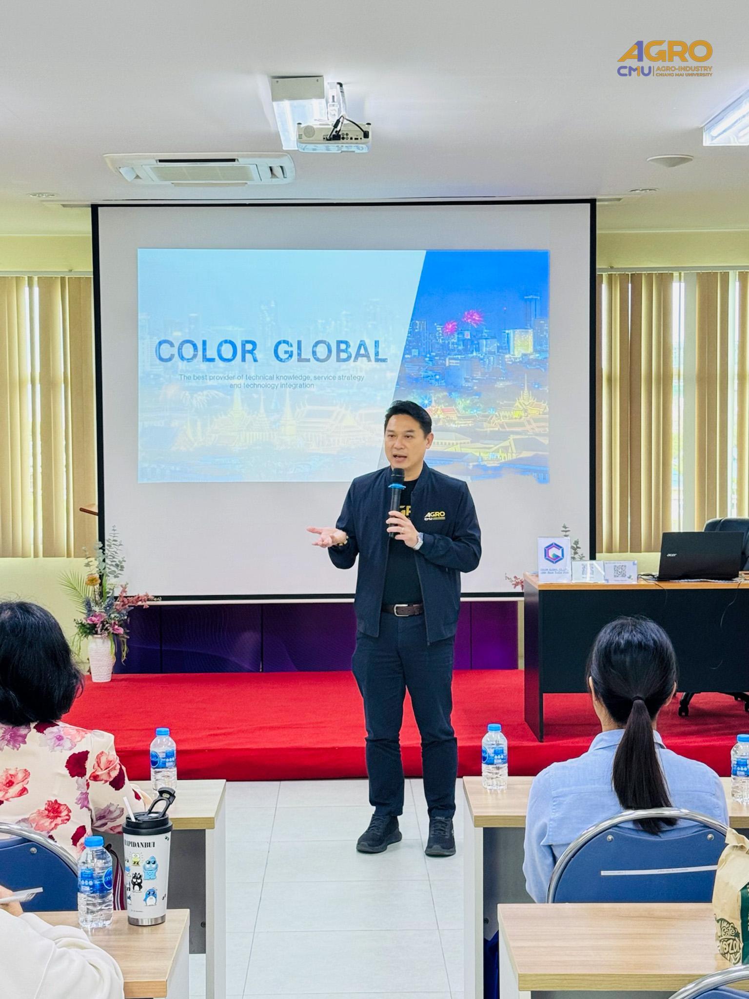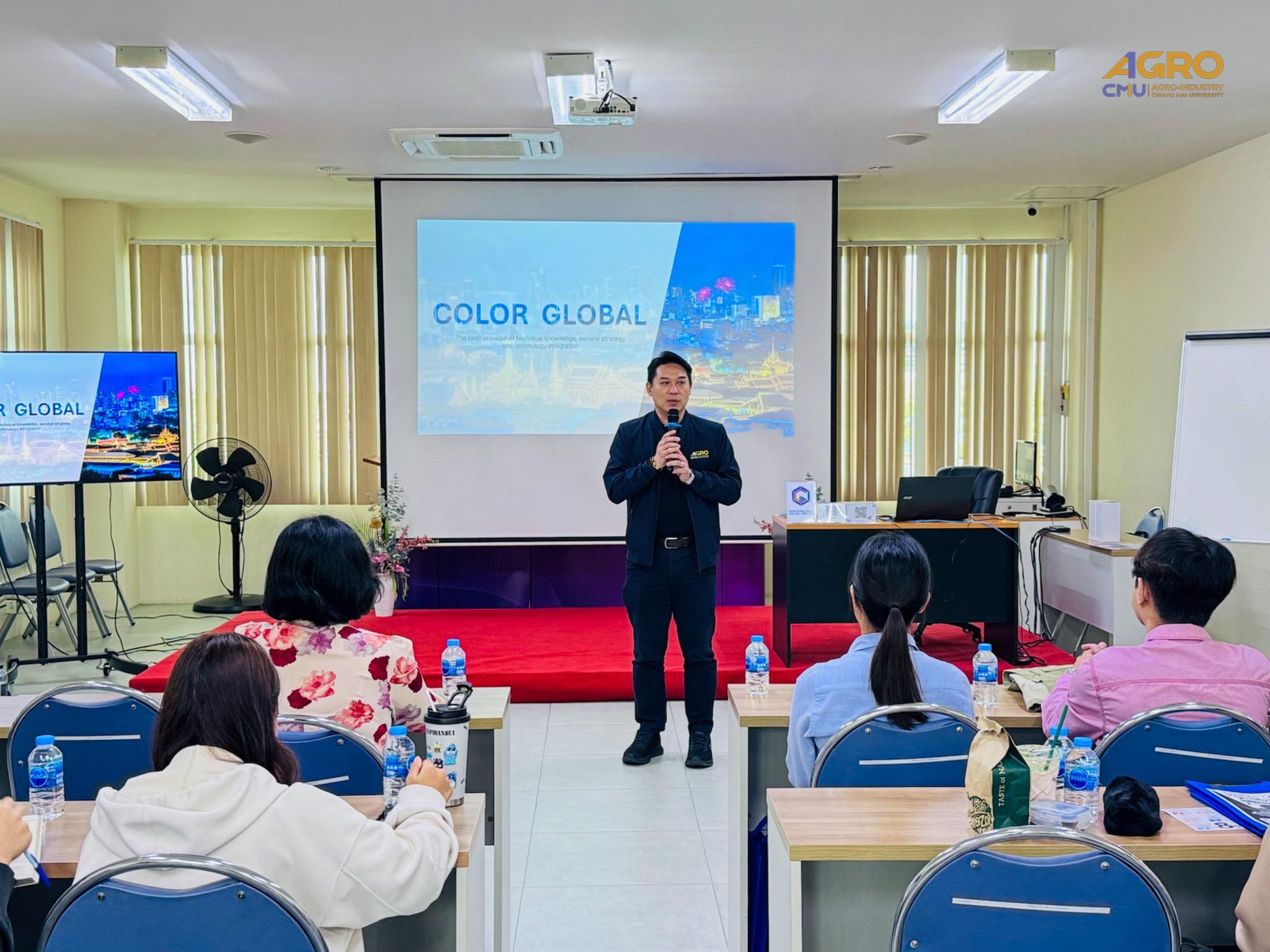 The Faculty of Agro-Industry, Chiang Mai University, in collaboration with Color Global Co., Ltd., organized a special lecture titled “Unlocking the Secrets of Colors in Food Products for Trusted Quality” at the Faculty of Agro-Industry (Samut Sakhon), Chiang Mai University.This event targeted entrepreneurs, employees, staff, and practitioners involved in the food industry in Samut Sakhon Province and nearby areas.