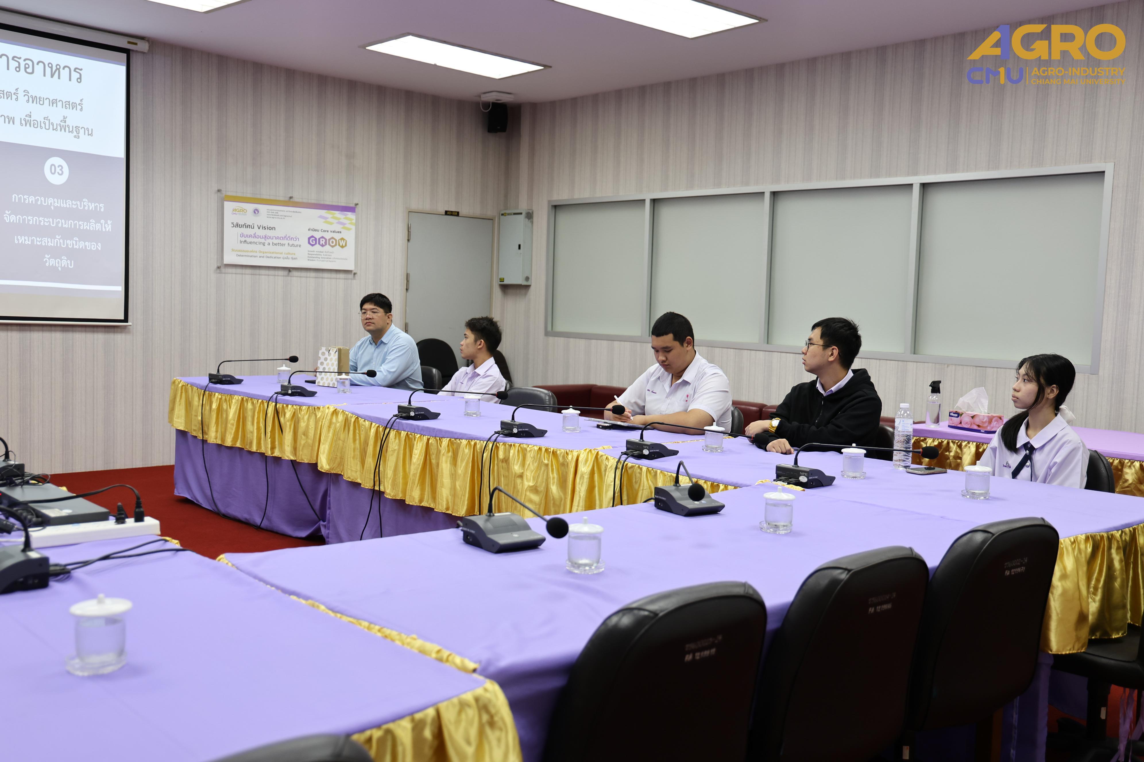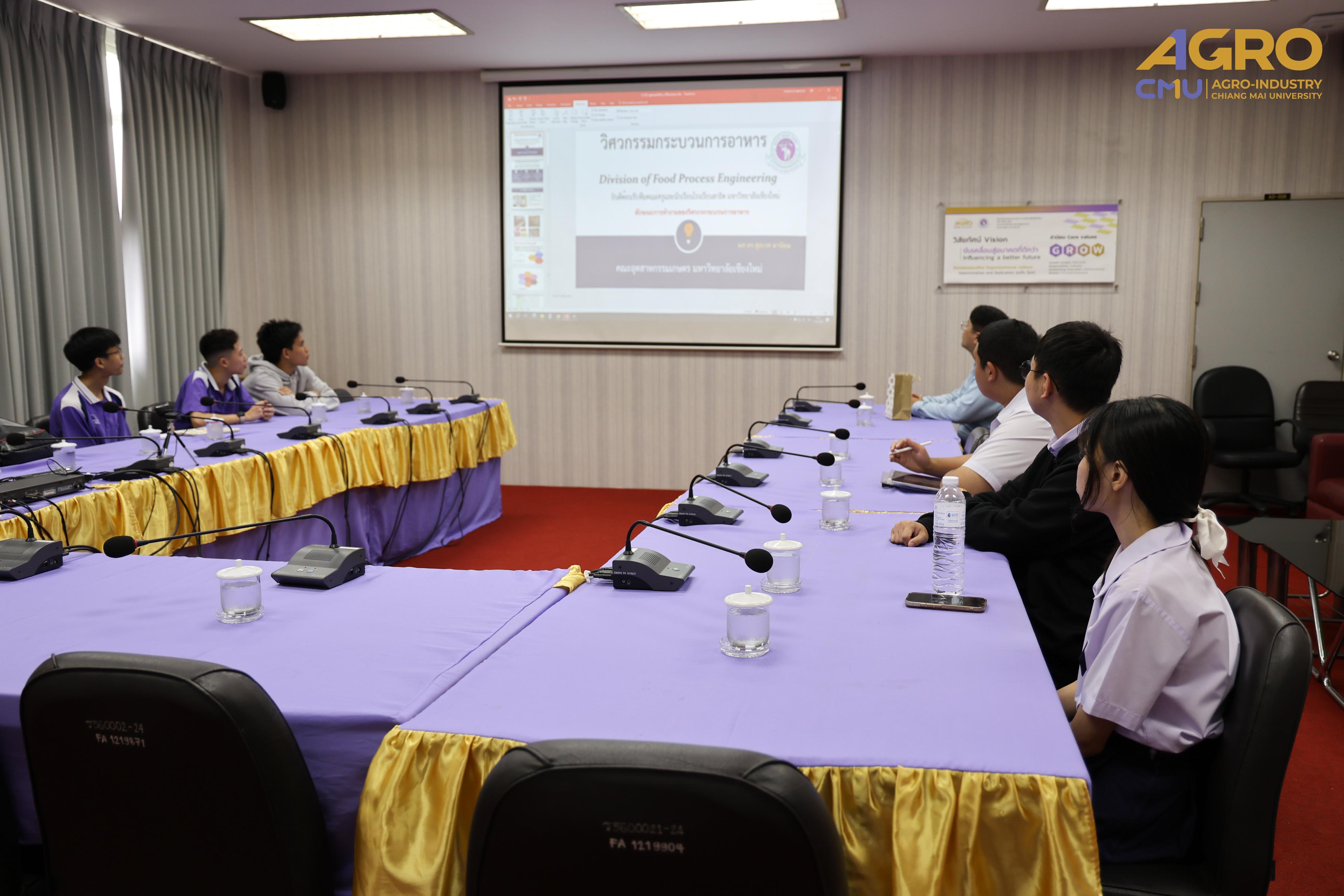 On August 27, 2025, from 10:30 a.m. to 12:00 p.m., the Division of Food Engineering, Faculty of Agro-Industry, Chiang Mai University, warmly welcomed teachers and students from Chiang Mai University Demonstration School for an educational visit and learning experience about the teaching and learning in food engineering.