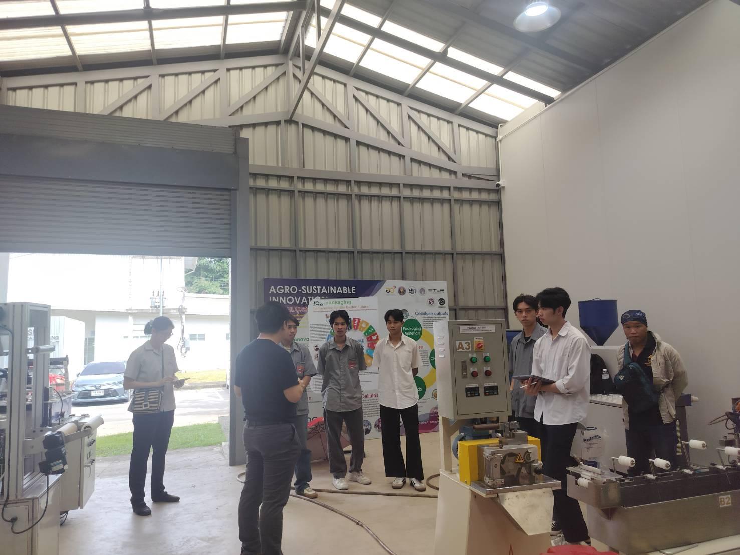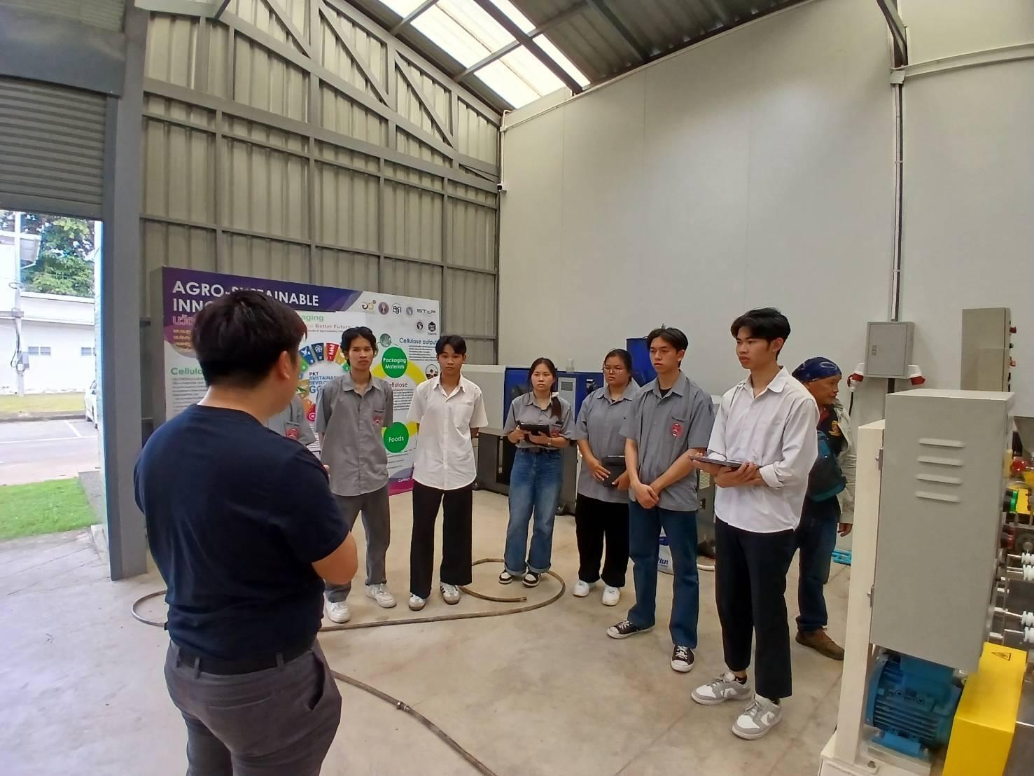 ในการนี้ อาจารย์ ดร.เปรม ทองชัย อาจารย์ประจำสาขาวิชาเทคโนโลยีการบรรจุ และ คุณวรพงษ์ ทับรัตน์ หัวหน้านักวิทยาศาสตร์ กลุ่มปฏิบัติการบรรจุภัณฑ์ ร่วมให้การต้อนรับคณาจารย์และนักศึกษาจำนวน 9 คน ที่เข้าศึกษาดูงานด้านกระบวนการแปรรูปพลาสติก ทั้งภาคทฤษฎีและภาคปฏิบัติ เพื่อเสริมสร้างประสบการณ์และองค์ความรู้แก่นักศึกษาอย่างรอบด้าน