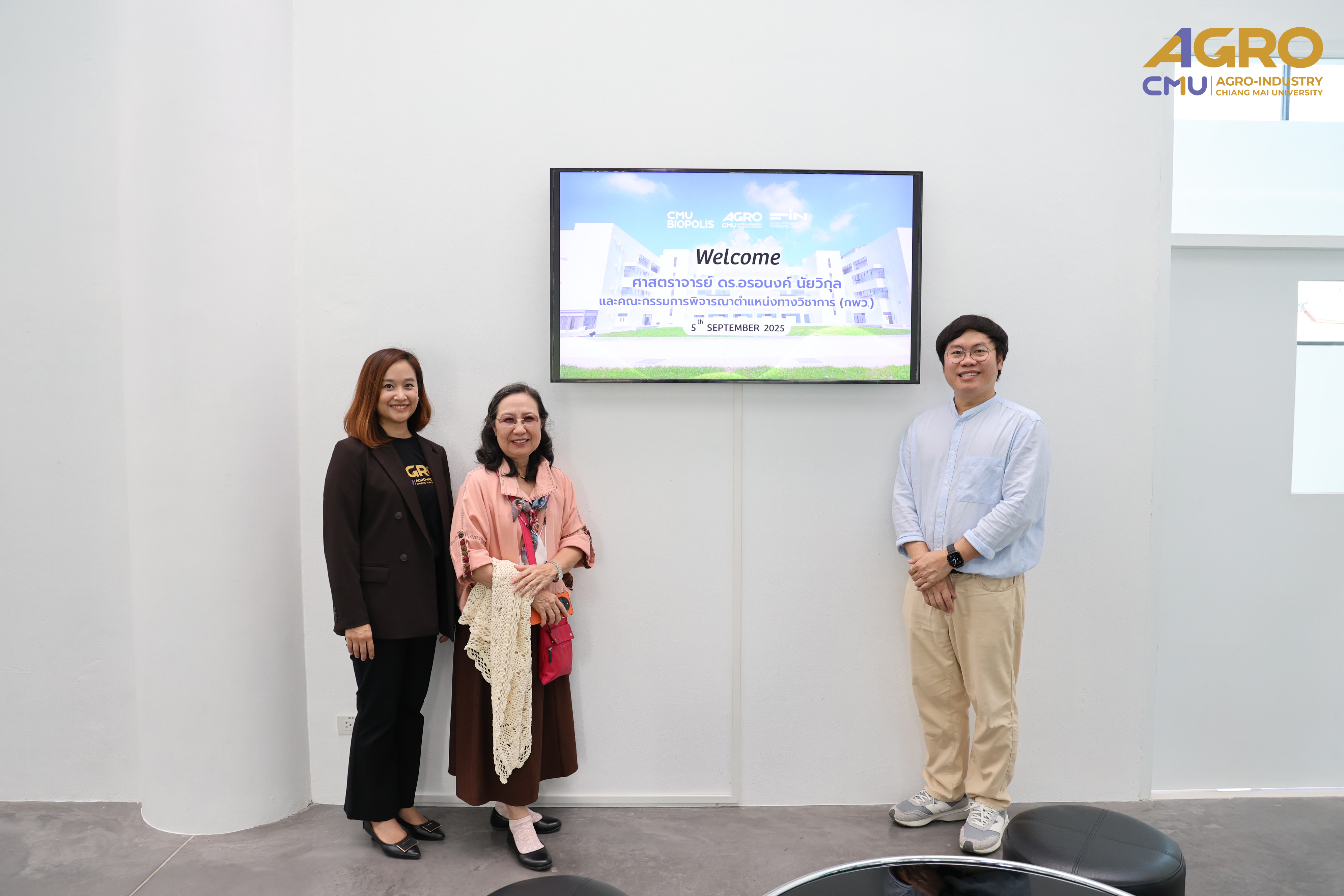 On 5 September 2025, Assistant Professor Dr. Srisuwan Naruenartwongsakul, Associate Dean of the Faculty of Agro-Industry, Chiang Mai University, together with the faculty’s executive team, welcomed the Academic Position Evaluation Committee on the occasion of their official visit to the Faculty at Meeting Room 3, Faculty Office Building.