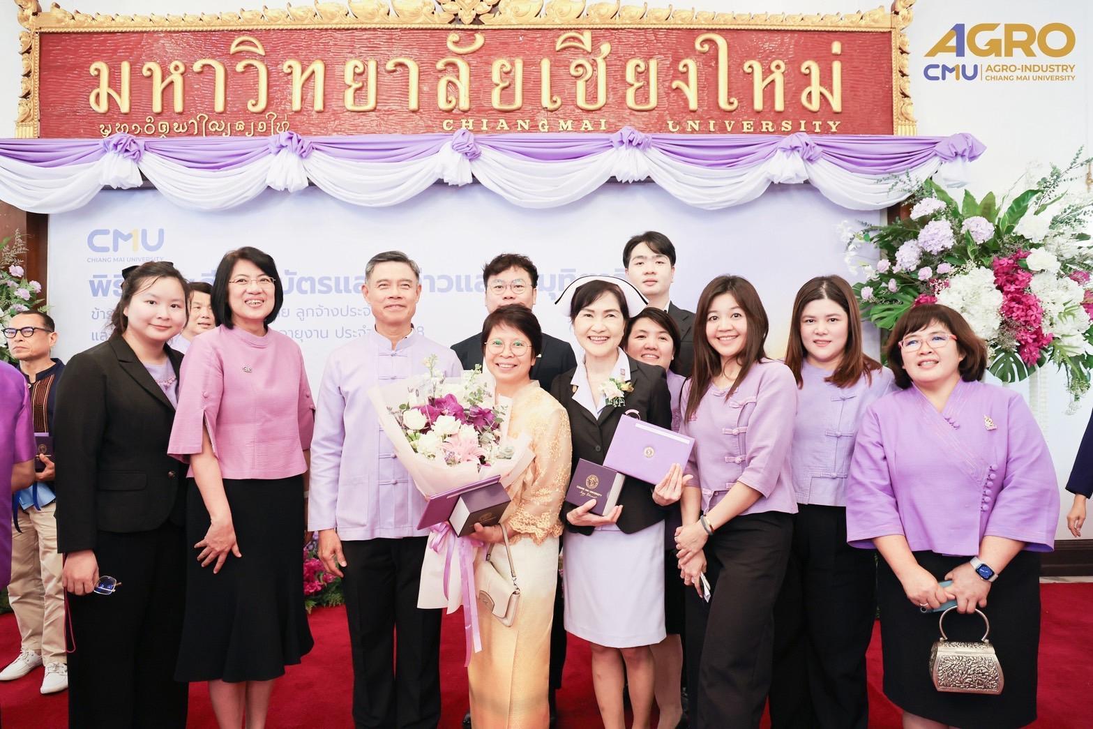 This year, the Faculty of Agro-Industry proudly honors Ms. Sangwan Wannakul, who has reached her retirement, in recognition of her dedication, perseverance, and tireless contributions to the growth and development of Chiang Mai University throughout her years of service. The ceremony took place at the Dhamma pavilion, Chiang Mai University.