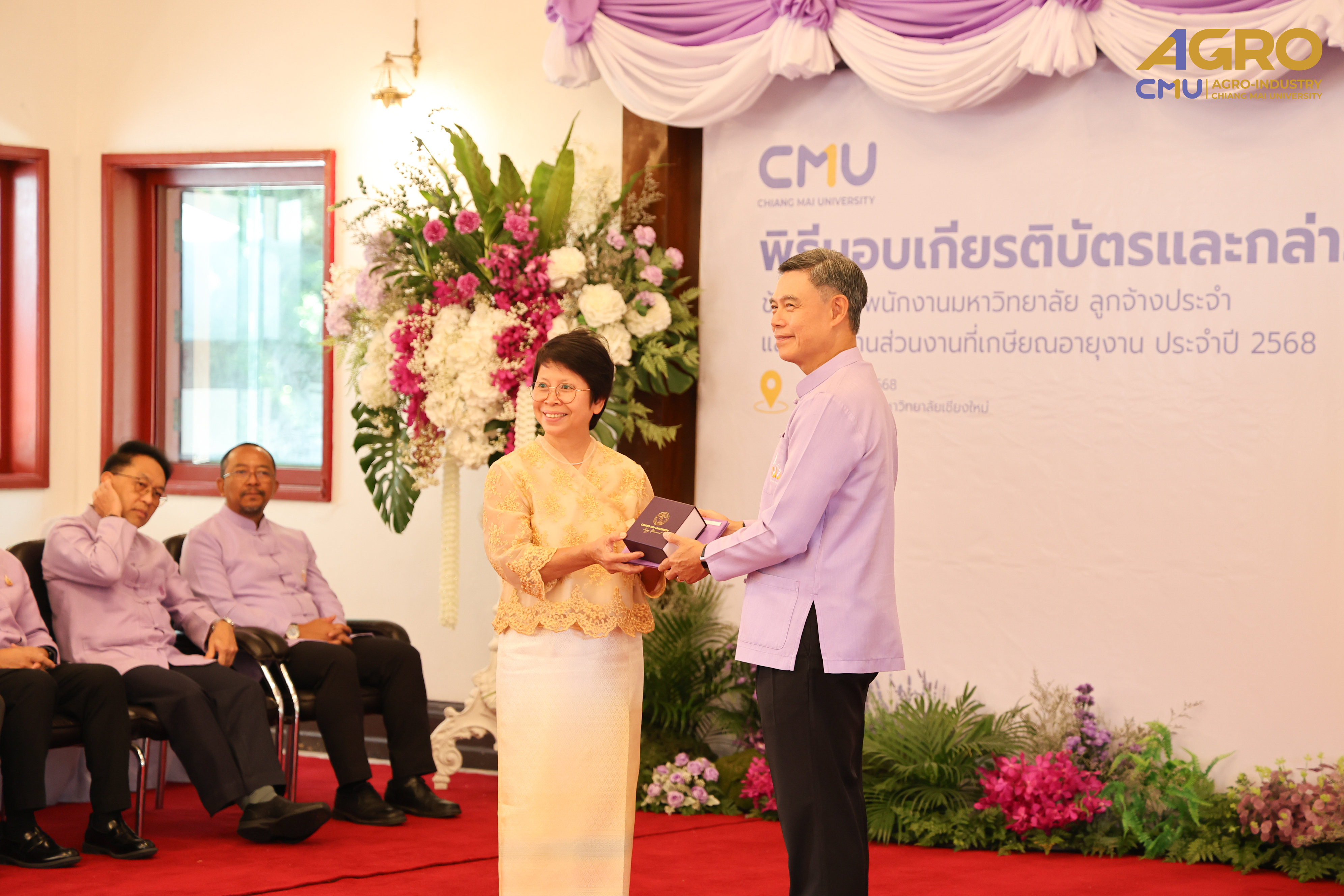 On September 17, 2025, Associate Professor Dr. Sutee Wangtueai, Vice Dean of the Faculty of Agro-Industry, represented the Dean, along with the faculty executives and staff, attended the Farewell and Appreciation Ceremony for retirees of the year 2025. The ceremony was graciously presided over by Professor Dr. Pongruk Sribanditmongkol, President of Chiang Mai University.