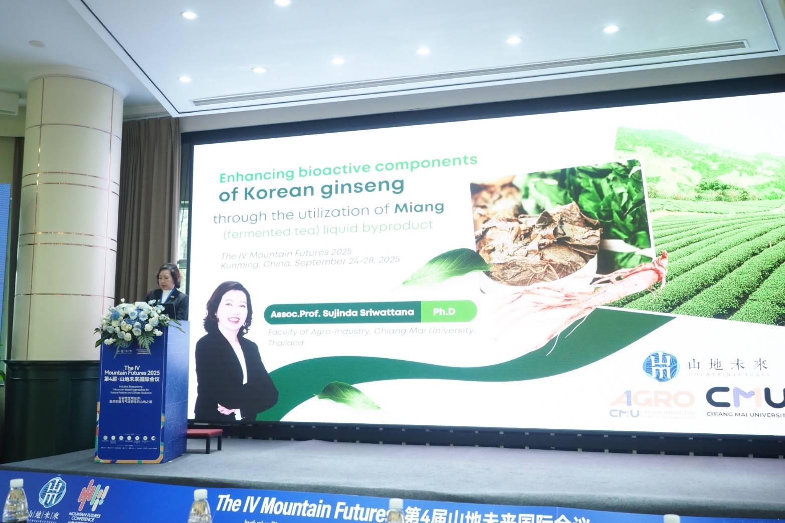 เมื่อวันที่ 24-28 กันยายน 2568 รองศาสตราจารย์ ดร.ยุทธนา พิมลศิริผล คณบดีคณะอุตสาหกรรมเกษตร พร้อมด้วย รองศาสตราจารย์ ดร.สุจินดา ศรีวัฒนะ และ ผู้ช่วยศาสตราจารย์ ดร.ธันยพร ศิริโวหาร คณะอุตสาหกรรมเกษตร มหาวิทยาลัยเชียงใหม่ เข้าร่วมการประชุมวิชาการนานาชาติ Mountain Futures Conference 2025 ซึ่งจัดขึ้น ณ นครคุนหมิง มณฑลยูนนาน สาธารณรัฐประชาชนจีน โดยมีสถาบันวิจัยพืช คุนหมิง (Kunming Institute of Botany, Chinese Academy of Sciences) เป็นเจ้าภาพ