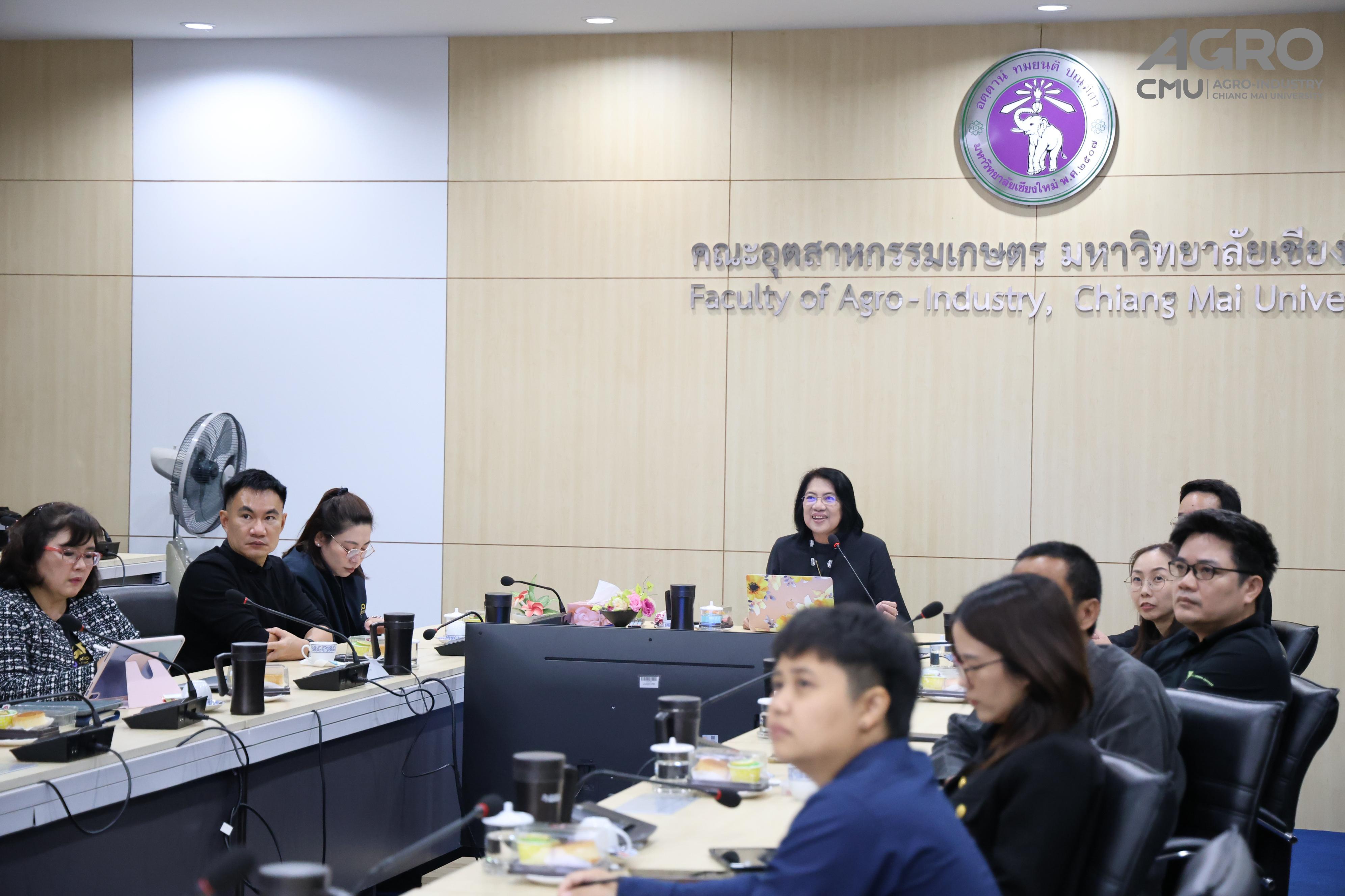 On November 20, 2025, executives and personnel from the Faculty of Architecture, Chiang Mai University, led by Assistant Professor Dr. Pandin Ounchanum, Dean, conducted a study visit on "Organizational Development toward Education Criteria for Performance Excellence (EdPEx)" at the Faculty of Agro-Industry, Chiang Mai University. The delegation was welcomed by Assistant Professor Dr. Srisuwan Naruenartwongsakul, Associate Dean, and participated in a knowledge exchange session with Associate Professor Dr. Thanongsak Chaiyaso, Head of the School of Agro-Industry; Assistant Professor Dr. Churairat Moukamnerd, Assistant Dean; along with the Faculty Secretary and heads of various units. The meeting was held at Conference Room 3, 2nd Floor, Faculty Office.