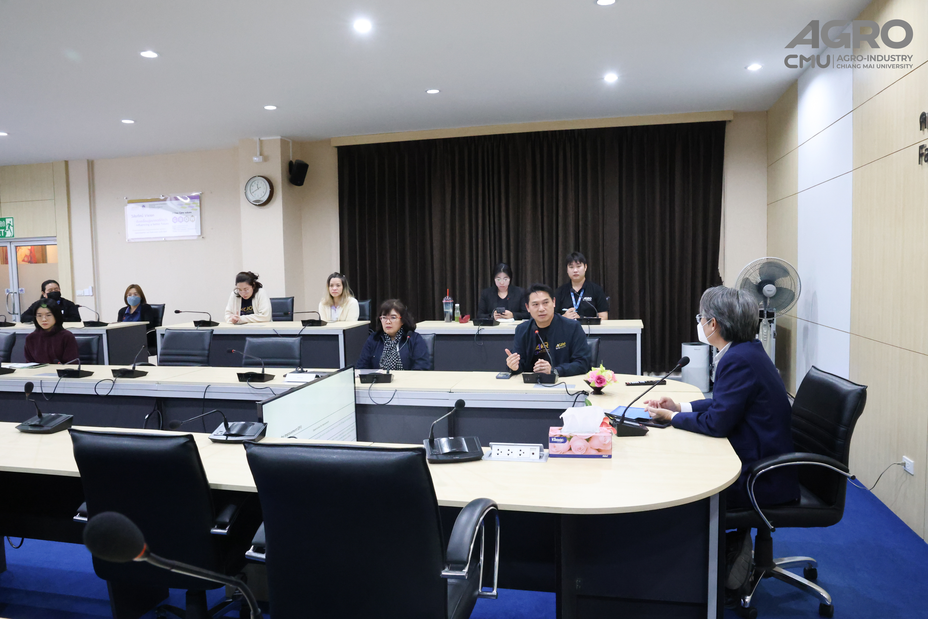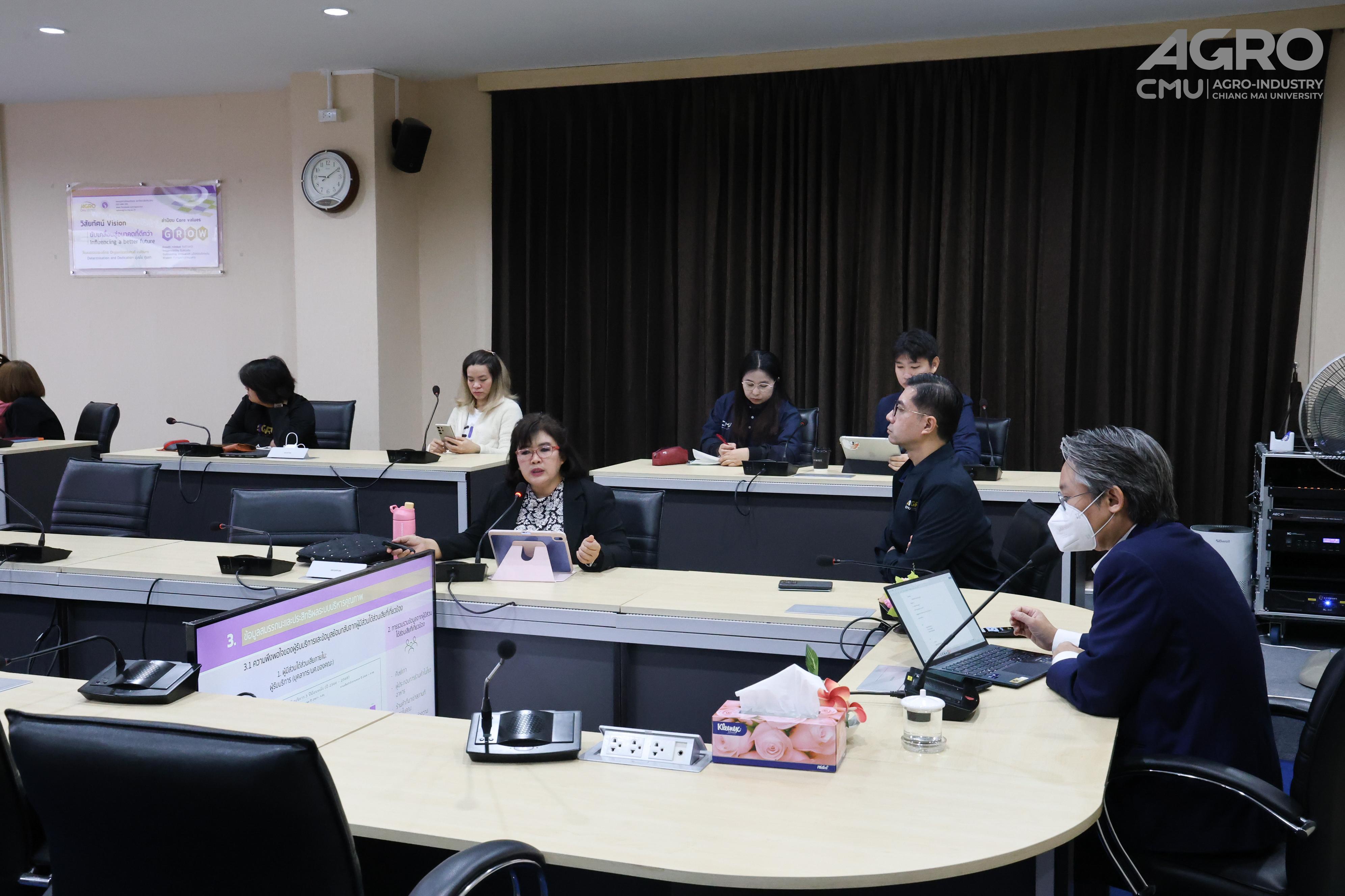 Assoc. Prof. Dr. Yuthana Phimolsiripol, Dean of the Faculty of Agro-Industry, together with administrators, department heads, and faculty office personnel, attended the closing meeting to receive the assessment summary. The session also provided an opportunity for administrators and staff to raise inquiries on various matters that would contribute to further enhancement of organizational quality and operational efficiency.