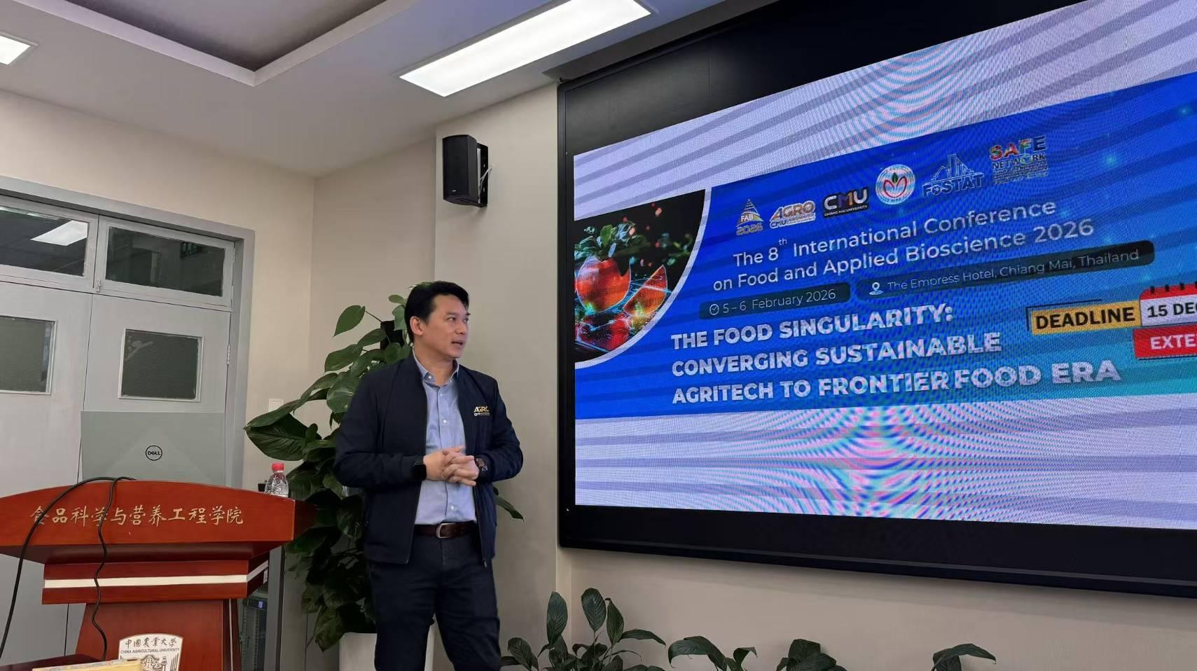 Associate Professor Dr. Yuthana Phimolsiripol, Dean of the Faculty of Agro-Industry, was officially invited by the College of Food Science and Nutritional Engineering, China Agricultural University, Beijing, to participate in academic and research collaboration discussions during his official visit from 8th–10th December 2025.