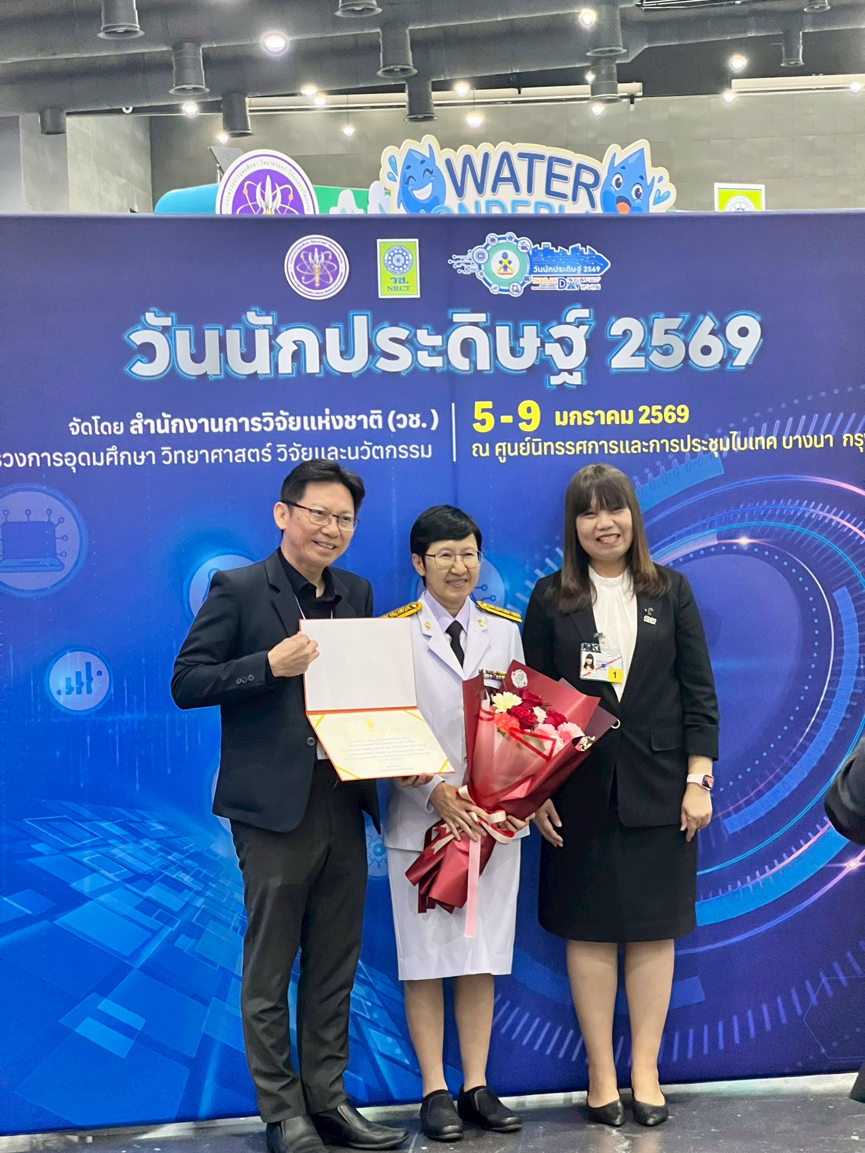 เมื่อวันที่ 8 มกราคม 2569 รองศาสตราจารย์ ดร.วินิตา บุณโยดม รองอธิการบดี มหาวิทยาลัยเชียงใหม่ พร้อมด้วยศาสตราจารย์ ดร.อภินภัส รุจิวัตร์ ผู้อำนวยการสำนักงานบริหารงานวิจัย ร่วมแสดงความยินดีและมอบช่อดอกไม้ให้แก่อาจารย์นักวิจัยที่ได้รับรางวัลการวิจัยแห่งชาติ ได้แก่ นักวิจัยดีเด่นแห่งชาติ รางวัลผลงานวิจัย รางวัลผลงานสิ่งประดิษฐ์คิดค้น รางวัลวิทยานิพนธ์ และรางวัลผลงานคุณภาพ NRCT Quality Achievement Awards ในงาน “วันนักประดิษฐ์ ประจำปี 2569” พร้อมเยี่ยมชมบูธนิทรรศการผลงานวิจัยในสังกัดมหาวิทยาลัยเชียงใหม่ ณ Event Hall 103 ศูนย์นิทรรศการและการประชุมไบเทค บางนา กรุงเทพมหานคร
