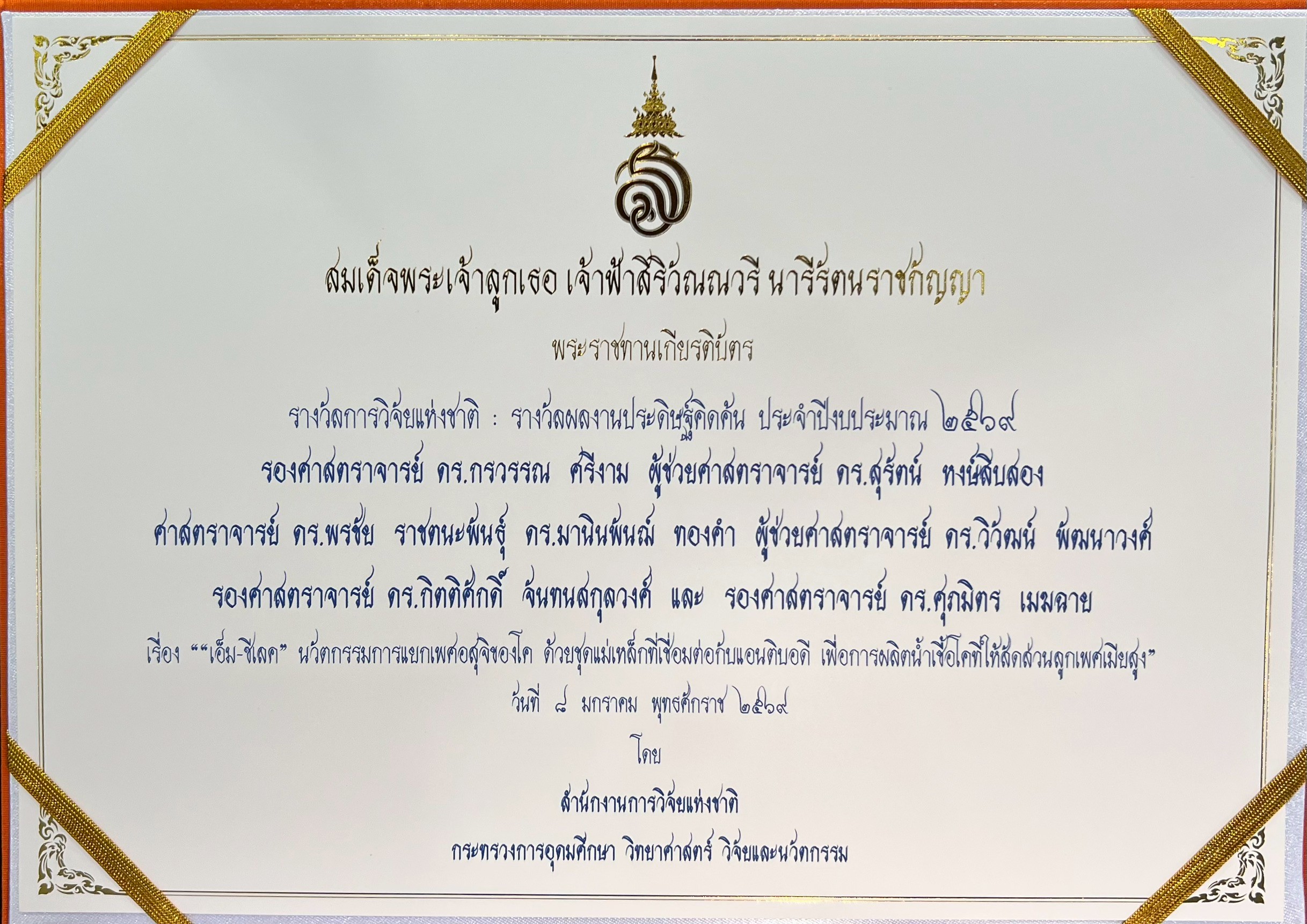 นักวิจัยดีเด่นแห่งชาติ จำนวน 1 ท่าน