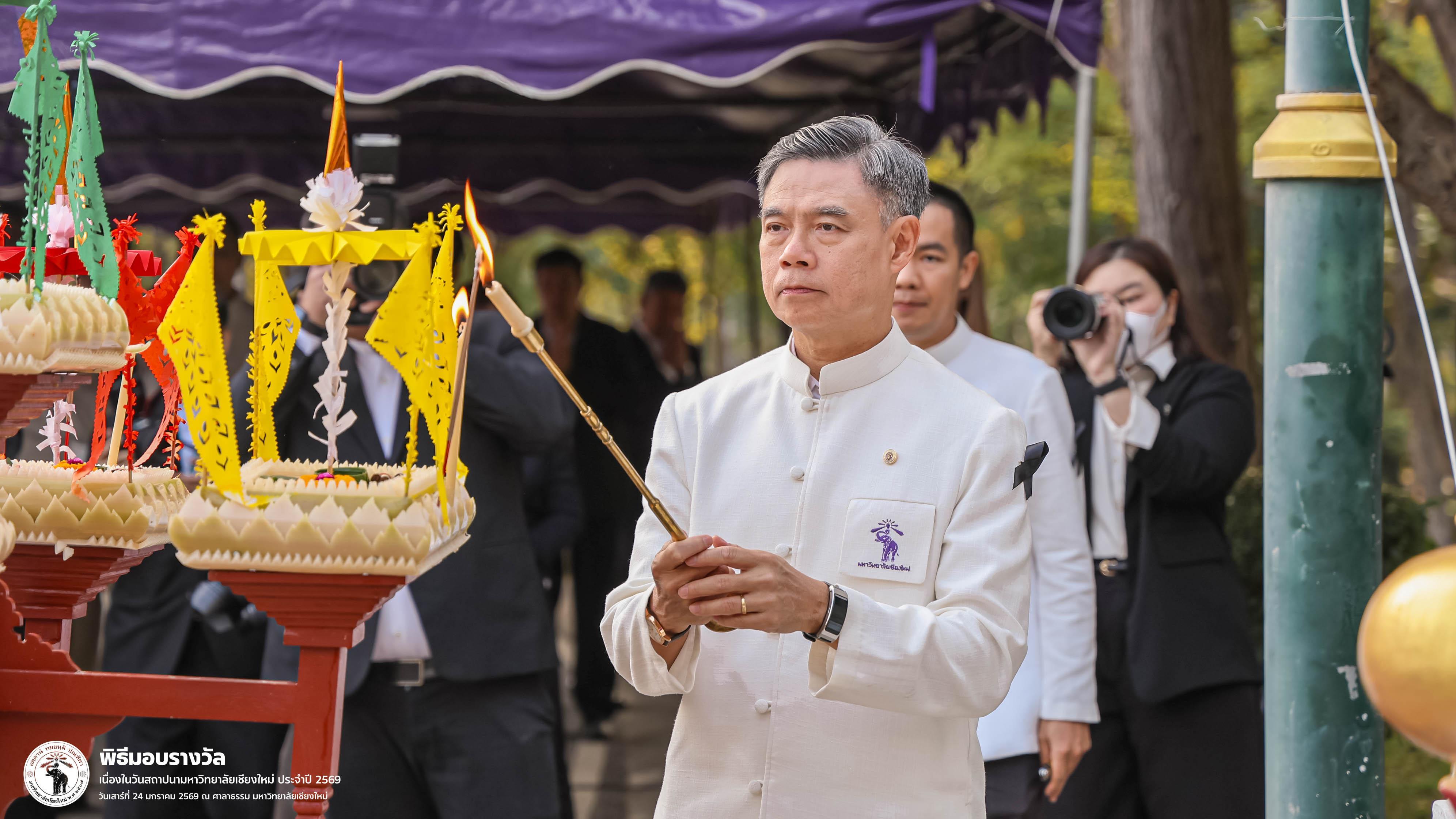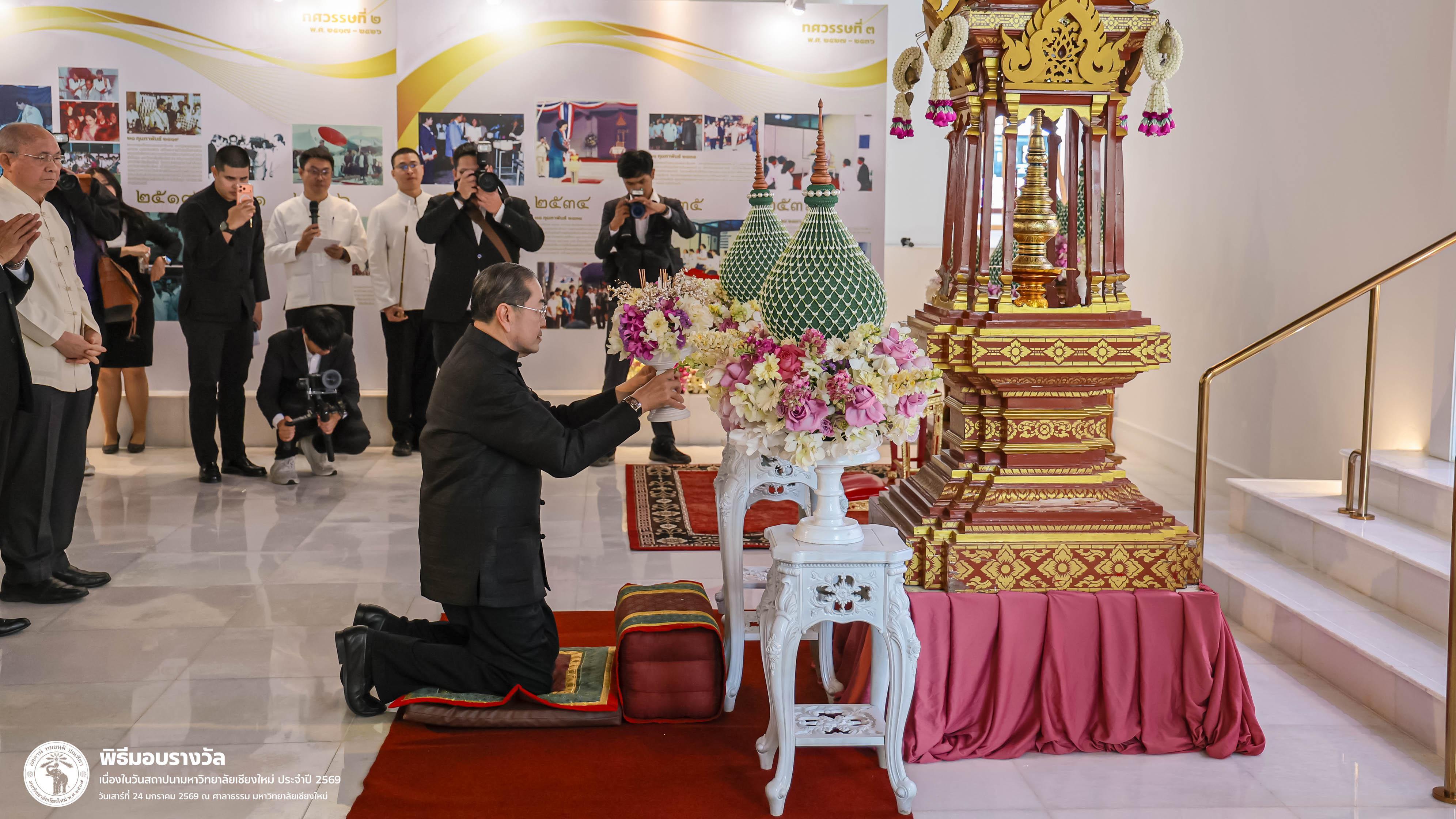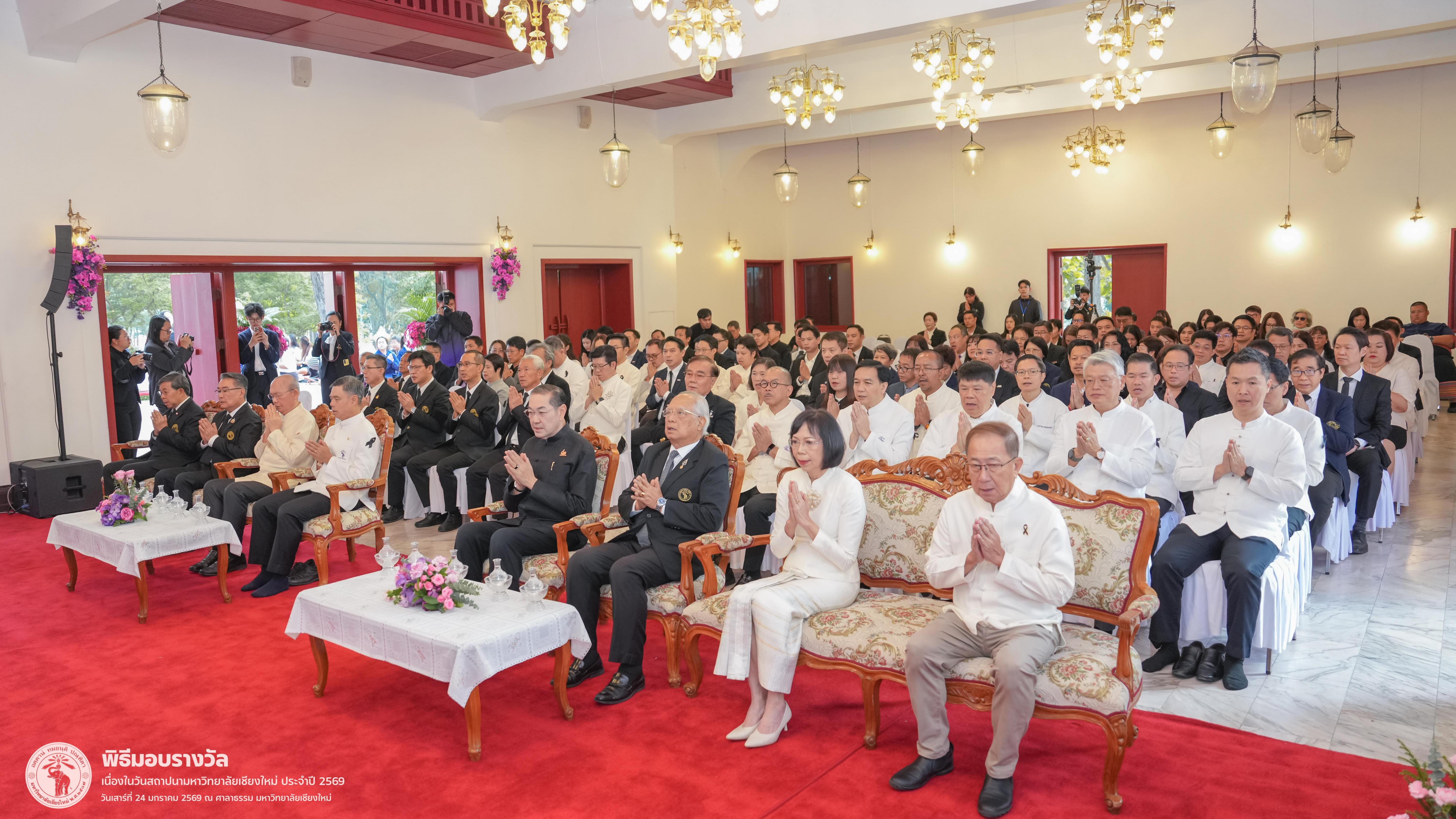 The 61st Anniversary Celebration of Chiang Mai University took place on Saturday, 24 January 2026, from 8:09 a.m. to 12:00 p.m. The ceremony was presided over by Professor Emeritus Dr. Surakiart Sathirathai, President of the Chiang Mai University Council. The program featured a merit-making ceremony to bring prosperity and auspiciousness to the university, a floral wreath offering ceremony to pay tribute to M.L. Pin Malakul, the founder of Chiang Mai University as the first regional university in Thailand, as well as the presentation of Distinguished Administrator Awards, the “Chang Thong Kham” (Golden Elephant) Awards, and honorary plaques to individuals who received Royal Appointments to the rank of Professor.