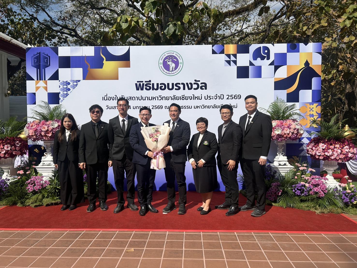 On this occasion, the executive team of the Faculty of Agro-Industry also presented a congratulatory flower bouquet to Professor Dr. Pornchai Rachtanapun, who received the Chiang Mai University “Chang Thong Kham” Award for the year 2025 in the category of Researcher, Science and Technology. The gesture reflected the faculty’s pride in the recipient’s achievement and its commitment to honoring academic excellence within the university community.