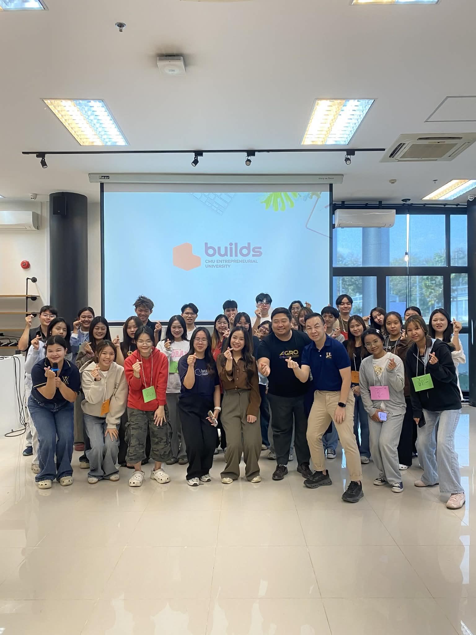 The workshop attracted strong interest from 35 students of the Faculty of Agro-Industry Startup Club. During the event, participants engaged in team-building activities and explored the fundamentals of business initiation with guidance from the Builds CMU team. The program also included hands-on practice in developing a Business Model Canvas (BMC), enabling students to learn how to design business models, analyze market opportunities, and better understand consumer needs.