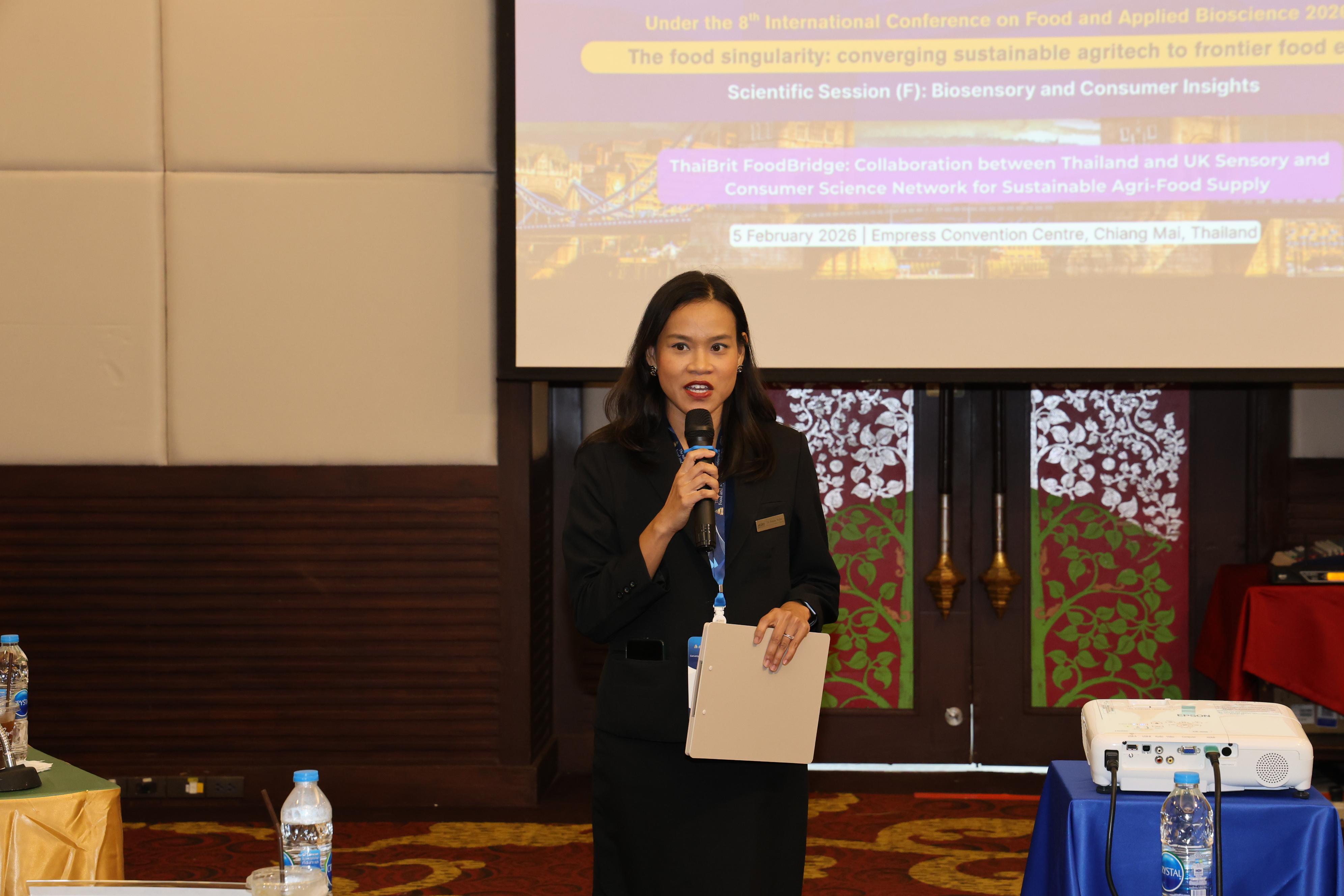 On 5 February 2026, the Faculty of Agro-Industry, Chiang Mai University, organized the International Symposium on Sustainable Practices and Sensory Science as part of the ThaiBrit FoodBridge Project, a collaborative initiative between Thailand and the United Kingdom aimed at strengthening research networks in sensory and consumer science for sustainable agri-food supply systems. The symposium was held under the International Conference on Food and Applied Bioscience (FAB 2026) at Chiang Mai 1 Meeting Room, Empress International Convention Centre, Chiang Mai Province.