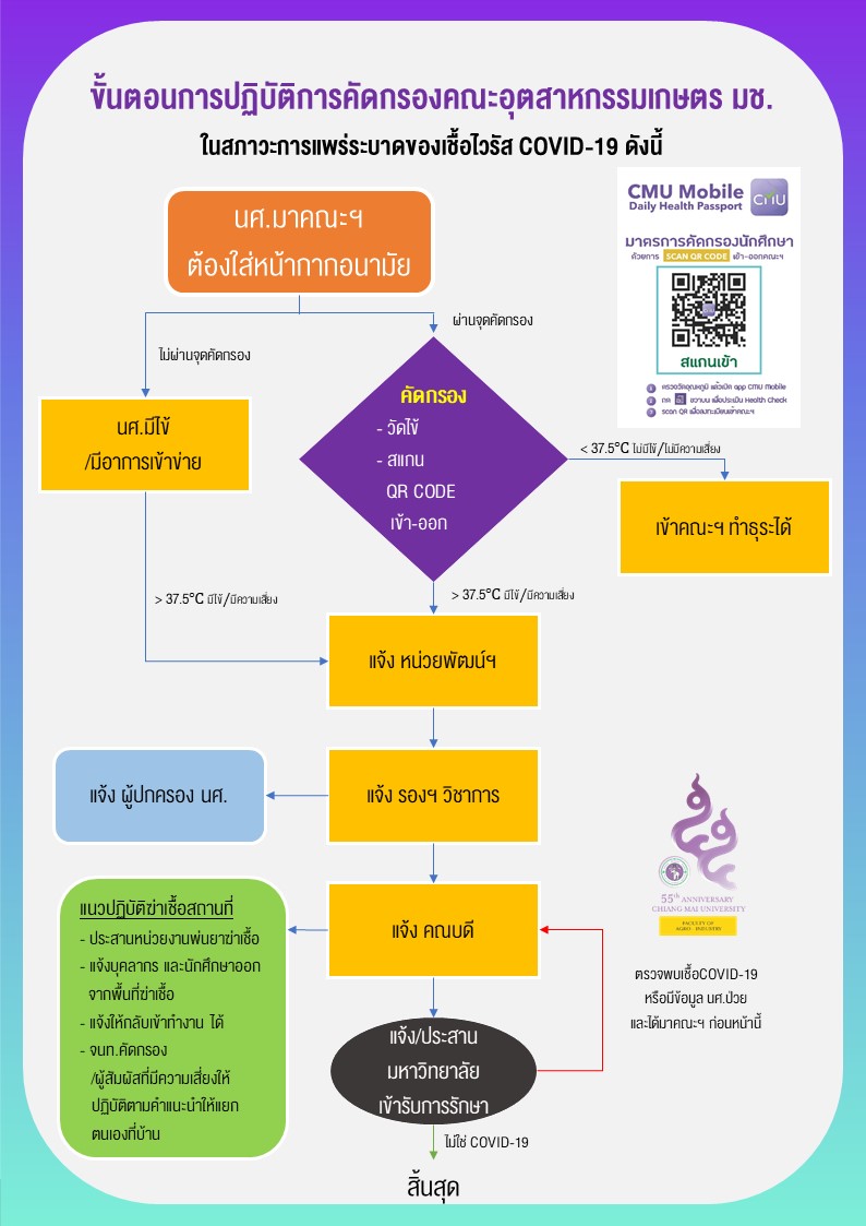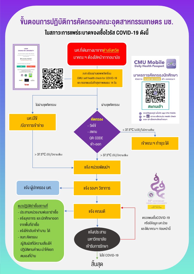 ขั้นตอนการปฏิบัติการคัดกรองคณะอุตสาหกรรมเกษตร มช. ในสภาวะการแพร่ระบาดของเชื้อไวรัส COVID-19 |