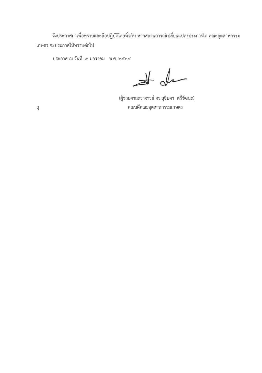 ประกาศคณะอุตสาหกรรมเกษตร มหาวิทยาลัยเชียงใหม่ เรื่อง แนวทางการปฏิบัติงานของบุคลากรคณะอุตสาหกรรมเกษตร ในลักษณะการทำงานที่บ้าน (Work from Home) ในสถานการณ์การระบาดของโรคติดเชื้อไวรัสโคโรนา 2019 (COVID-19) และการป้องกันสุขภาพจากหมอกควัน PM 2.5 |