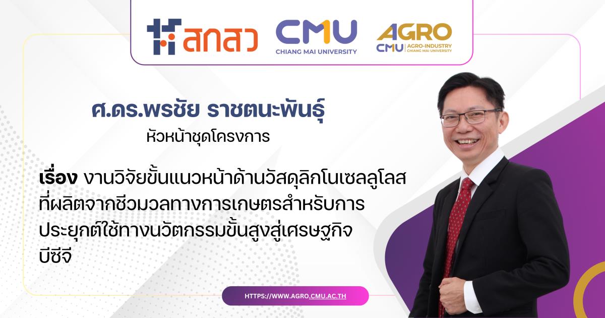 เรื่อง งานวิจัยขั้นแนวหน้าด้านวัสดุลิกโนเซลลูโลสจากชีวมวลทางการเกษตรสำหรับการประยุกต์ใช้นวัตกรรมขั้นสูงสู่เศรษฐกิจบีซีจี