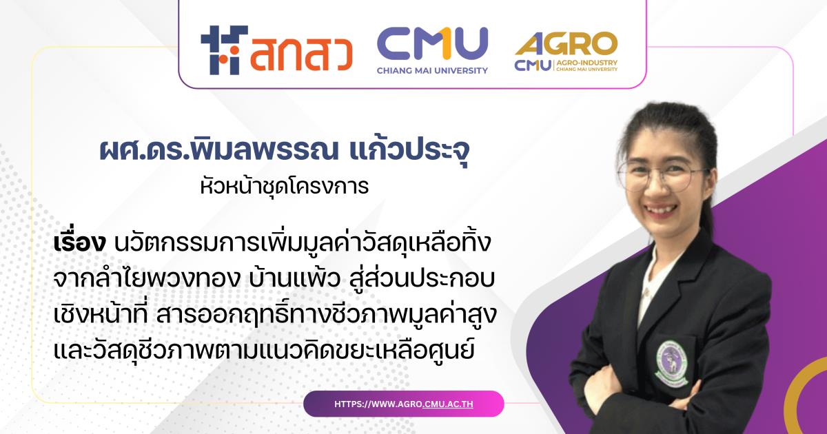 เรื่อง นวัตกรรมการเพิ่มมูลค่าวัสดุเหลือทิ้งจากลำไยพวงทอง บ้านแพ้ว สู่ส่วนประกอบเชิงหน้าที่ สารออกฤทธิ์ทางชีวภาพมูลค่าสูง และวัสดุชีวภาพตามแนวคิดขยะเหลือศูนย์