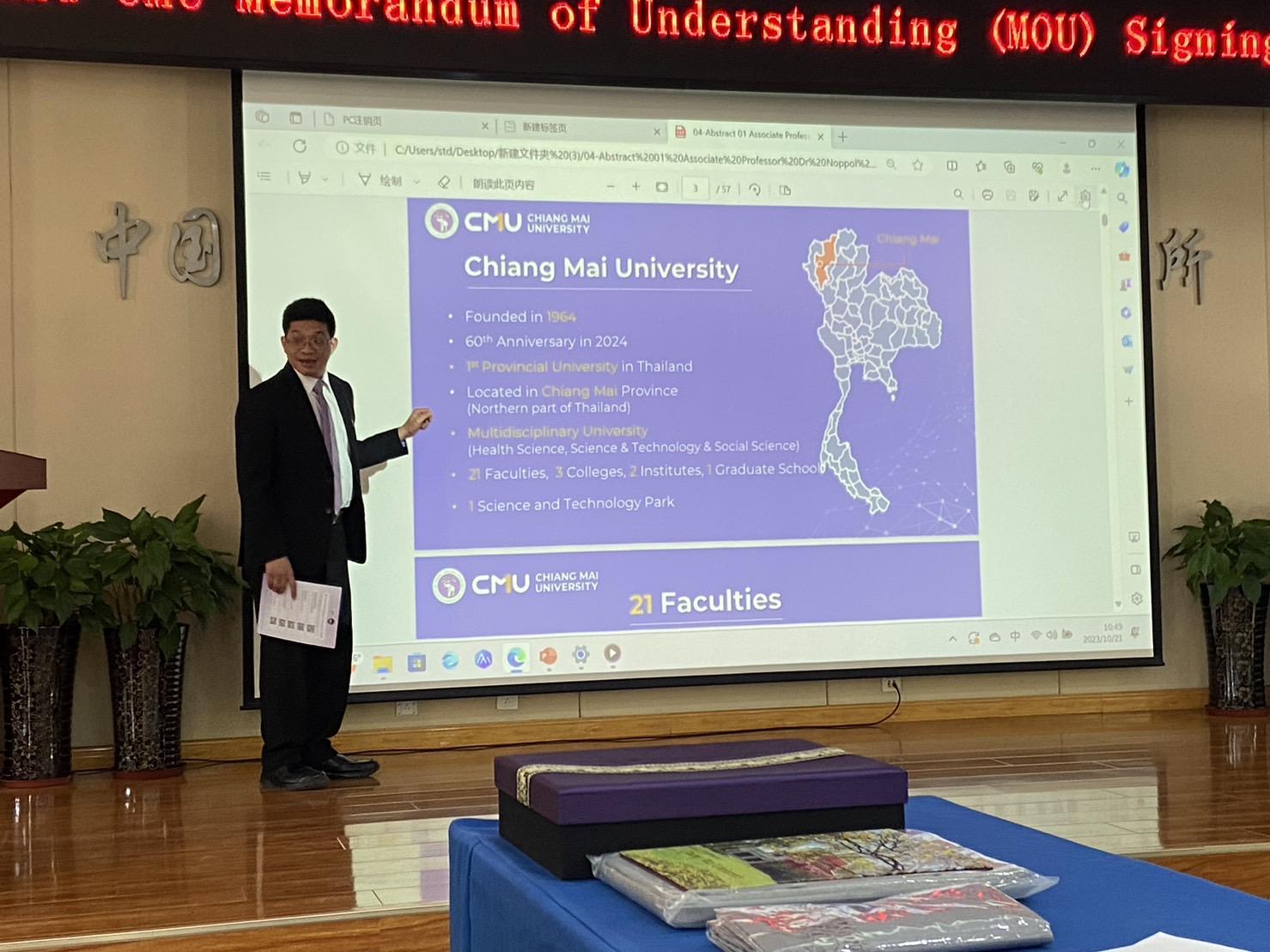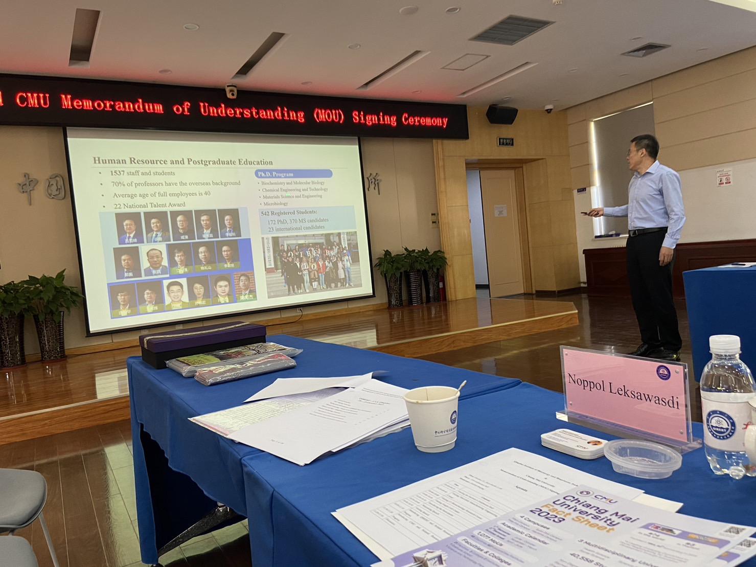 วันที่ 21 ตุลาคม 2566 ผู้ช่วยศาสตราจารย์ ดร.สุจินดา ศรีวัฒนะ คณบดีคณะอุตสาหกรรมเกษตร พร้อมด้วยคณะ นำทีมโดยท่านรองอธิการบดีมหาวิทยาลัยเชียงใหม่ ศาสตราจารย์ปฏิบัติ ดร. ชรินทร์ เตชะพันธุ์ ได้เข้าร่วมพิธีลงนามต่ออายุบันทึกข้อตกลงความร่วมมือทางวิชาการ (MoU Renewal Signing Ceremony) ระหว่าง Qingdao Institute of Bioenergy and Bioprocess Technology, Chinese Academy of Sciences (QIBEBT CAS) กับ Chiang Mai University ณ QIBEBT, Qingdao, China