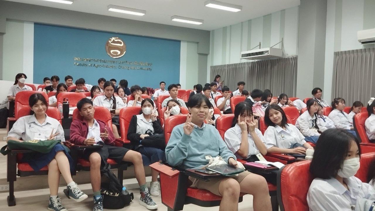 เมื่อวันที่ 18 ตุลาคม 2566 คณะอุตสาหกรรมเกษตร ให้การต้อนรับ น้อง ๆ นักเรียนชั้นมัธยมศึกษาตอนปลายจากโรงเรียนทั่วประเทศ จำนวน 180 คน และคณะครูผู้ดูแล จาก ค่ายกวดวิชากับสถาบันกวดวิชา Strong Academy โดยมีผู้ช่วยศาสตราจารย์ ดร.สุทัศน์ สุระวัง รองคณบดีฝ่ายวิชาการ ให้การต้อนรับและให้ข้อมูลหลักสูตร 7 สาขาวิชา เพื่อเสริมประสบการณ์การเรียนรู้ และสร้างแรงบันดาลใจในการเลือกศึกษาต่อในระดับอุดมศึกษา โดยทางคณะอุตสาหกรรมเกษตร ได้เตรียมกิจกรรมให้น้อง ๆ ได้เยี่ยมชม และทำกิจกรรมกับศูนย์ทดสอบทางประสาทสัมผัส โรงงานต้นแบบ พื่อให้น้องๆ ได้สัมผัสกับห้องปฏิบัติการและเครื่องมือที่สำคัญทางอุตสาหกรรมเกษตร และยังได้พาน้อง ๆ ไปเยียมชมสถานที่สำคัญ ศูนย์วิจัยต่าง ๆ ในไร่แม่เหียะอีกด้วย