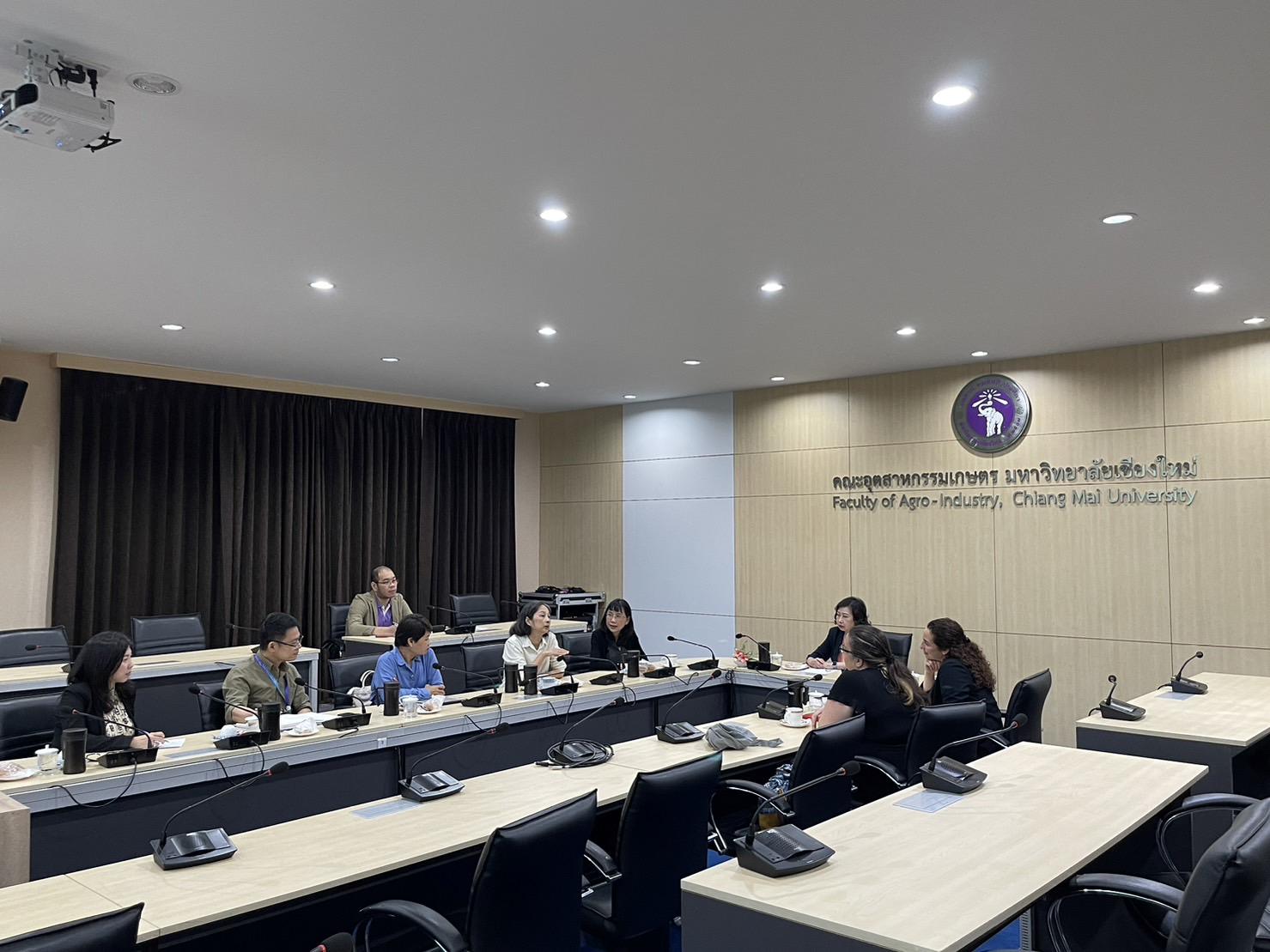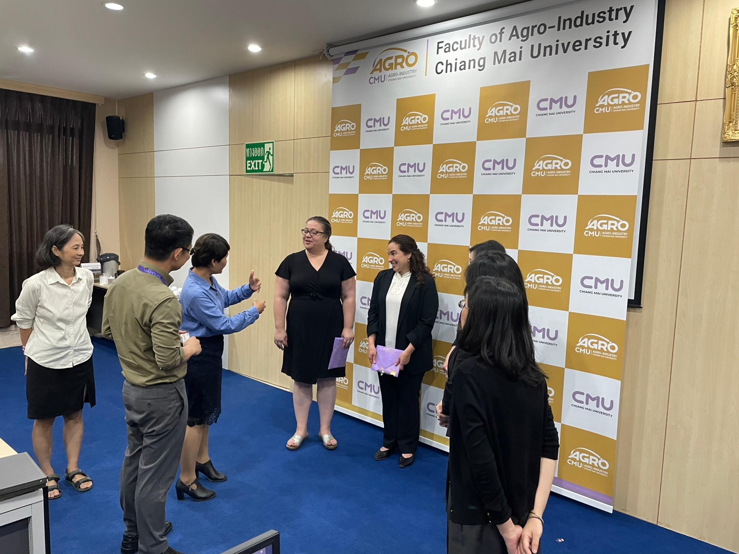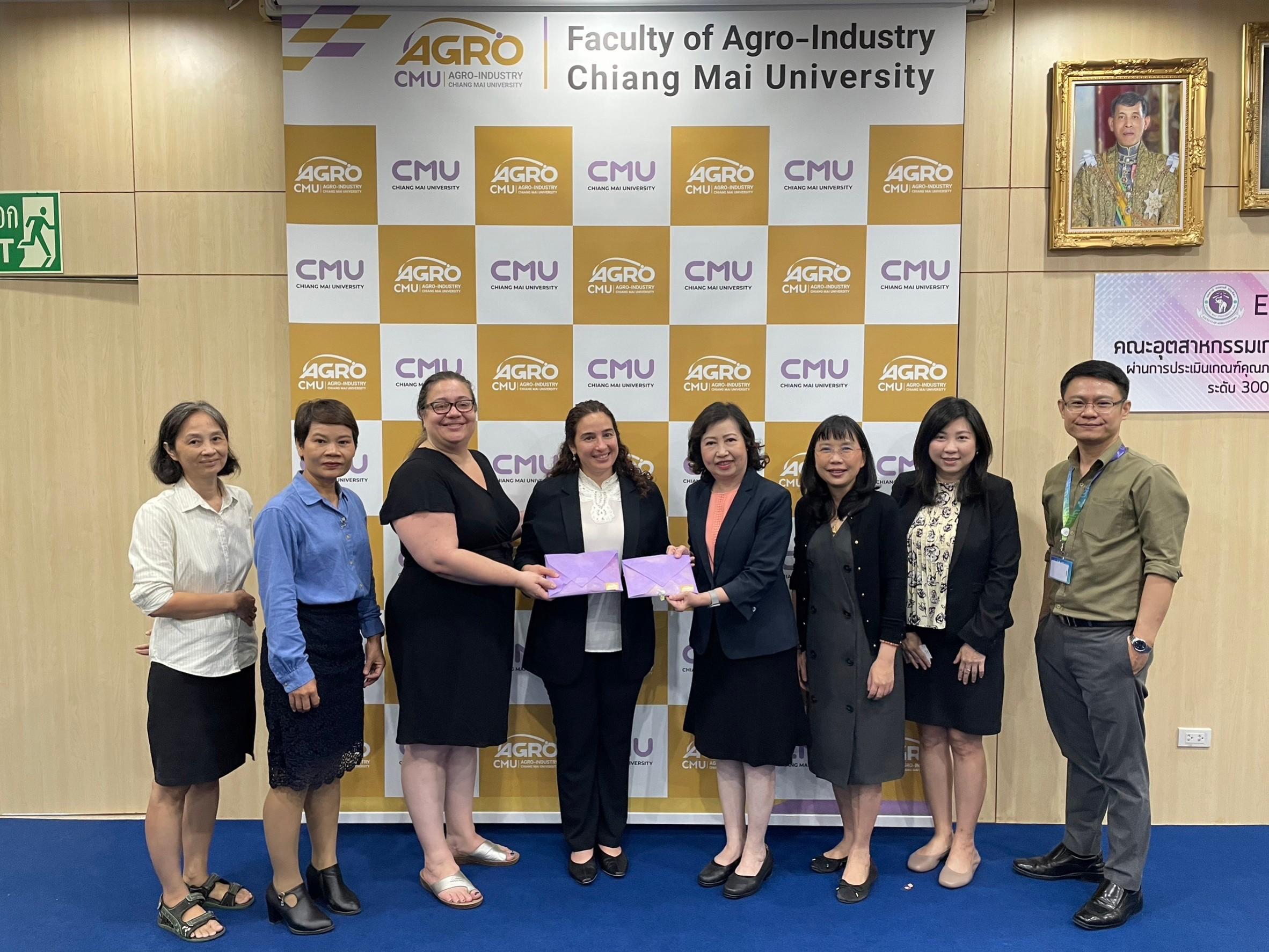 On November 7th, 2023, Assistant Professor Sujinda Sriwattana Ph.D., Dean of Faculty of Agro-Industry with Associate Professor Pichaya Poonlarp, Associate Dean and Assistant Professor Sorraya Khiewnavawongsa, Assistant dean, also Professors from Division of Food Science and Technology welcomed Dr. Sarah Cardey and Ms. Lamma Zghoul from University of Reading, United Kingdom. This occasion is for discussing research collaboration, student mobility and possibility of establishing a Double Degree Program for Master Degree Student at Meeting Room 3, Faculty of Agro-Industry.