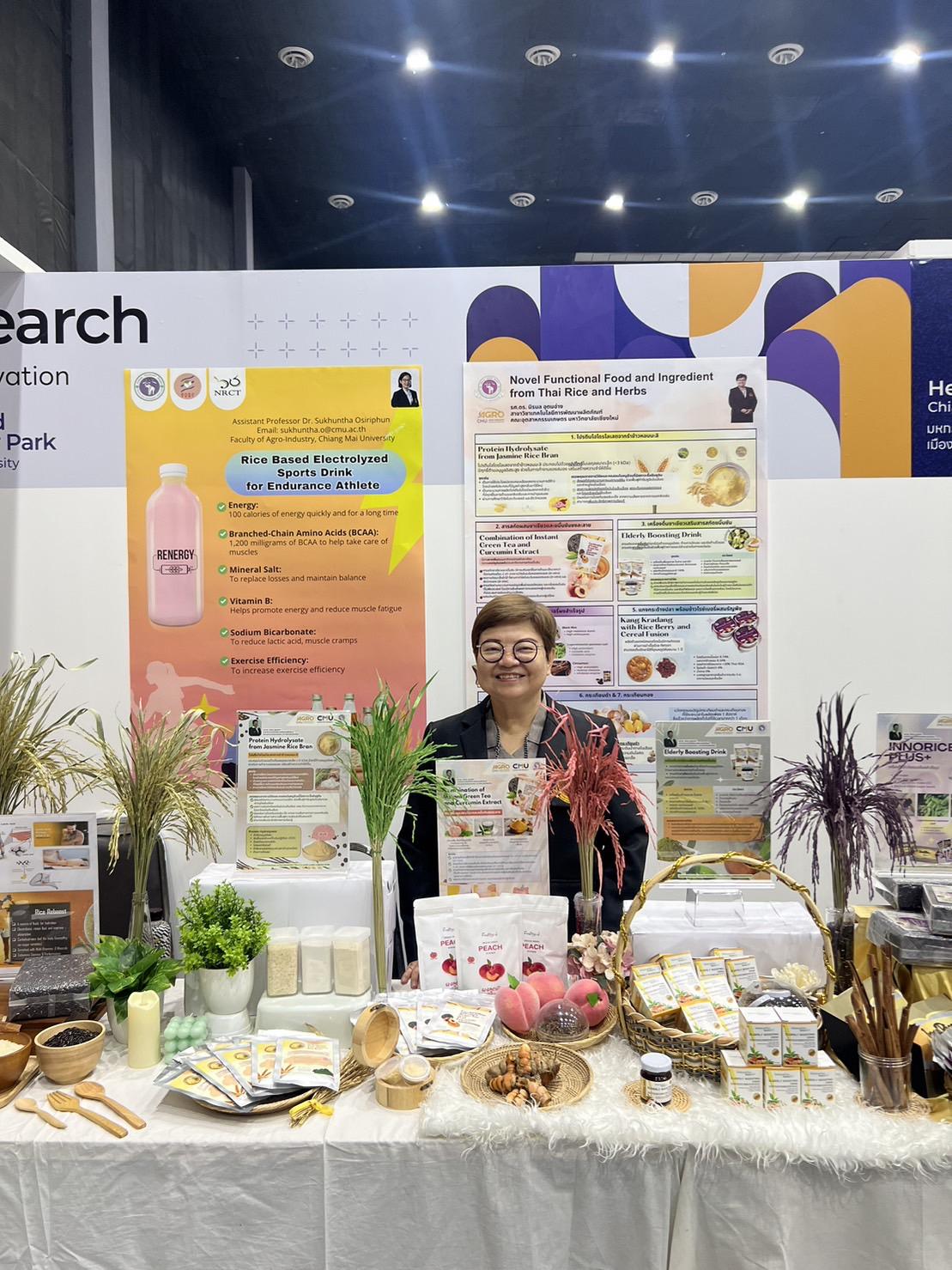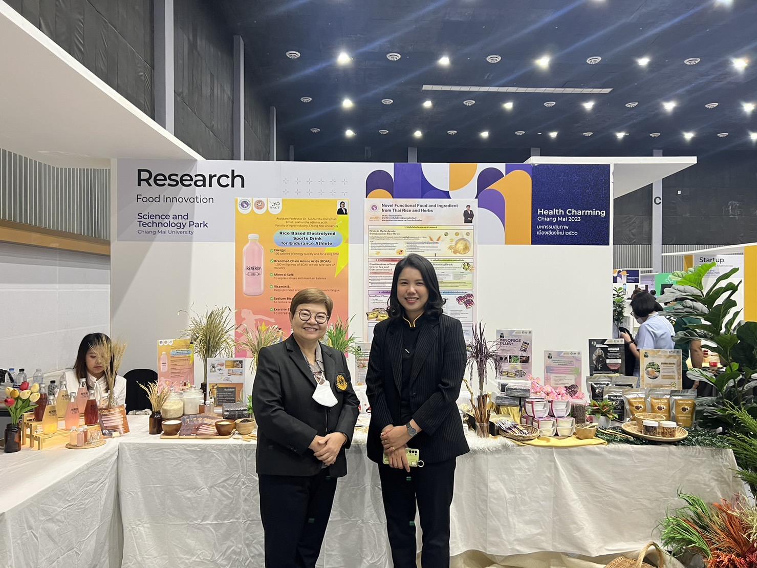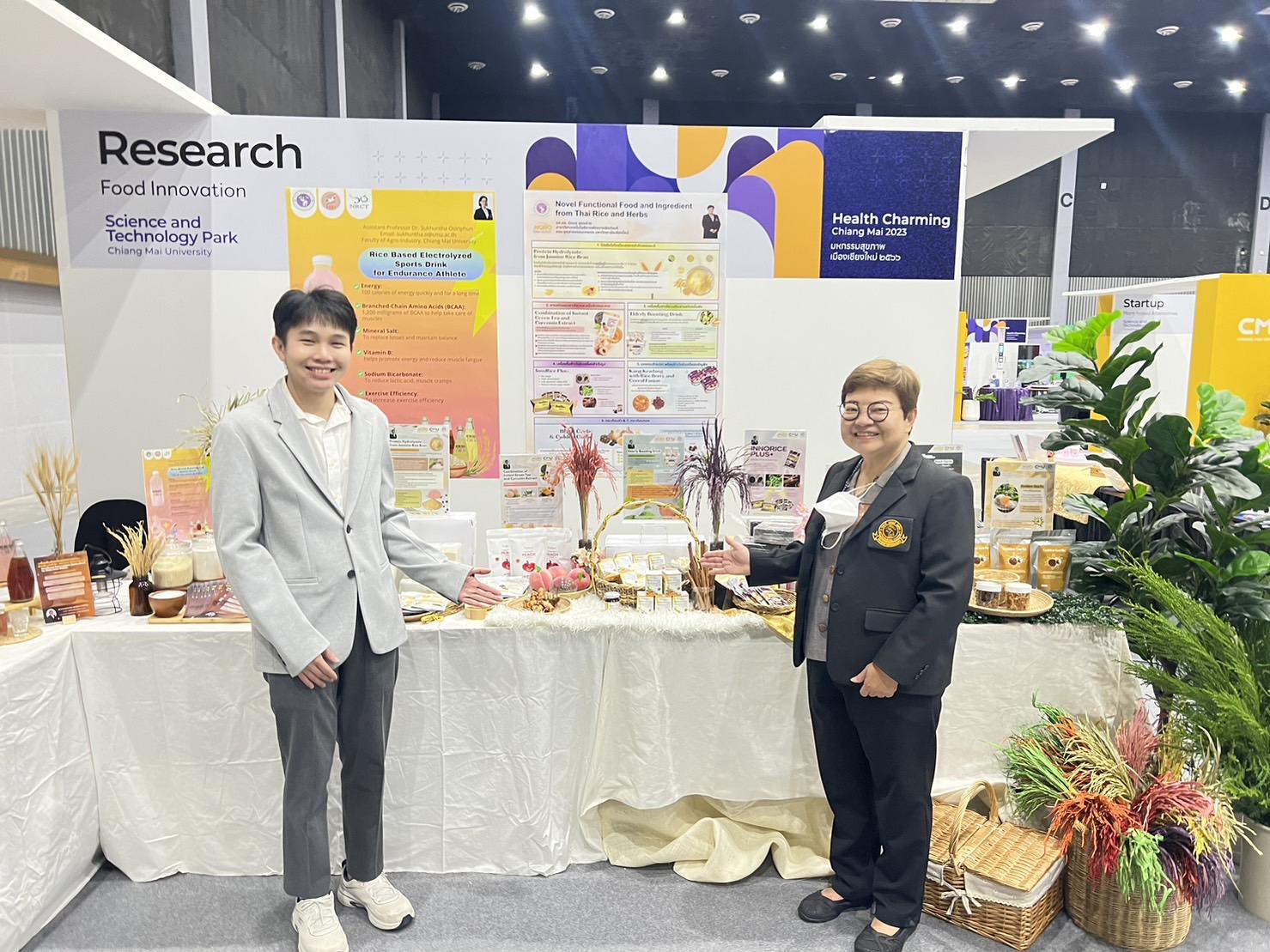 ระหว่างวันที่ 24 – 25 พฤศจิกายน 2566 รศ.ดร.นิรมล อุตมอ่าง และ ผศ.ดร.สุคันธา โอศิริพันธุ์ อาจารย์ประจำคณะอุตสาหกรรมเกษตร มหาวิทยาลัยเชียงใหม่ ร่วมออกบูทและแสดงผลงานวิจัยเกี่ยวกับนวัตกรรมอาหารเพื่อสุขภาพ จำนวน 8 ผลงานวิจัย เพื่อการมีสุขภาพที่ดีเป็นรากฐานของการมีคุณภาพชีวิต ซึ่งส่งผลให้อายุยืนยาว ในงาน Health Charming Chiang Mai 2023 มหกรรมสุขภาพเมืองเชียงใหม่ 2566 ณ ศูนย์ประชุมและแสดงสินค้านานาชาติฯ จ.เชียงใหม่