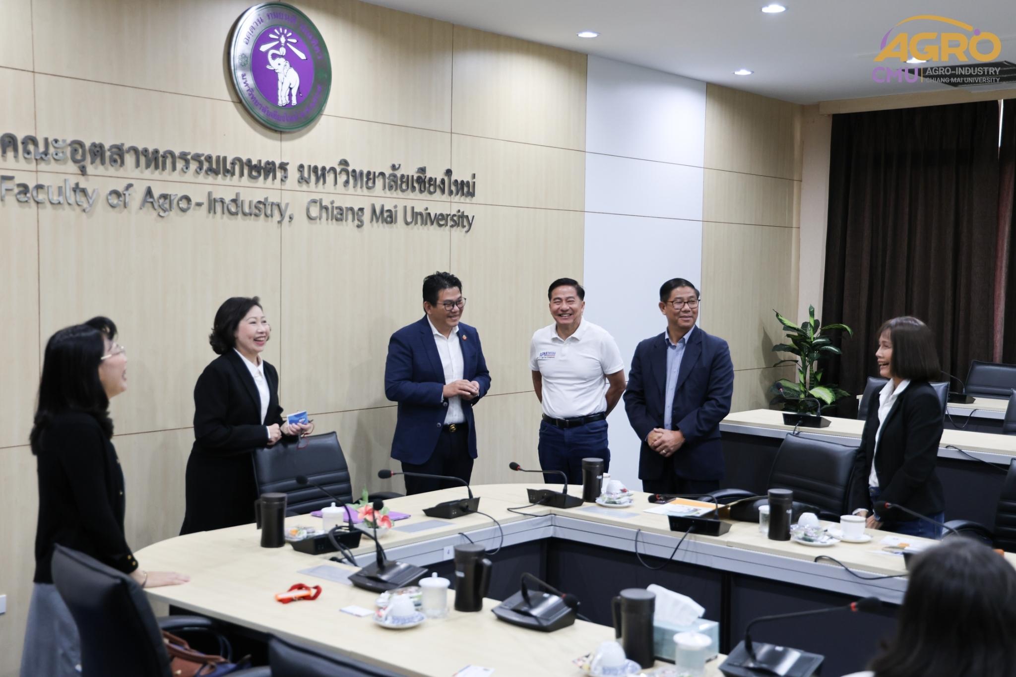 ในวันที่ 21 ธันวาคม 2566 ผู้ช่วยศาสตราจารย์ ดร.สุจินดา ศรีวัฒนะ คณบดี คณะอุตสาหกรรมเกษตร รองศาสตราจารย์ ดร.พิชญา พูลลาภ รองคณบดี และ ผู้ช่วยศาสตราจารย์ ดร.สรญา เขียวนาวาวงศ์ษา ให้การต้อนรับ อาคันตุกะจาก Khmer Fresh Milk Co.,Ltd. นำโดย ดร.สมภพ ศักดิ์พันธ์พนม กรรมการอำนวยการคณะอุตสาหกรรมเกษตร และทีมงานจากบริษัท Asset Pro Management Co.,Ltd. ในโอกาสมาเยี่ยมคณะอุตสาหกรรมเกษตร เพื่อหารือความเป็นไปได้ในการสร้างความร่วมมือในอนาคต พร้อมเข้าร่วมเยี่ยมชมโรงงานต้นแบบคณะอุตสาหกรรมเกษตร และได้เดินทางเข้าเยี่ยมชมโรงงานการผลิต บริษัท ChiangMai Freshmilk จำจัด ตำบลท่าวังตาล อำเภอสารภี จังหวัดเชียงใหม่
