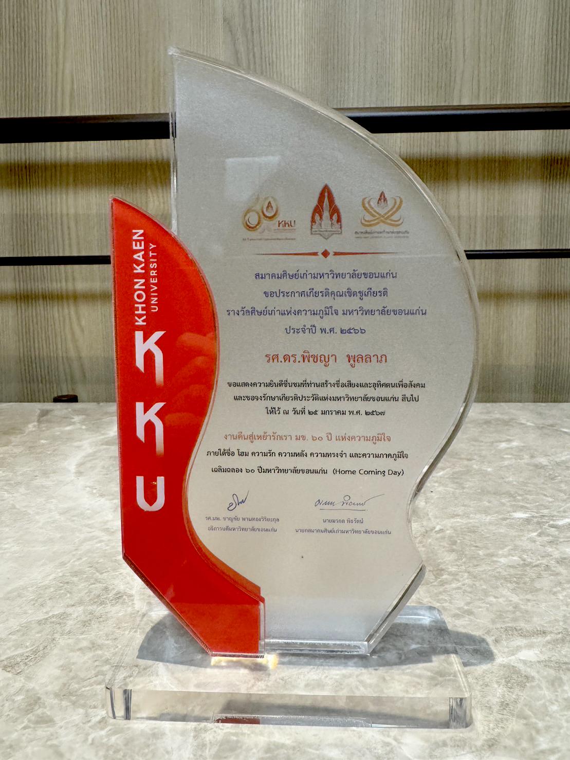รองศาสตราจารย์ ดร.พิชญา พูลลาภ เข้ารับรางวัลศิษย์เก่าแห่งความภูมิใจ มหาวิทยาลัยขอนแก่น ประจำปี พ.ศ. ๒๕๖๕ และปี พ.ศ. ๒๕๖๖
