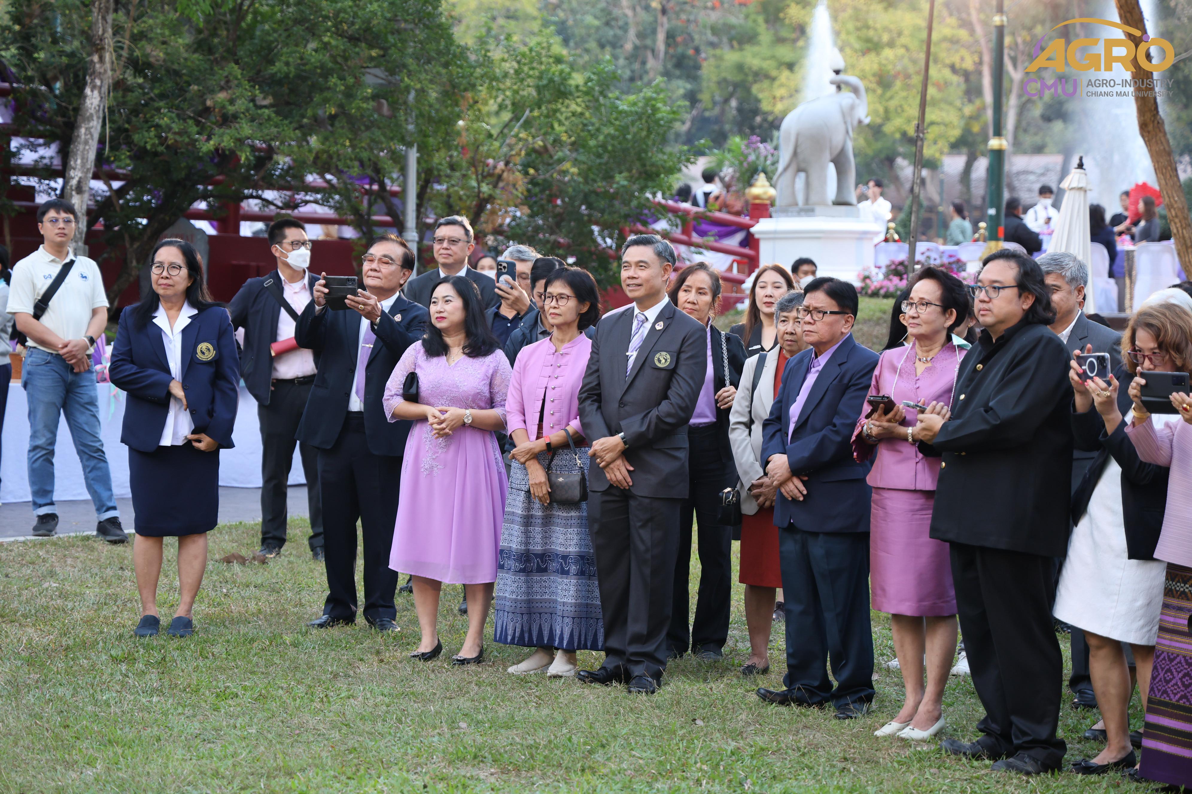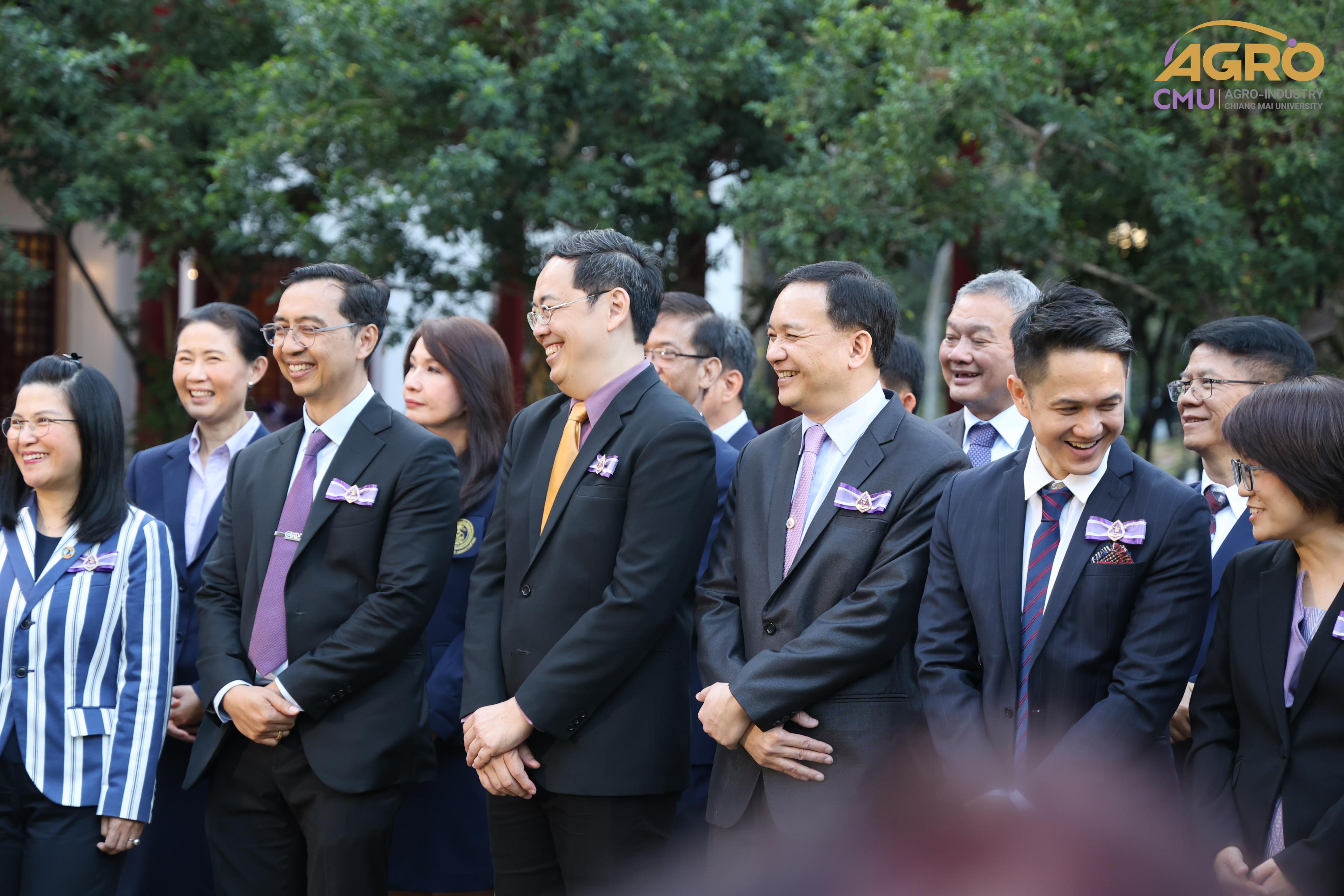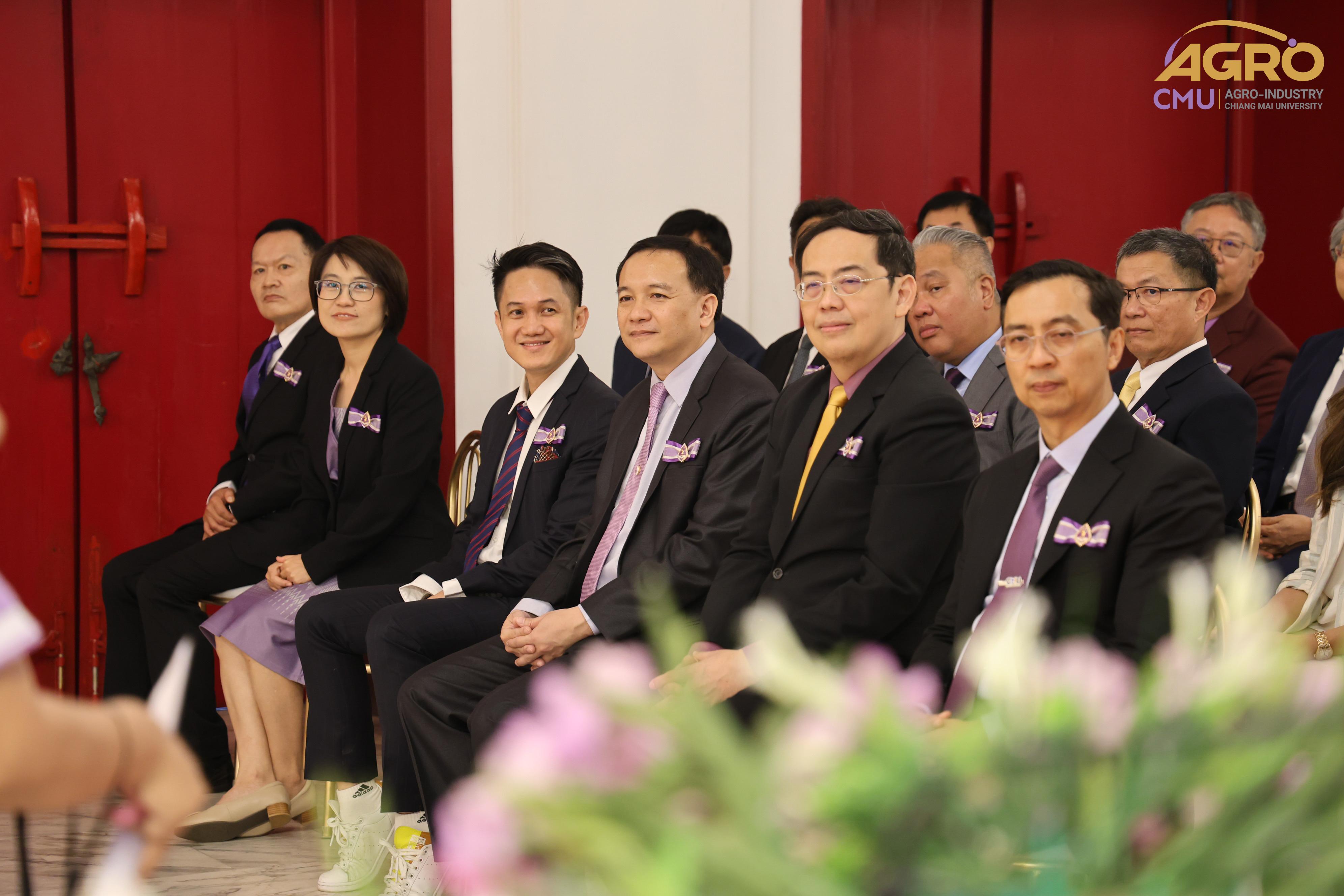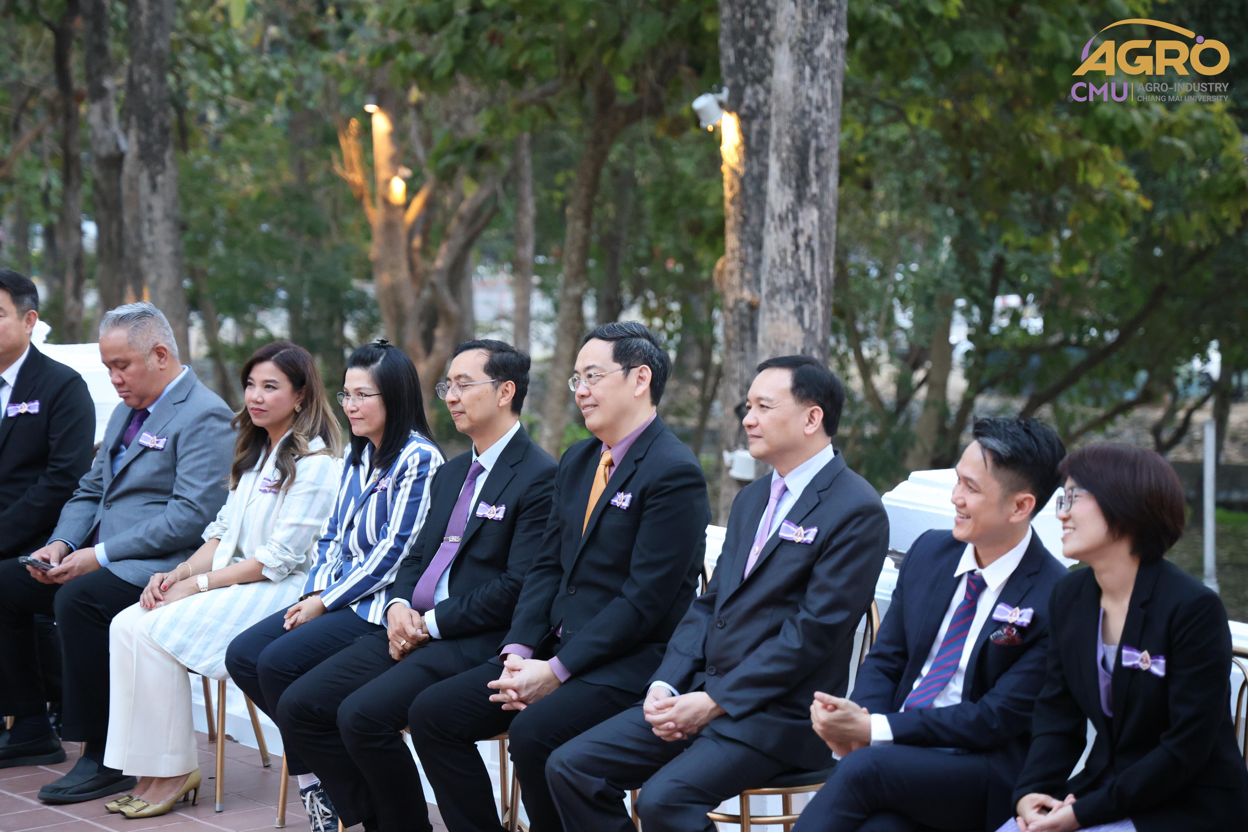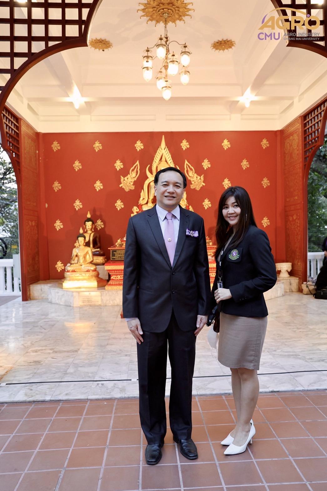 เมื่อวันอาทิตย์ที่ 28 มกราคม 2567 ผู้ช่วยศาสตราจารย์ ดร.สุจินดา ศรีวัฒนะ คณบดีคณะอุตสาหกรรมเกษตร พร้อมด้วยผู้บริหารและบุคลากรคณะอุตสาหกรรมเกษตร ร่วมมอบช่อดอกไม้ เพื่อแสดงความยินดีกับ ศาสตราจารย์ปฏิบัติ ดร.ชรินทร์ เตชะพันธุ์ รองอธิการบดีมหาวิทยาลัยเชียงใหม่ ในโอกาสที่ได้รับการประกาศเกียรติคุณให้เป็น นักศึกษาเก่ามหาวิทยาลัยเชียงใหม่ดีเด่น ประจำปี 2566 สาขาวิชาการ ณ ศาลาธรรม มหาวิทยาลัยเชียงใหม่