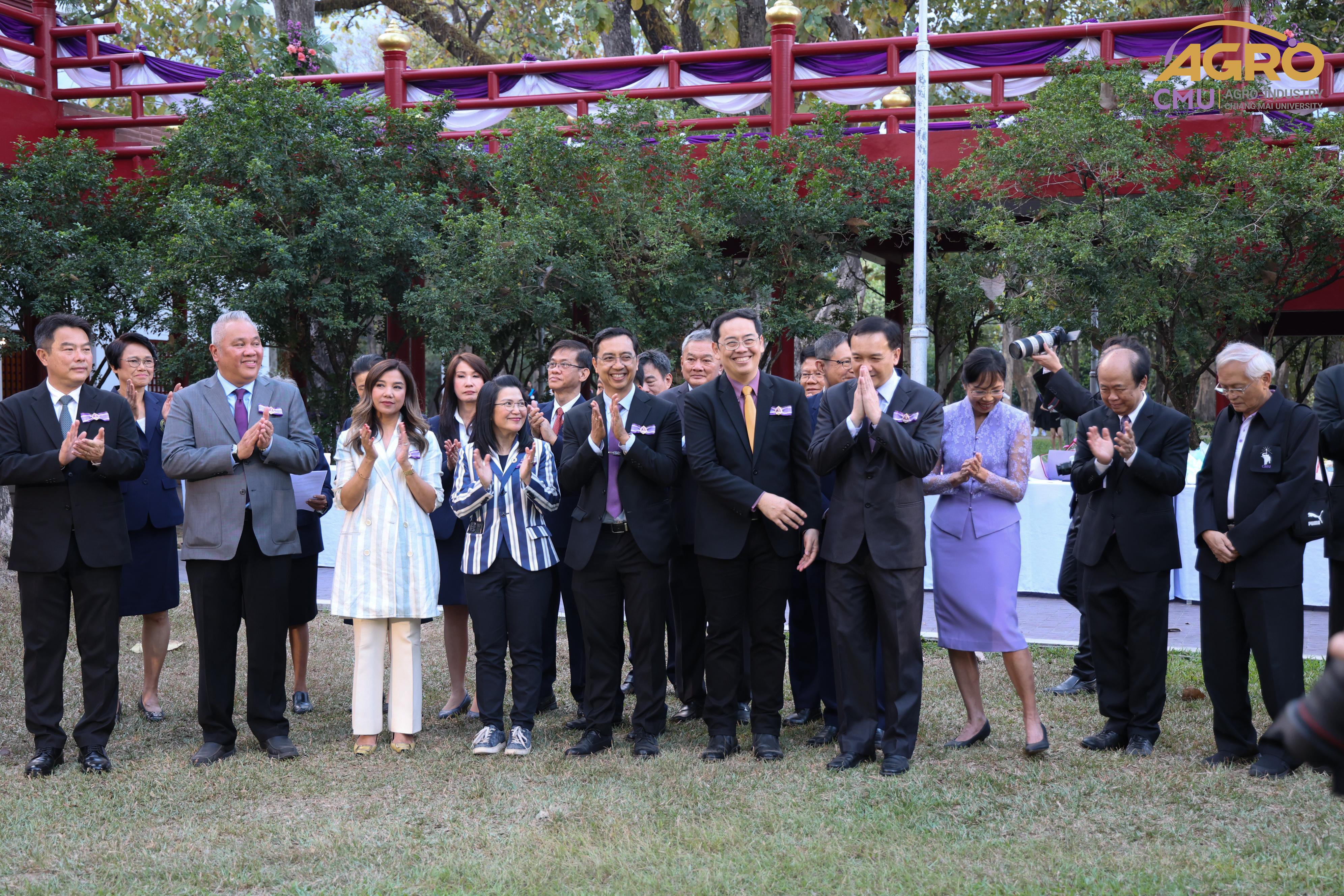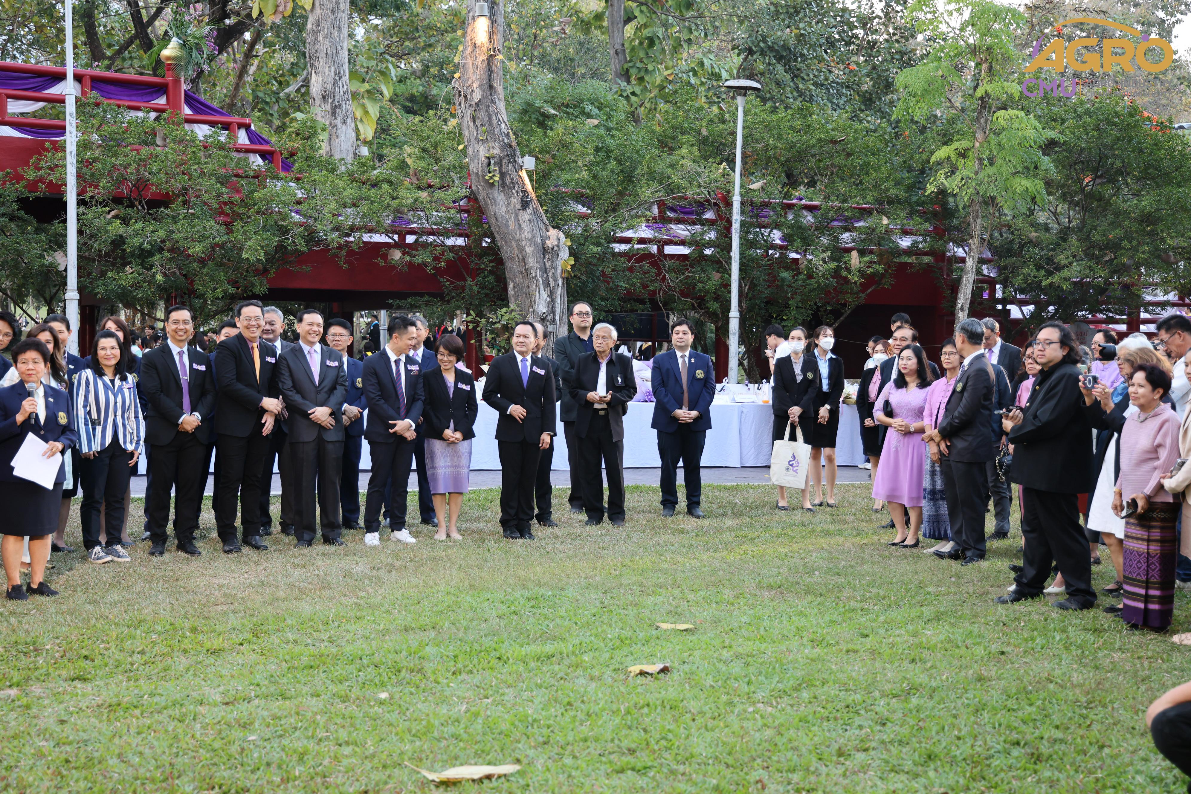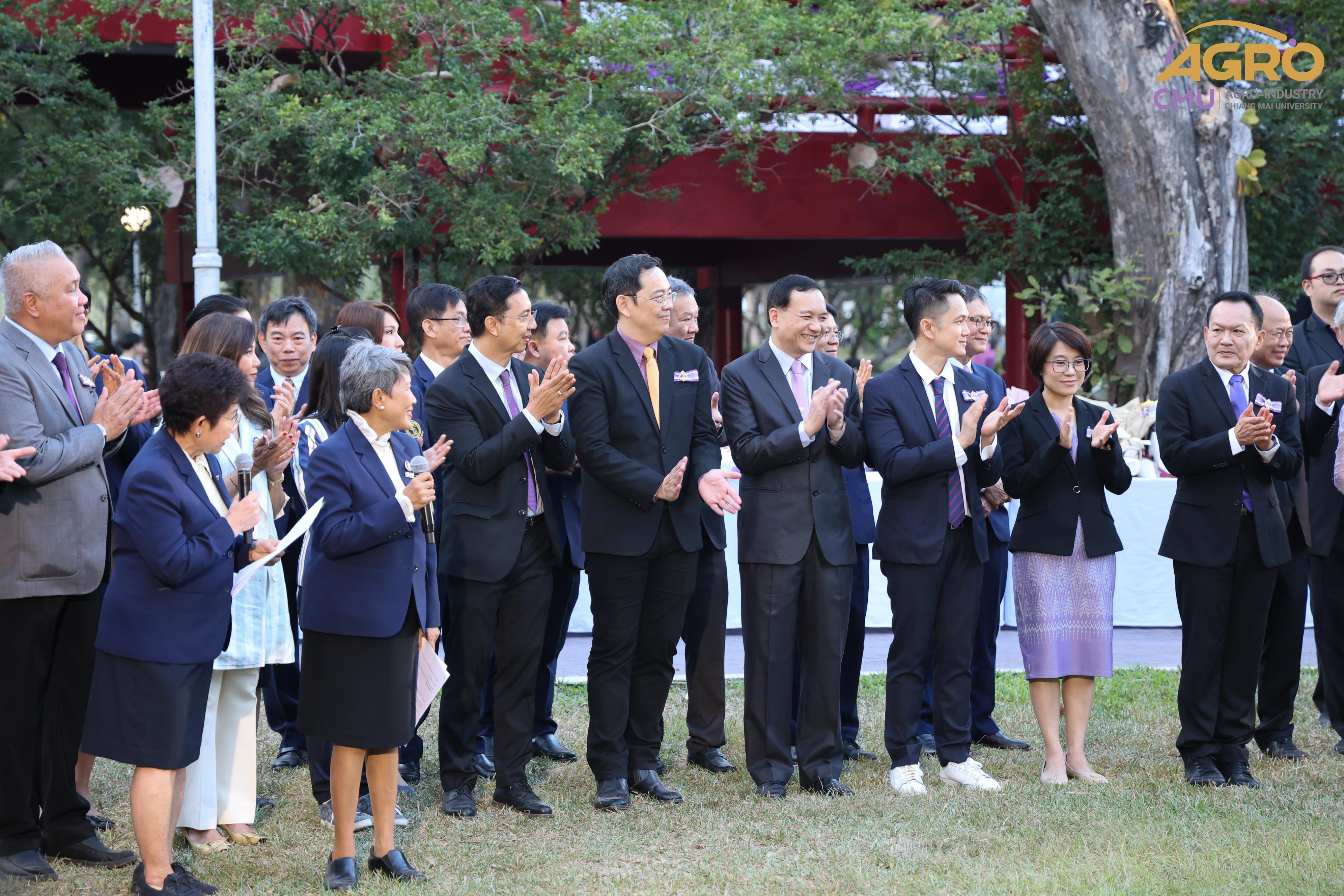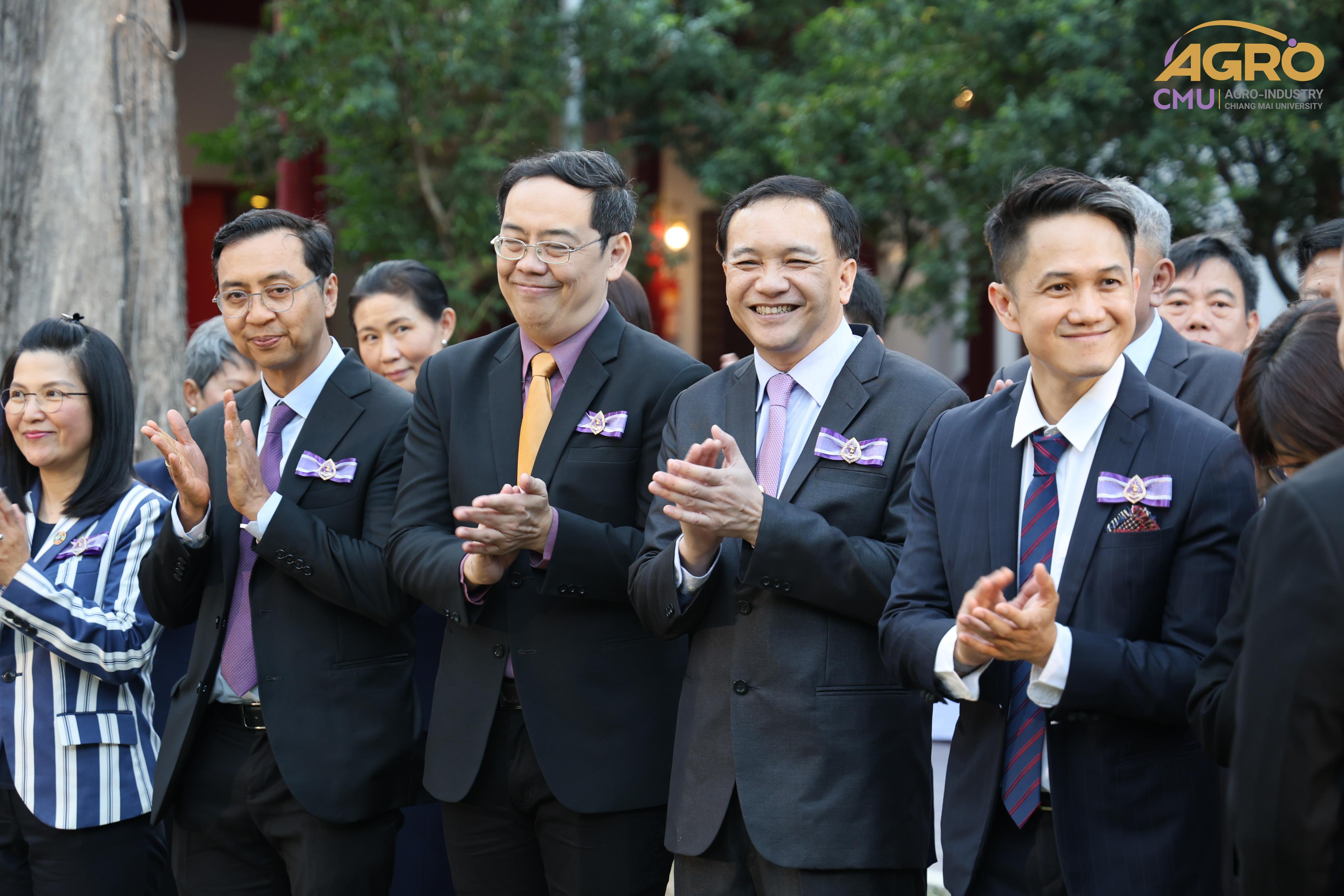 เมื่อวันอาทิตย์ที่ 28 มกราคม 2567 ผู้ช่วยศาสตราจารย์ ดร.สุจินดา ศรีวัฒนะ คณบดีคณะอุตสาหกรรมเกษตร พร้อมด้วยผู้บริหารและบุคลากรคณะอุตสาหกรรมเกษตร ร่วมมอบช่อดอกไม้ เพื่อแสดงความยินดีกับ ศาสตราจารย์ปฏิบัติ ดร.ชรินทร์ เตชะพันธุ์ รองอธิการบดีมหาวิทยาลัยเชียงใหม่ ในโอกาสที่ได้รับการประกาศเกียรติคุณให้เป็น นักศึกษาเก่ามหาวิทยาลัยเชียงใหม่ดีเด่น ประจำปี 2566 สาขาวิชาการ ณ ศาลาธรรม มหาวิทยาลัยเชียงใหม่
