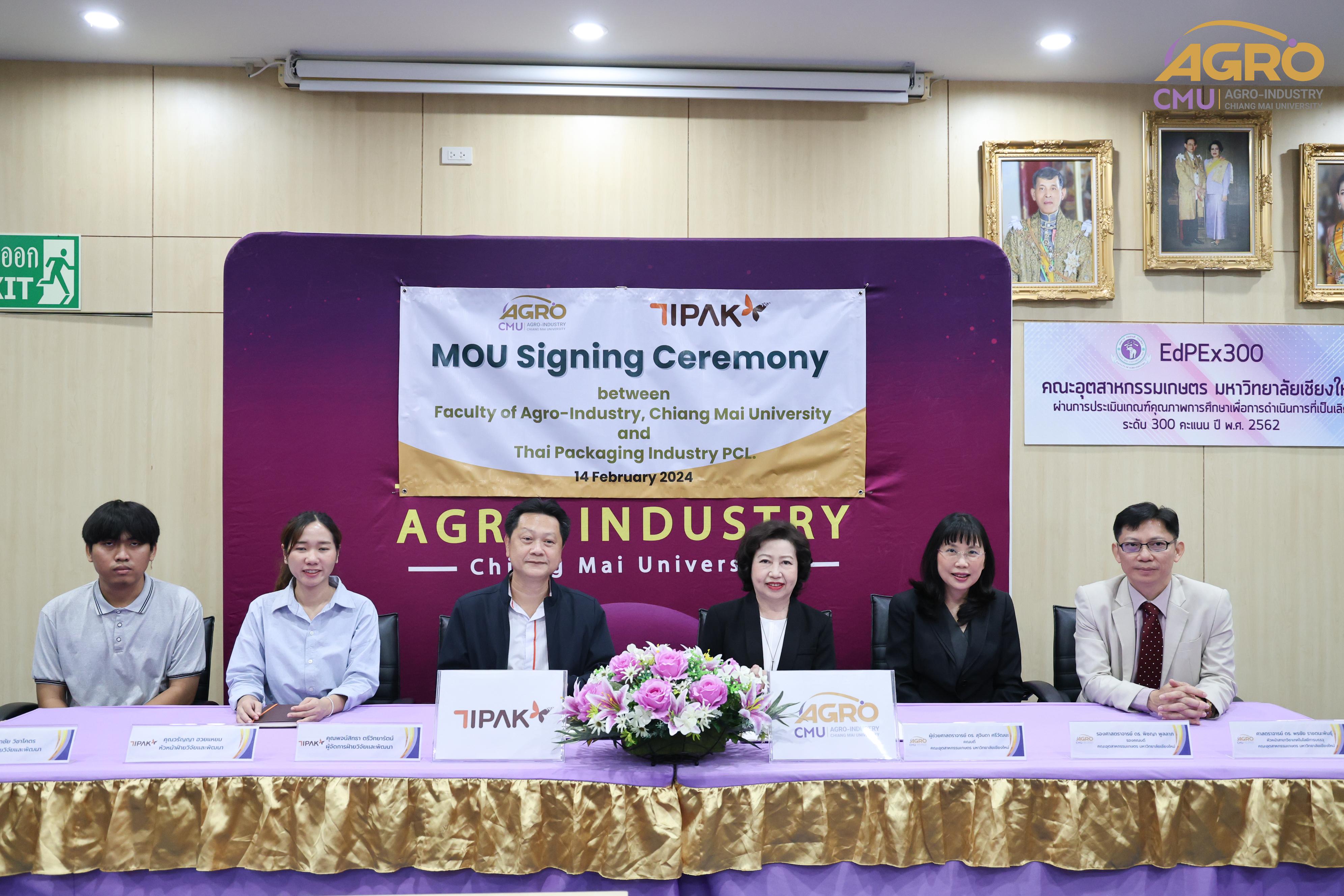 วันที่ 14 กุมภาพันธ์ 2567 คณะอุตสาหกรรมเกษตร มหาวิทยาลัยเชียงใหม่ และ บริษัท อุตสาหกรรมไทยบรรจุภัณฑ์ จำกัด มหาชน จัดพิธีลงนามบันทึกข้อตกลงความร่วมมือ (MOU) โดยมีผู้ช่วยศาสตราจารย์ ดร.สุจินดา ศรีวัฒนะ คณบดีคณะอุตสาหกรรมเกษตร และคุณพจน์สิทธา ตรีวิทยารัตน์ ผู้จัดการฝ่ายวิจัยเเละพัฒนา บริษัท อุตสาหกรรมไทยบรรจุภัณฑ์ จำกัด (มหาชน) ร่วมลงนามฯ ซึ่งบันทึกข้อตกลงความร่วมมือดังกล่าวมีขึ้นเพื่อวัตถุประสงค์การดำเนินงานด้านงานวิจัยและกิจกรรมนักศึกษาระหว่างคณะอุตสาหกรรมเกษตรและ บริษัท อุตสาหกรรมไทยบรรจุภัณฑ์ จำกัด (มหาชน) โดยในโอกาสนี้มี รองศาสตราจารย์ ดร. พิชญา พูลลาภ รองคณบดีฝ่ายวิจัย ผู้ช่วยศาสตราจารย์ ดร. สรญา เขียวนาวาวงศ์ษา ผู้ช่วยคณบดี และ ศ. ดร. พรชัย ราชตนพันธุ์ หัวหน้าสาขาวิชาเทคโนโลยีการบรรจุ พร้อมทั้ง คุณวรัญญา ฮวยแหยม หัวหน้าฝ่ายวิจัยและพัฒนา และ คุณหัตถชัย วิชาโคตร เจ้าหน้าที่ฝ่ายวิจัยและพัฒนา เข้าร่วมพิธีลงนามฯ ดังกล่าว ณ ห้องประชุม 3 อาคารสำนักงานคณะอุตสาหกรรมเกษตร