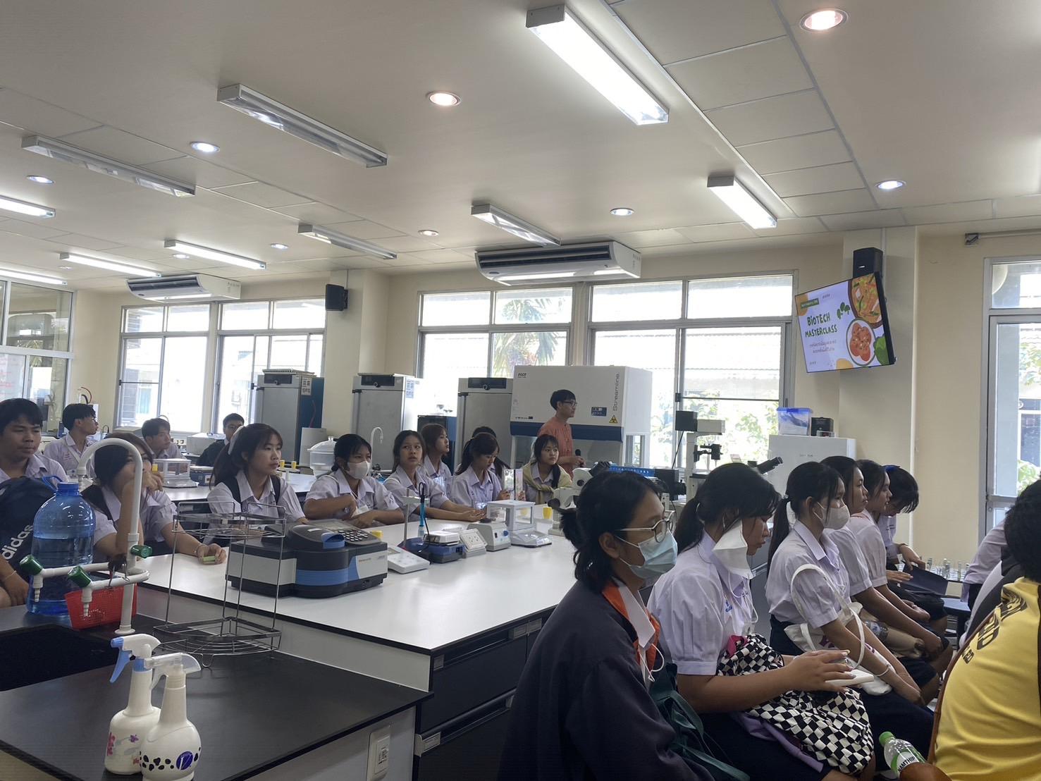 เมื่อวันศุกร์ที่ 29 มีนาคม 2567 คณะอุตสาหกรรมเกษตร ให้การต้อนรับ น้อง ๆ นักเรียนชั้นมัธยมศึกษาตอนปลายจากโรงเรียนทั่วประเทศ จำนวน 102 คน และคณะครูผู้ดูแล จาก ค่ายกวดวิชากับสถาบันกวดวิชา Strong Academy โดยมีผู้ช่วยศาสตราจารย์ ดร.สุทัศน์ สุระวัง รองคณบดีฝ่ายวิชาการ ให้การต้อนรับและให้ข้อมูลหลักสูตร 7 สาขาวิชา เพื่อเสริมประสบการณ์การเรียนรู้ และสร้างแรงบันดาลใจในการเลือกศึกษาต่อในระดับอุดมศึกษา โดยทางคณะอุตสาหกรรมเกษตร ได้เตรียมให้น้อง ๆ ได้เข้าเยี่ยมชมห้องปฏิบัติการ ฐานกิจกรรมเปิดโลก Biotech และฐาน Food Biotechnology กับสาขาวิชาเทคโนโลยีชีวภาพฯ อีกด้วย