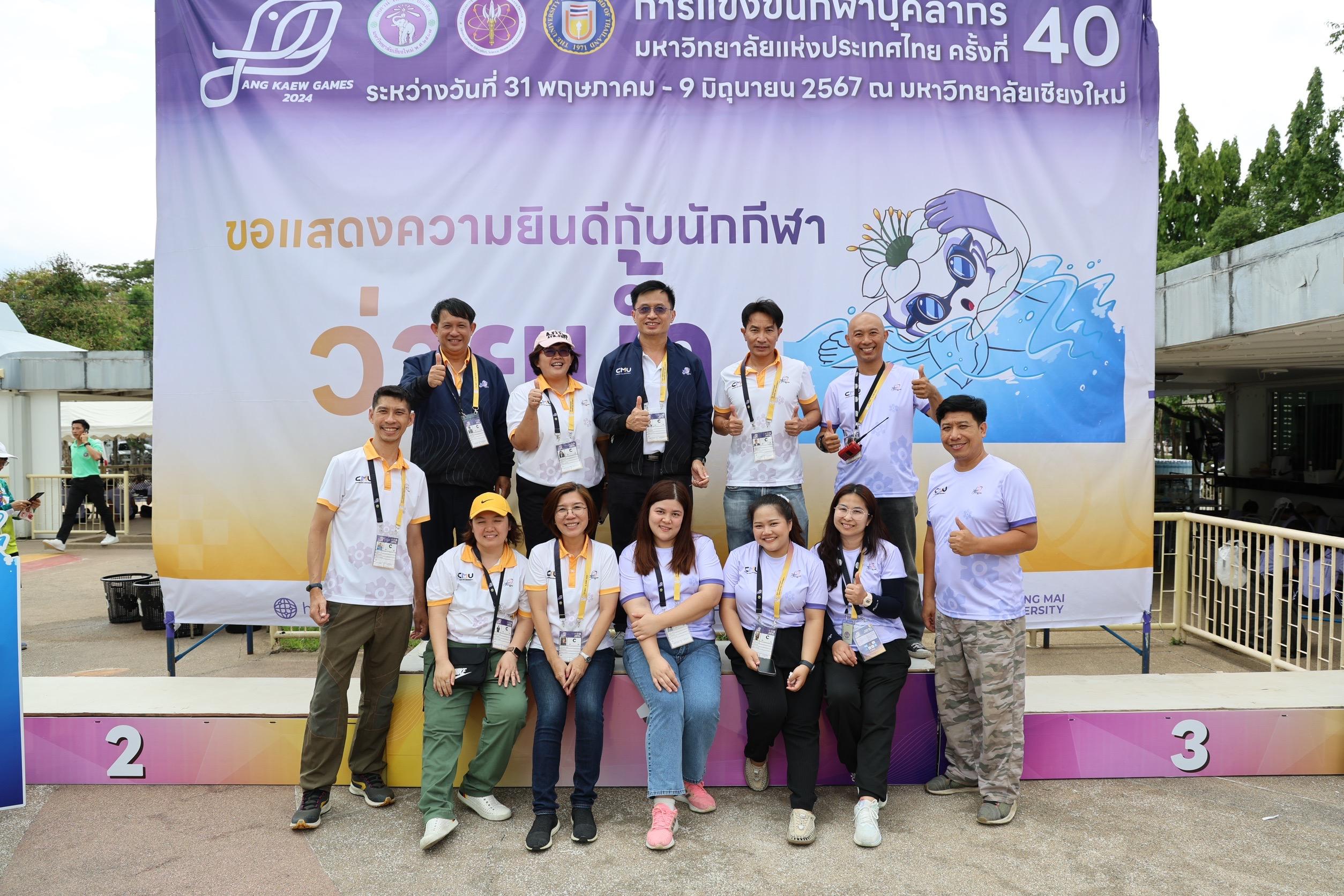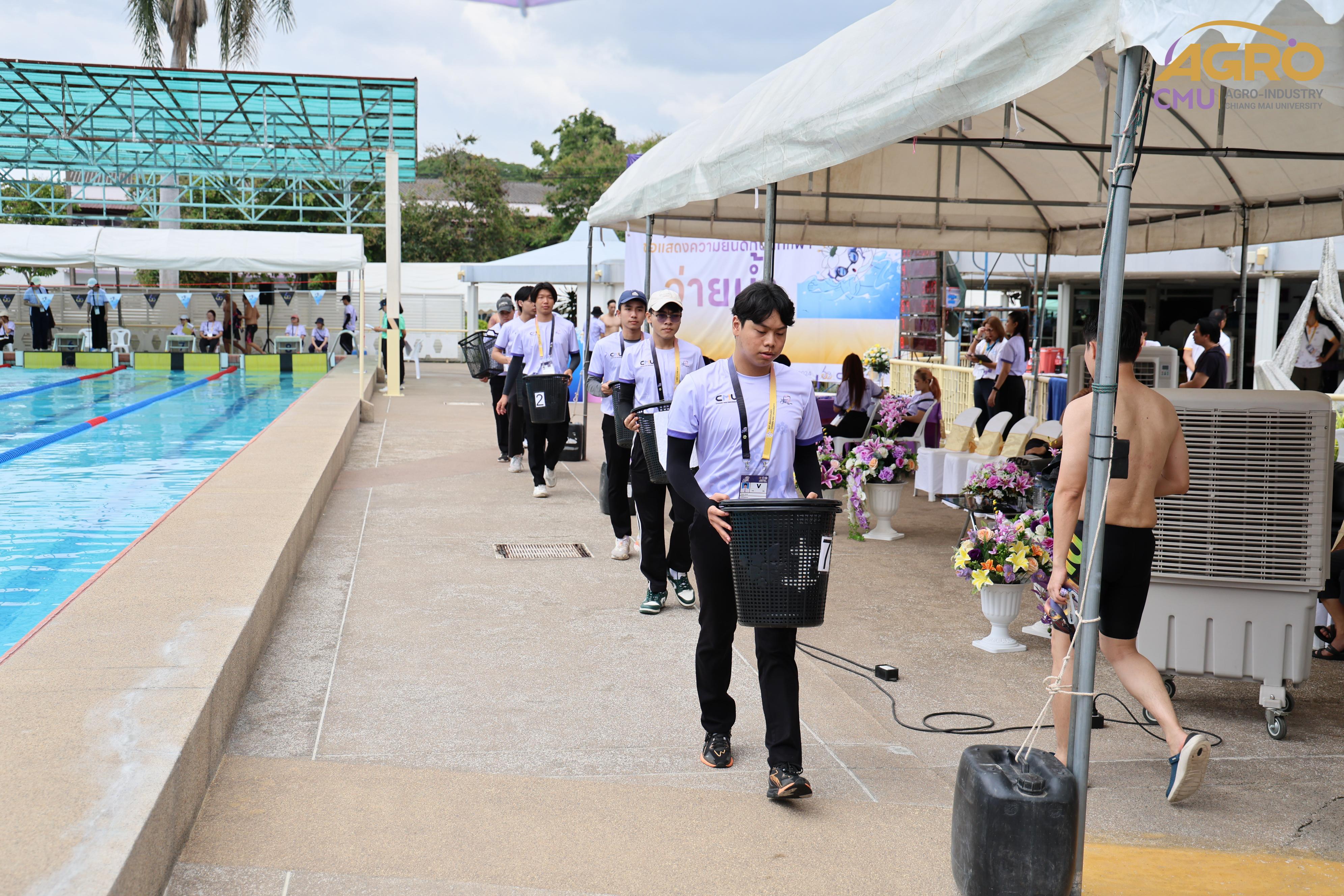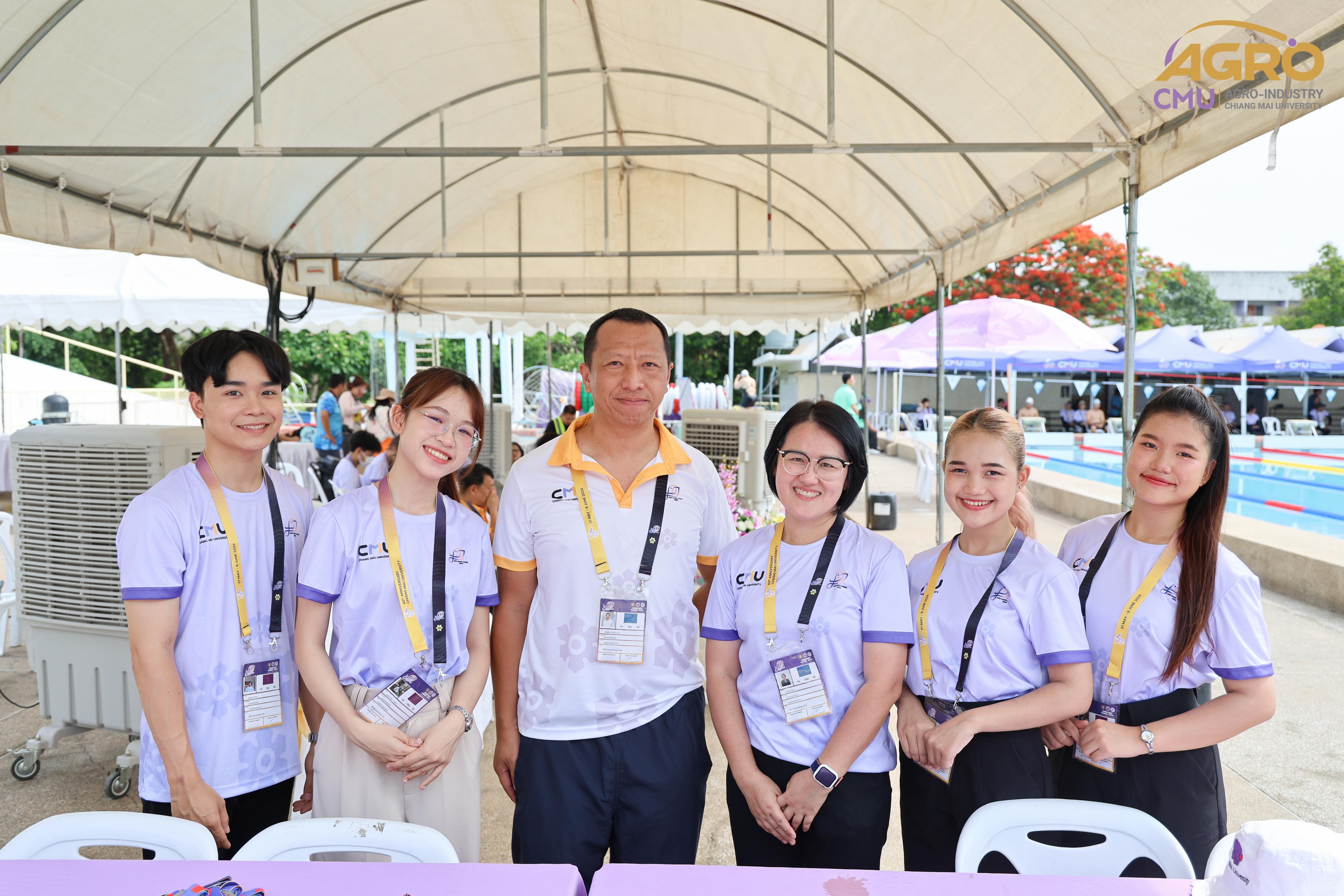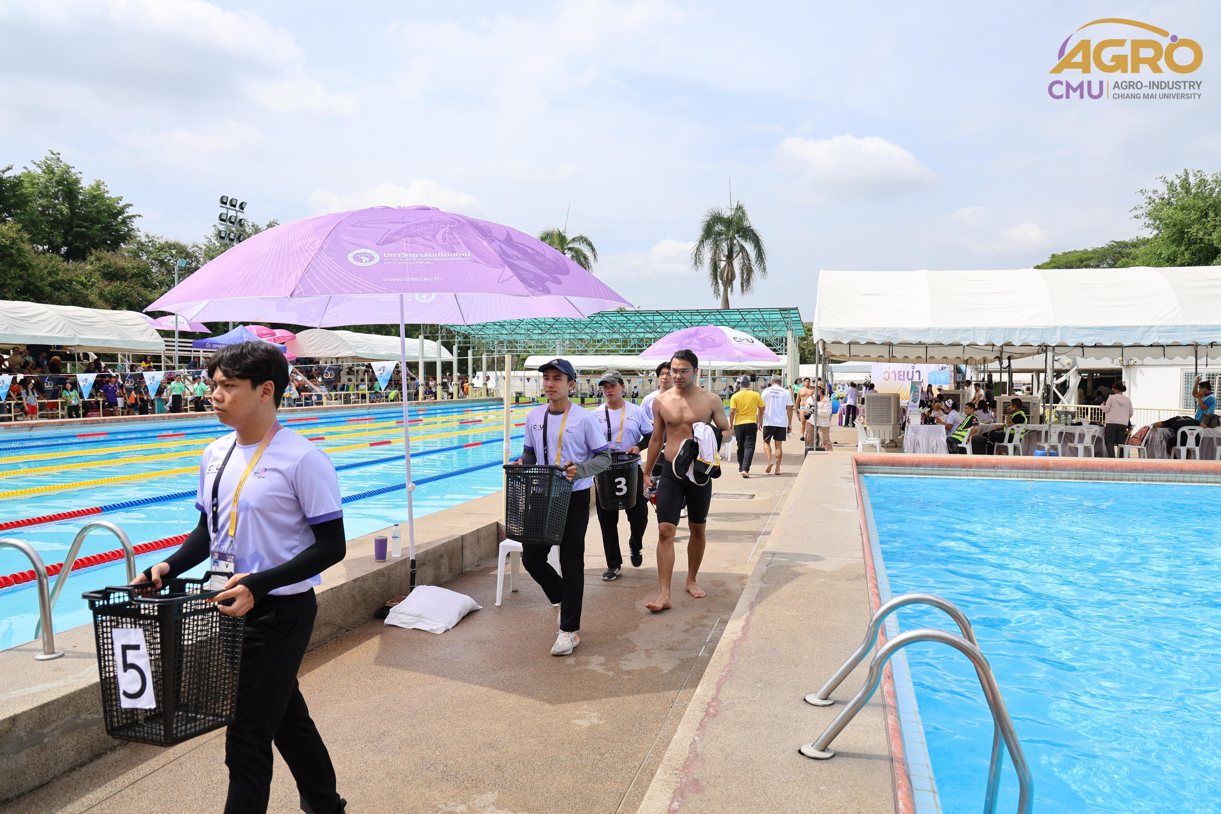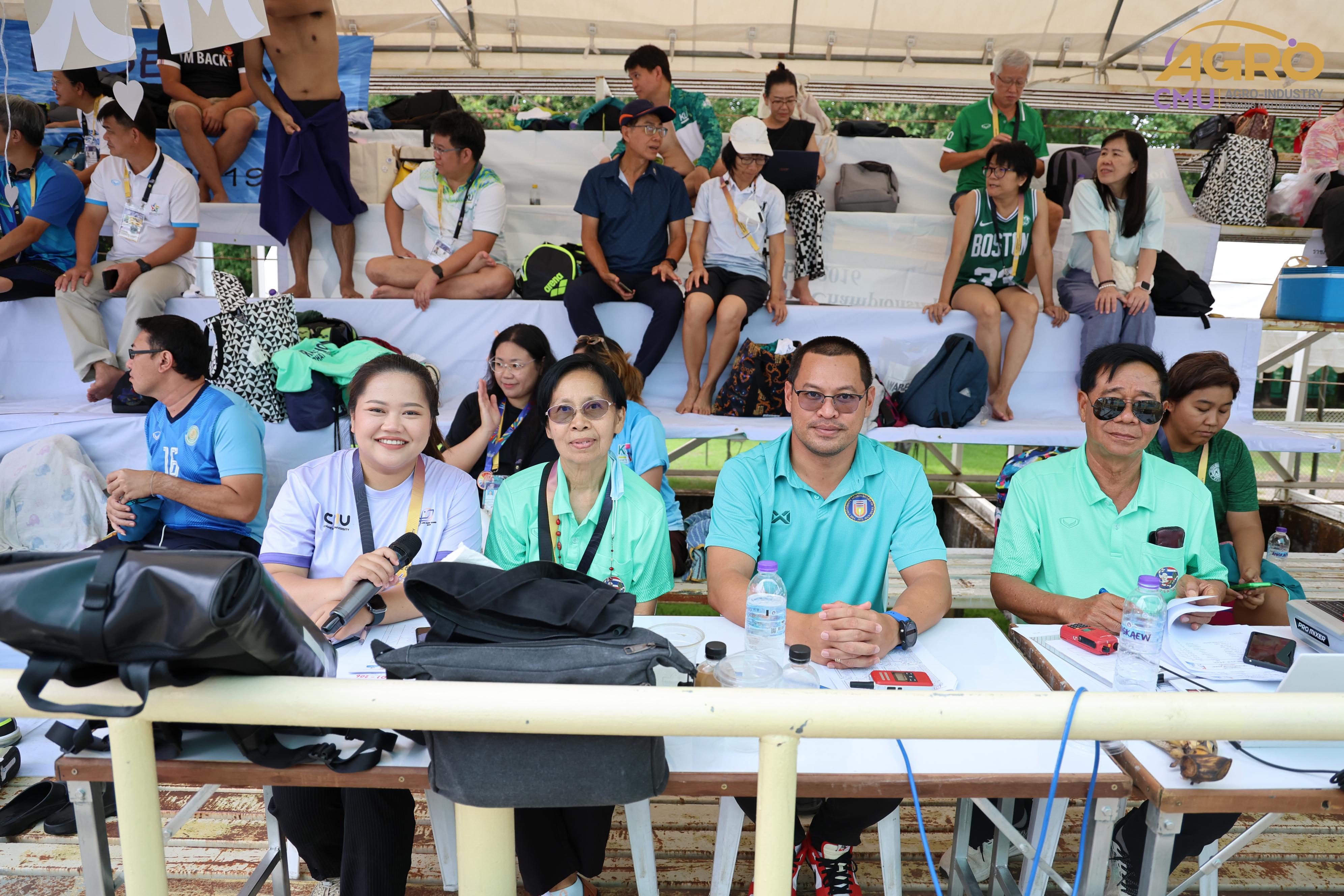 ตามที่ คณะอุตสาหกรรมเกษตร ได้รับมอบหมายให้เป็นเจ้าภาพจัดการแข่งขันกีฬาชนิดว่ายน้ำ ในการแข่งขันกีฬาบุคลากรมหาวิทยาลัยแห่งประเทศไทย ครั้งที่ 40 "อ่างแก้วเกมส์ 2024" ระหว่างวันที่ 7-8 มิถุนายน 2567 ซึ่งวันนี้เป็นการแข่งขันวันที่สอง โดยมี ผู้ช่วยศาสตราจารย์ประเสริฐ เกรียงไกร รองอธิการบดี มหาวิทยาลัยเชียงใหม่ ผู้ช่วยศาสตราจารย์ ดร.สุทัศน์ สุระวัง รองคณบดีคณะอุตสาหกรรมเกษตร และผู้ช่วยศาสตราจารย์ ดร.สุภเวท มานิยม ผู้ช่วยคณบดีคณะอุตสาหกรรมเกษตร เข้าเยี่ยมชมและให้กำลังใจกับนักฬาที่เข้าร่วมการแข่งขัน ณ สระว่ายน้ำรุจิรวงศ์ มหาวิทยาลัยเชียงใหม่ ซึ่งการแข่งขันในครั้งนี้ สำเร็จลุล่วงไปด้วยดี