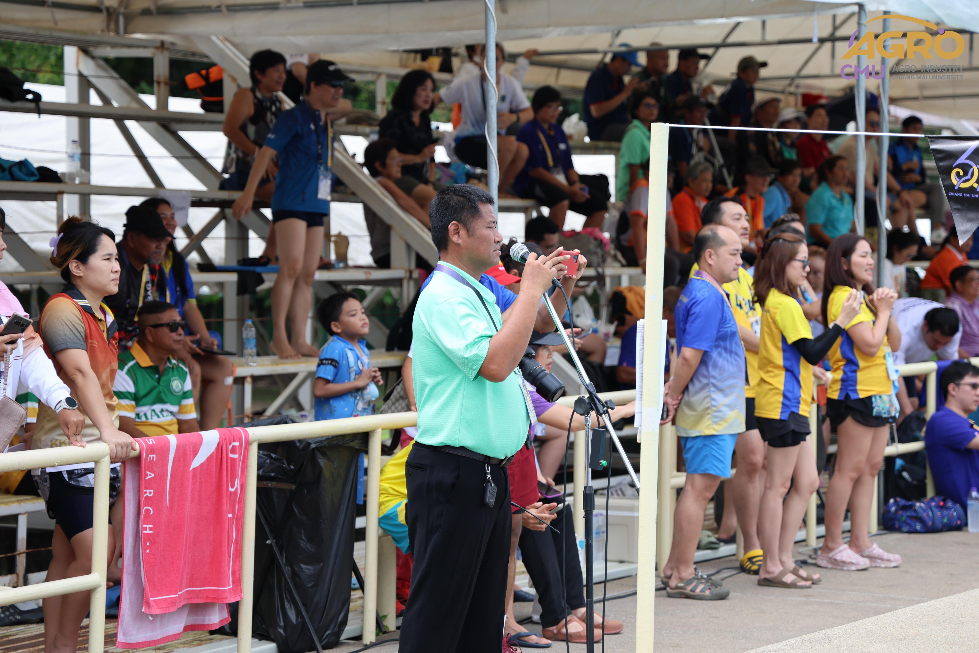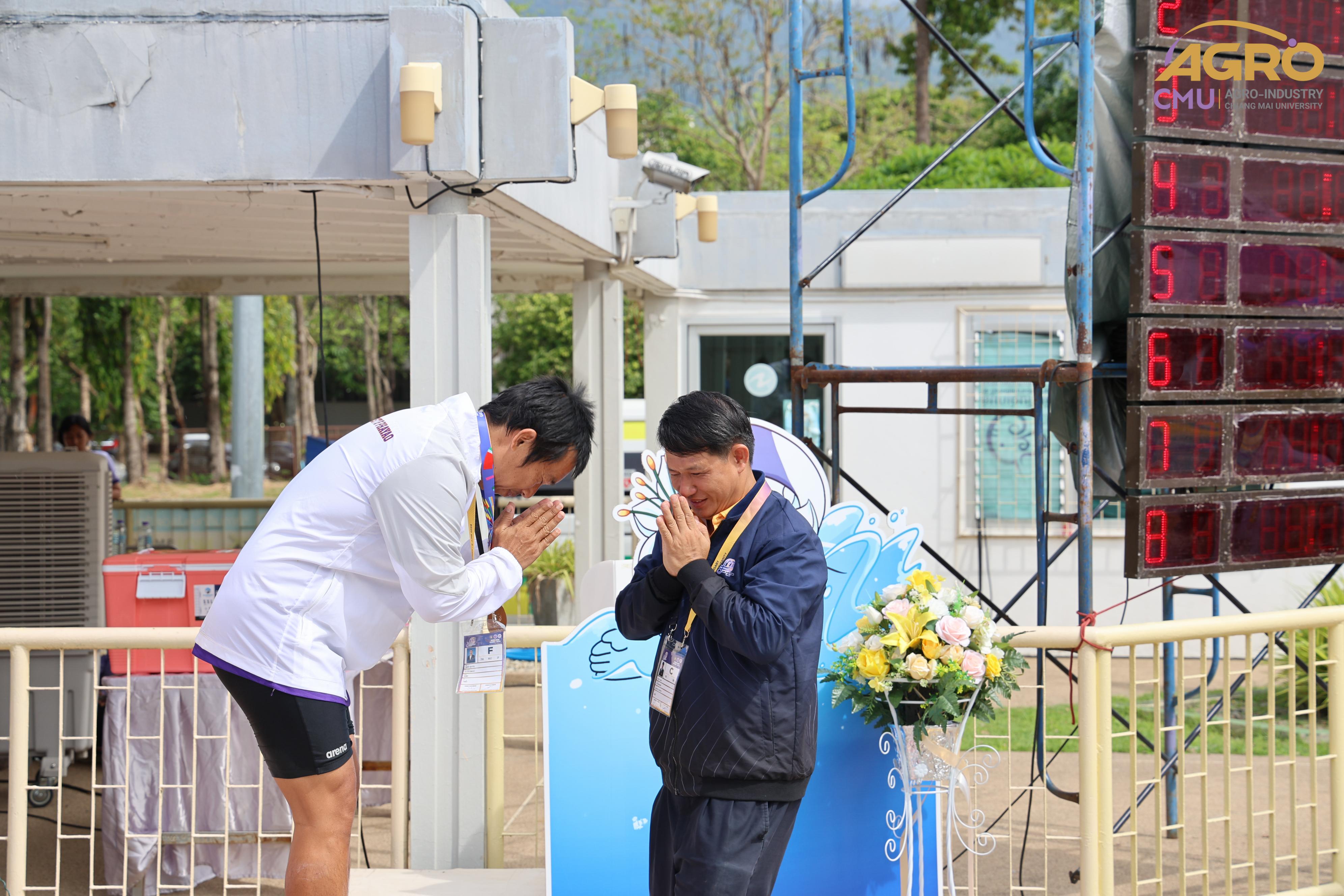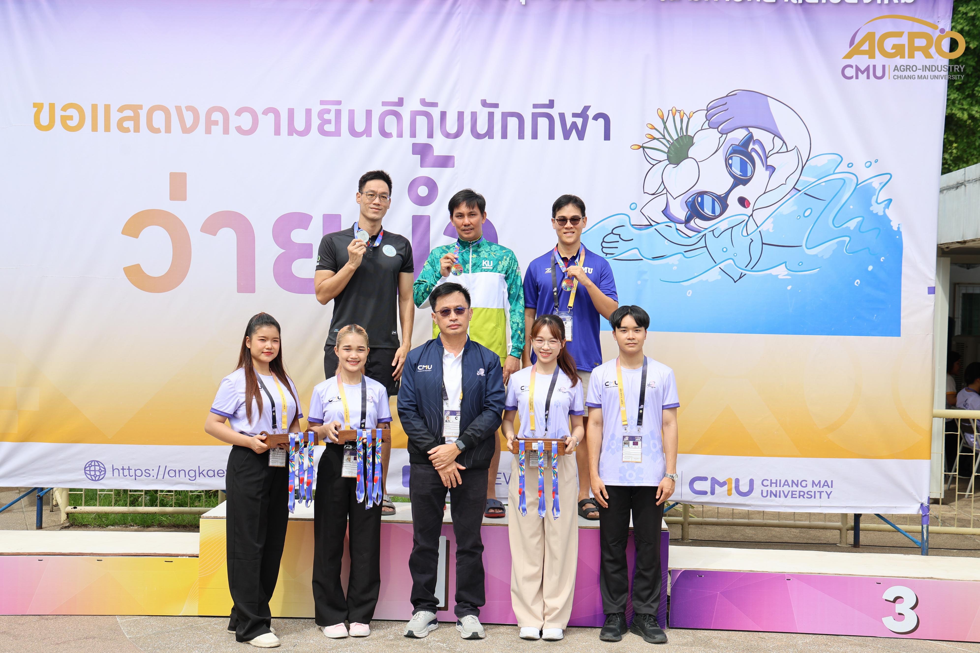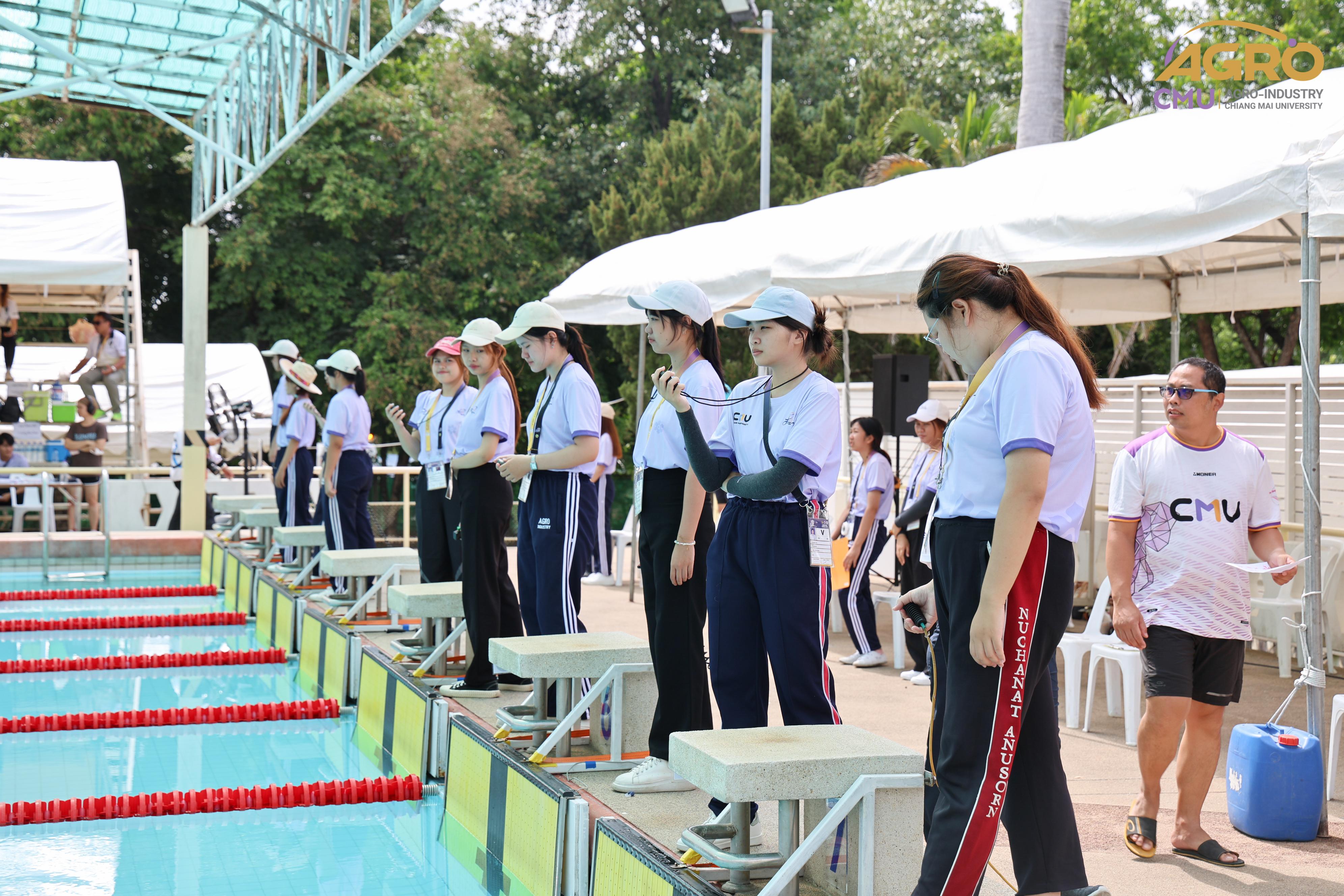 ตามที่ คณะอุตสาหกรรมเกษตร ได้รับมอบหมายให้เป็นเจ้าภาพจัดการแข่งขันกีฬาชนิดว่ายน้ำ ในการแข่งขันกีฬาบุคลากรมหาวิทยาลัยแห่งประเทศไทย ครั้งที่ 40 "อ่างแก้วเกมส์ 2024" ระหว่างวันที่ 7-8 มิถุนายน 2567 ซึ่งวันนี้เป็นการแข่งขันวันที่สอง โดยมี ผู้ช่วยศาสตราจารย์ประเสริฐ เกรียงไกร รองอธิการบดี มหาวิทยาลัยเชียงใหม่ ผู้ช่วยศาสตราจารย์ ดร.สุทัศน์ สุระวัง รองคณบดีคณะอุตสาหกรรมเกษตร และผู้ช่วยศาสตราจารย์ ดร.สุภเวท มานิยม ผู้ช่วยคณบดีคณะอุตสาหกรรมเกษตร เข้าเยี่ยมชมและให้กำลังใจกับนักฬาที่เข้าร่วมการแข่งขัน ณ สระว่ายน้ำรุจิรวงศ์ มหาวิทยาลัยเชียงใหม่ ซึ่งการแข่งขันในครั้งนี้ สำเร็จลุล่วงไปด้วยดี