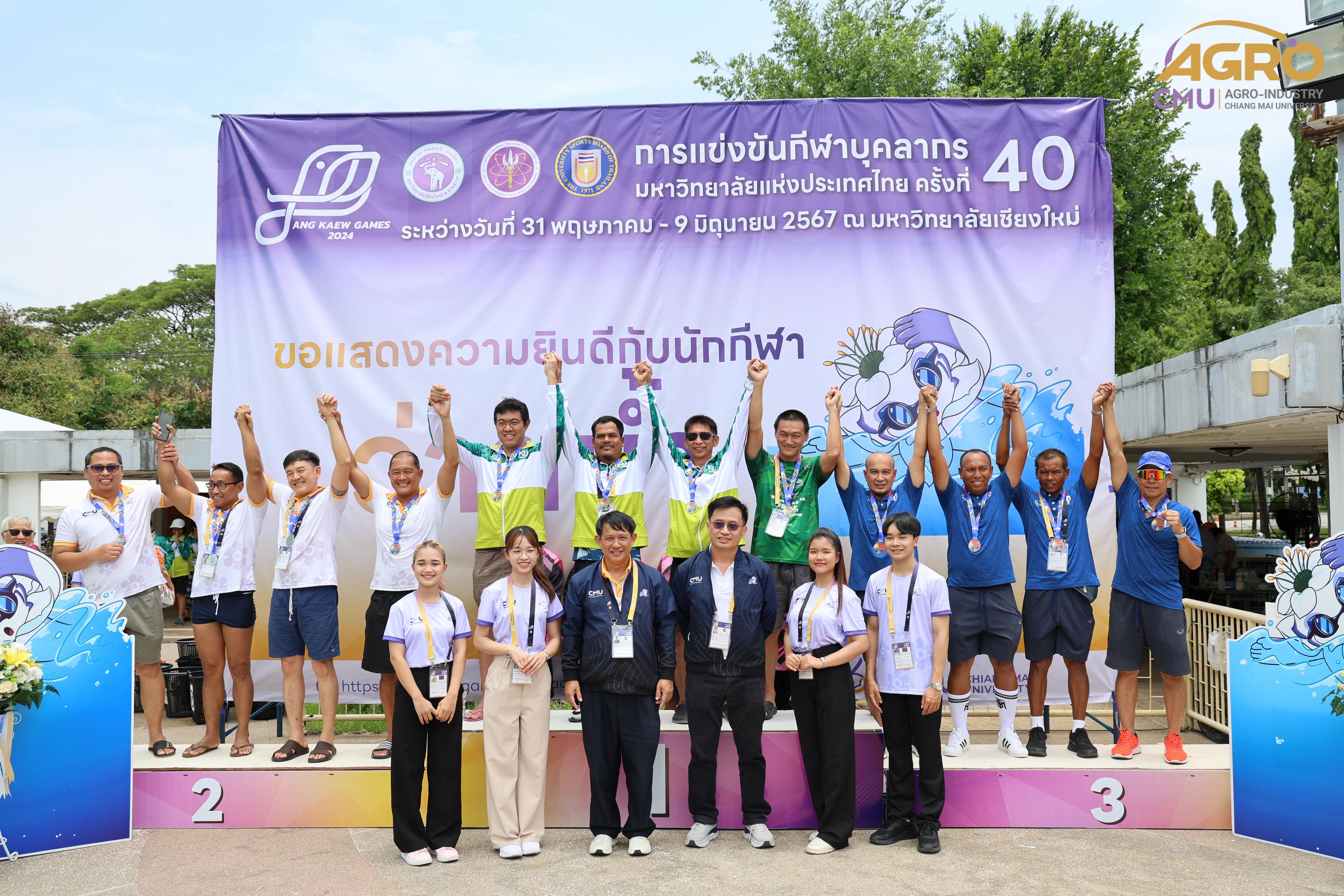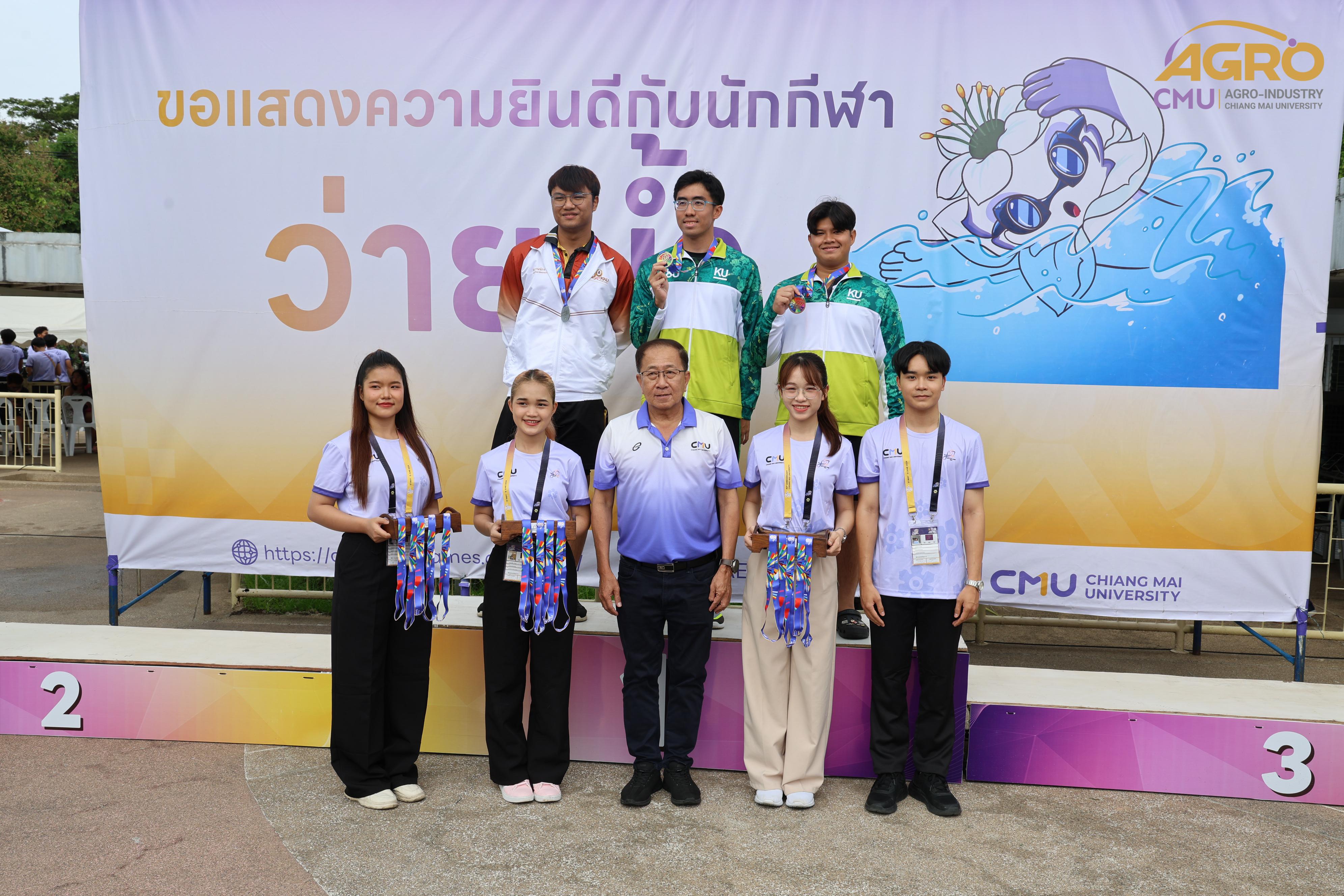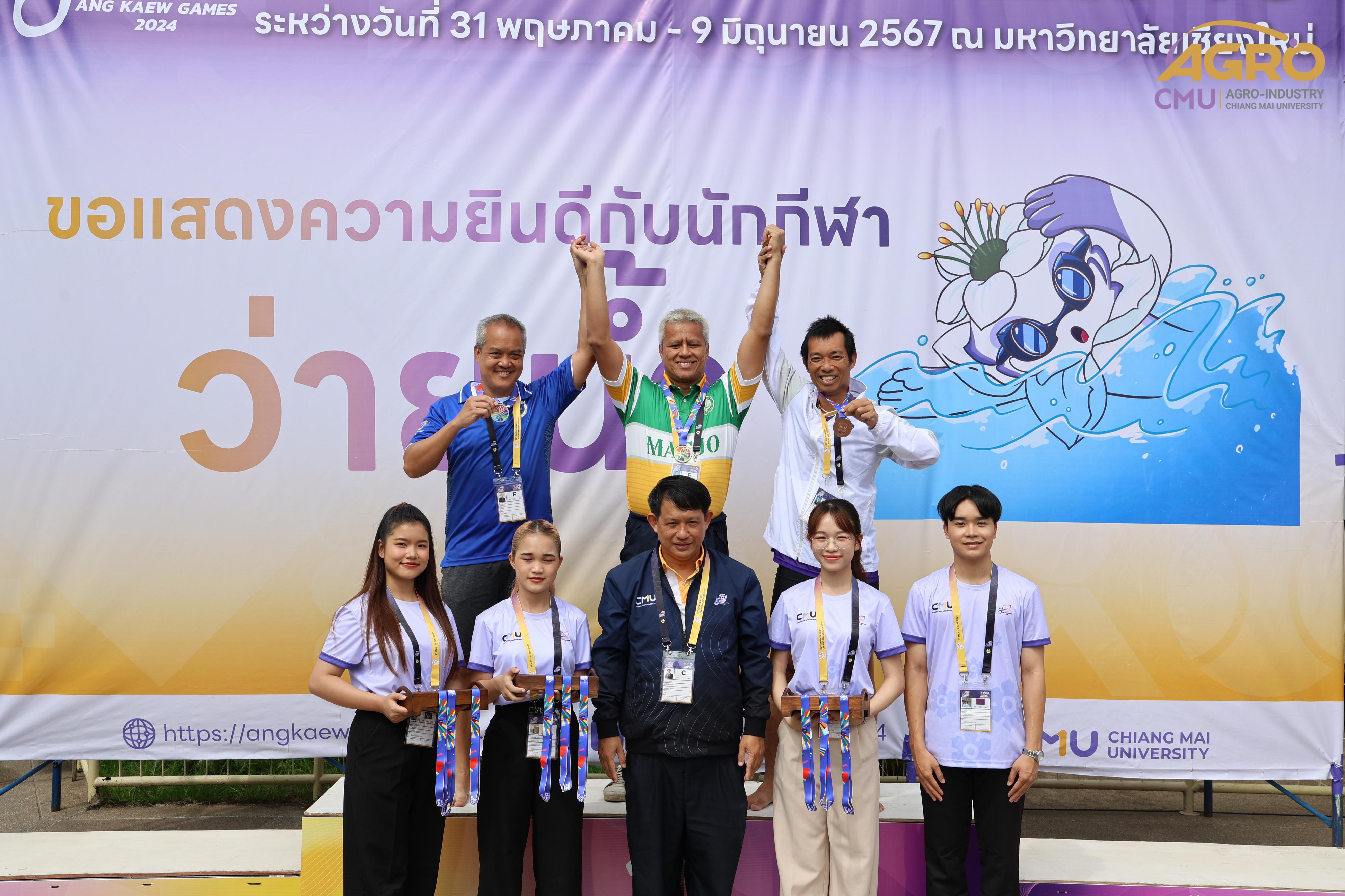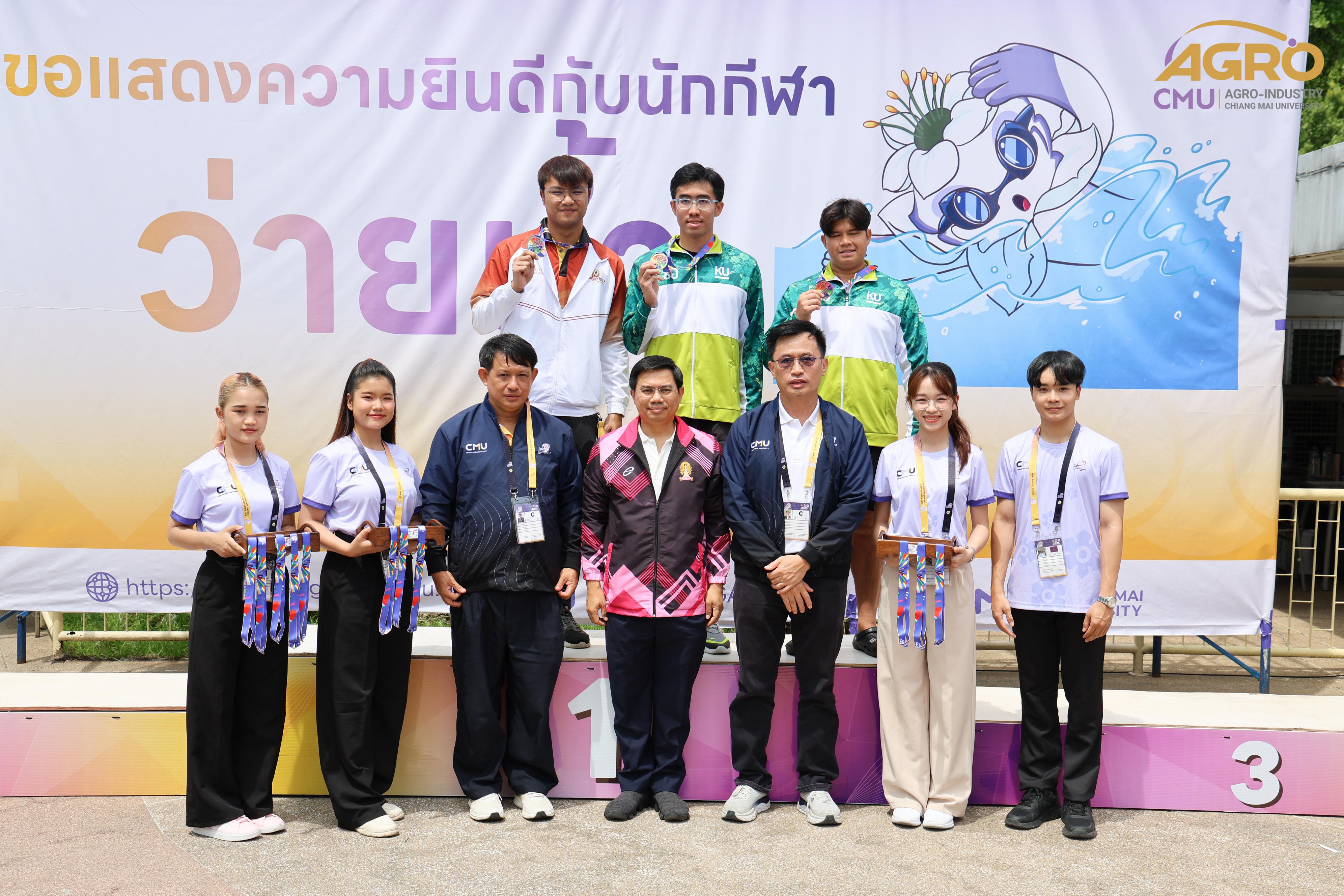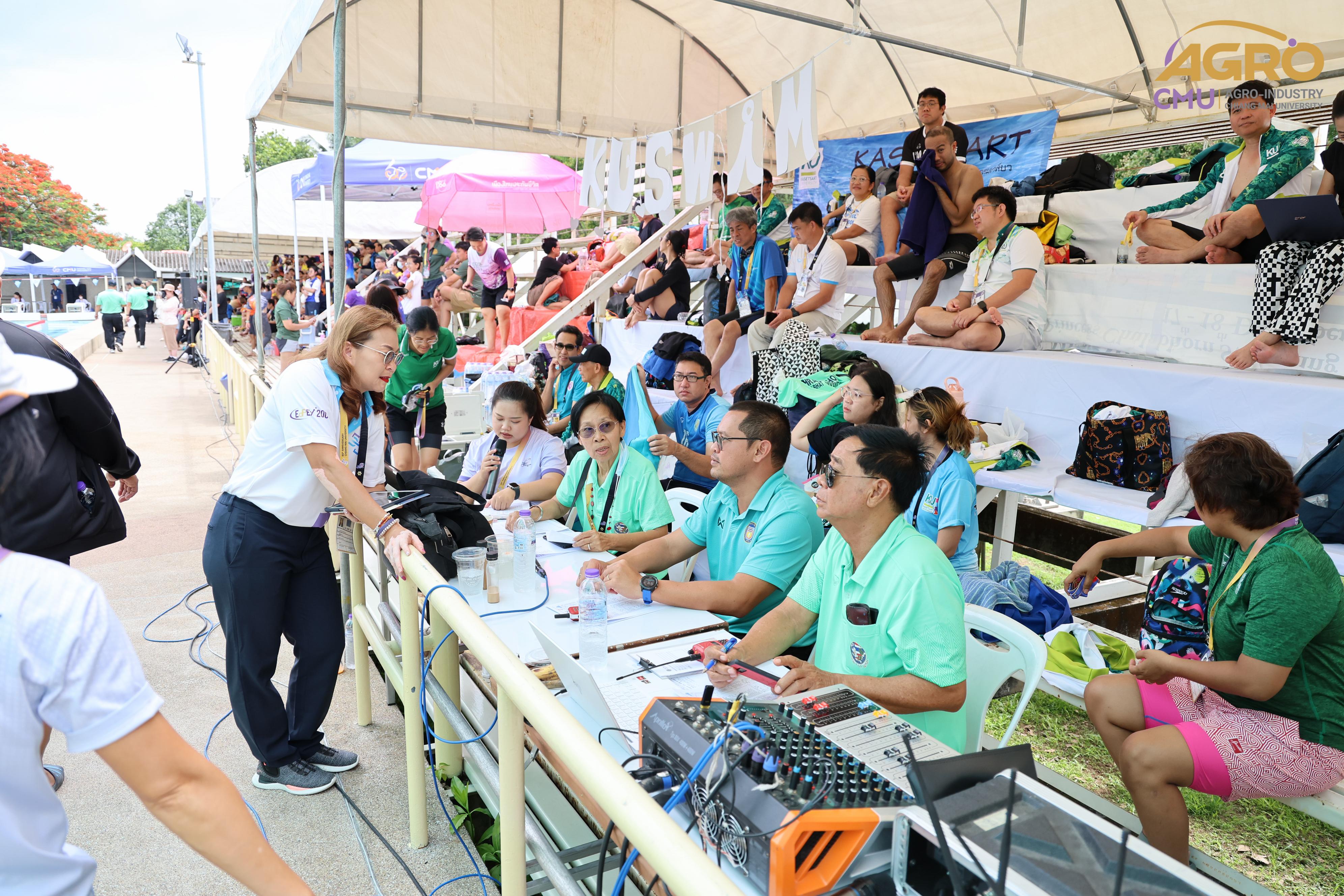 ตามที่ คณะอุตสาหกรรมเกษตร ได้รับมอบหมายให้เป็นเจ้าภาพจัดการแข่งขันกีฬาชนิดว่ายน้ำ ในการแข่งขันกีฬาบุคลากรมหาวิทยาลัยแห่งประเทศไทย ครั้งที่ 40 "อ่างแก้วเกมส์ 2024" ระหว่างวันที่ 7-8 มิถุนายน 2567 ซึ่งวันนี้เป็นการแข่งขันวันที่สอง โดยมี ผู้ช่วยศาสตราจารย์ประเสริฐ เกรียงไกร รองอธิการบดี มหาวิทยาลัยเชียงใหม่ ผู้ช่วยศาสตราจารย์ ดร.สุทัศน์ สุระวัง รองคณบดีคณะอุตสาหกรรมเกษตร และผู้ช่วยศาสตราจารย์ ดร.สุภเวท มานิยม ผู้ช่วยคณบดีคณะอุตสาหกรรมเกษตร เข้าเยี่ยมชมและให้กำลังใจกับนักฬาที่เข้าร่วมการแข่งขัน ณ สระว่ายน้ำรุจิรวงศ์ มหาวิทยาลัยเชียงใหม่ ซึ่งการแข่งขันในครั้งนี้ สำเร็จลุล่วงไปด้วยดี