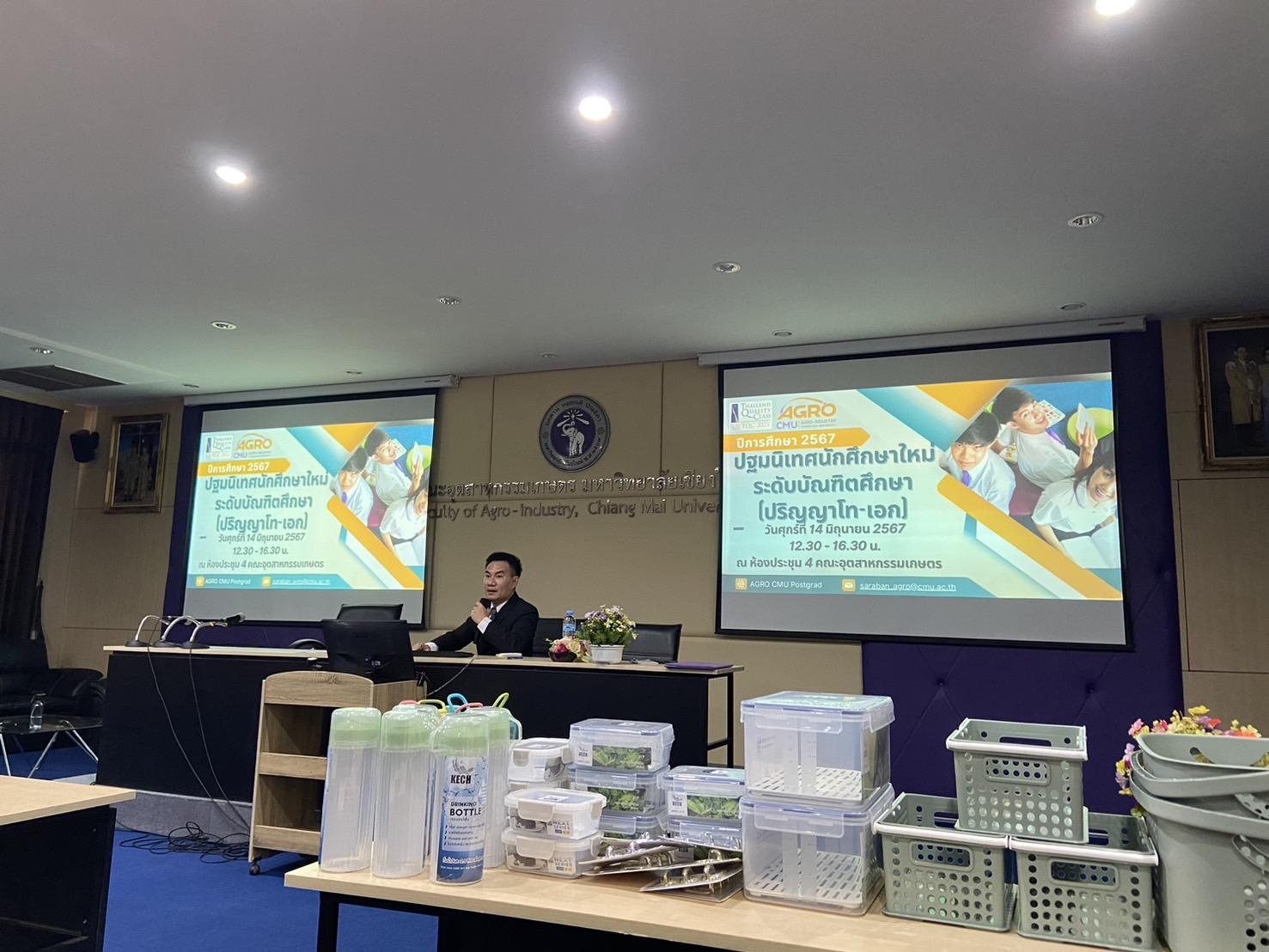 เมื่อวันศุกร์ที่ 14 มิถุนายน พ.ศ.2567 เวลา 12.30 – 16.30 น. คณะอุตสาหกรรมเกษตร มหาวิทยาลัยเชียงใหม่ ได้จัดกิจกรรมวันปฐมนิเทศนักศึกษาใหม่ ระดับบัณฑิตศึกษา(ปริญญาโท-เอก) ณ ห้องประชุม 4 อาคารสำนักงานคณะอุตสาหกรรมเกษตร โดยได้รับเกียรติจาก รองศาสตราจารย์ ดร.ทนงศักดิ์ ไชยาโส หัวหน้าสำนักวิชาอุตสาหกรรมเกษตร กล่าวเปิดงานพร้อมให้โอวาทแก่นักศึกษาในครั้งนี้