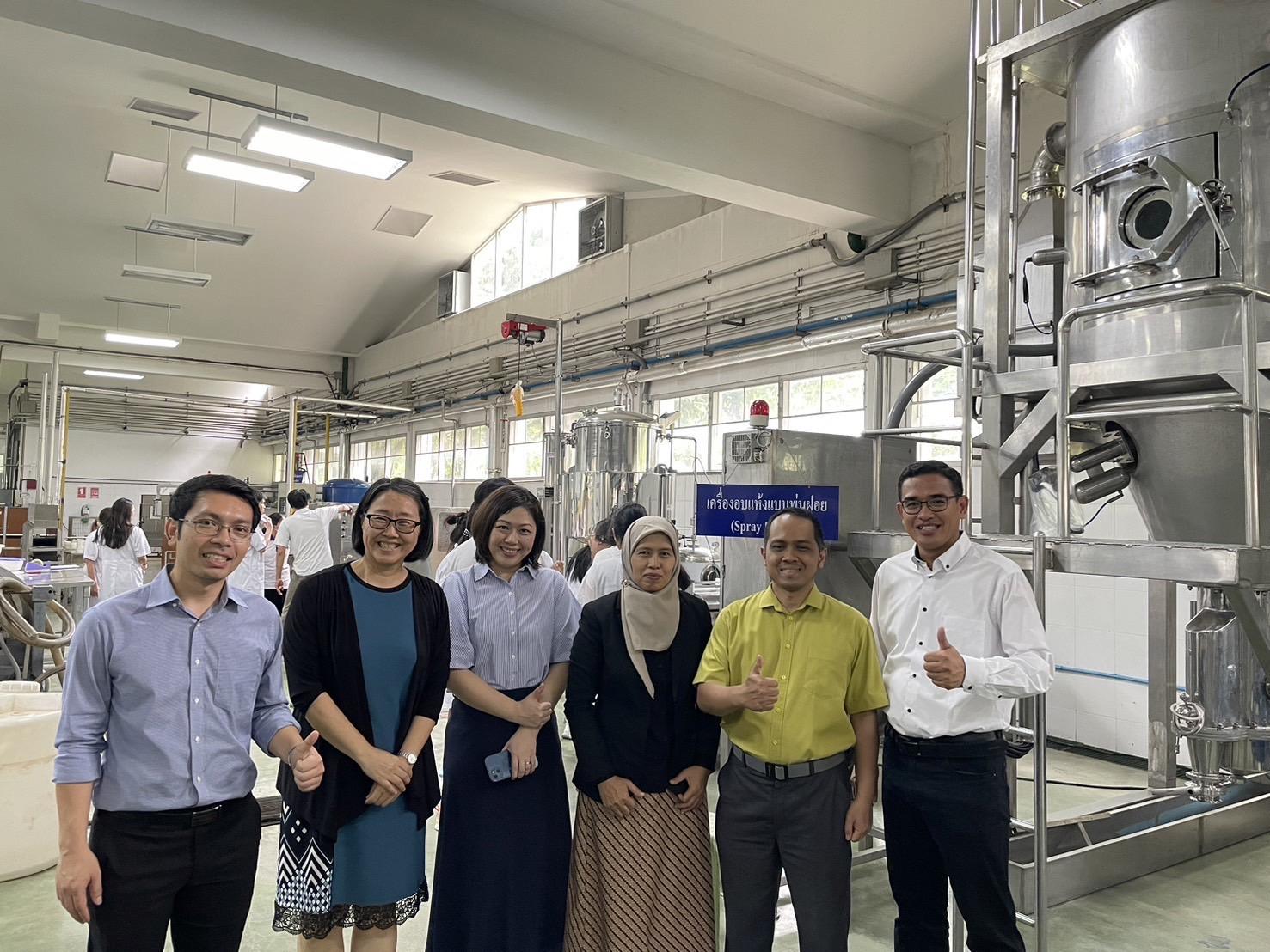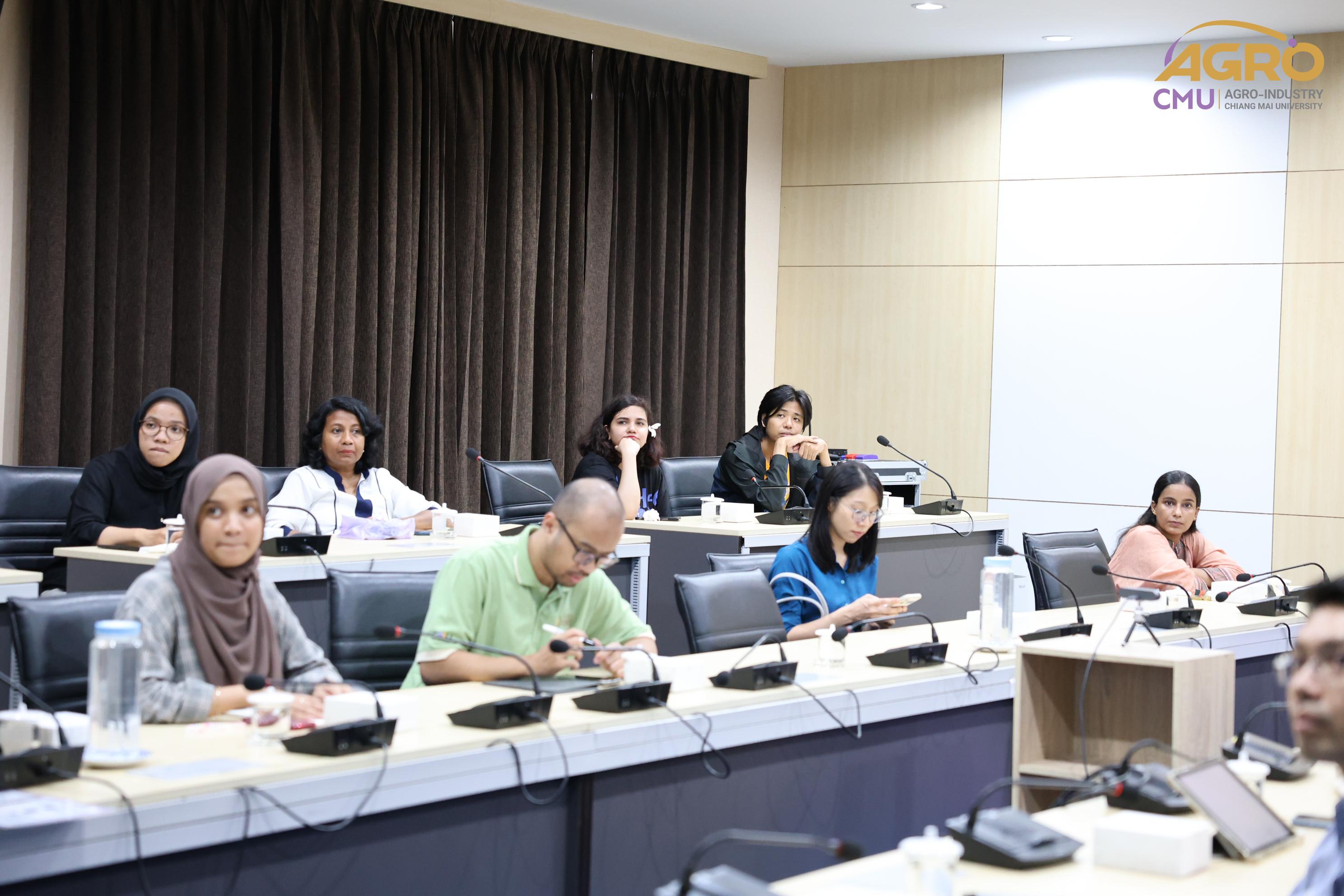 On Monday, July 23, 2024, Associate Professor Dr. Suthee Wangteuy, Associate Dean of the Faculty of Agro-Industry, along with the faculty's administration and staff, welcomed guests from Universitas Brawijaya, Indonesia. The visit aimed to discuss international programs and included a special lecture on the topic "Tempe: Super Food from Indonesia," with the objective of enhancing the students' potential. The event was held in Meeting Rooms 2 and 3 of the Faculty of Agro-Industry building. Following the discussions, the guests toured the Food Innovation and Packaging Center (FIN), the pilot plant, and the laboratories of the Faculty of Agro-Industry.