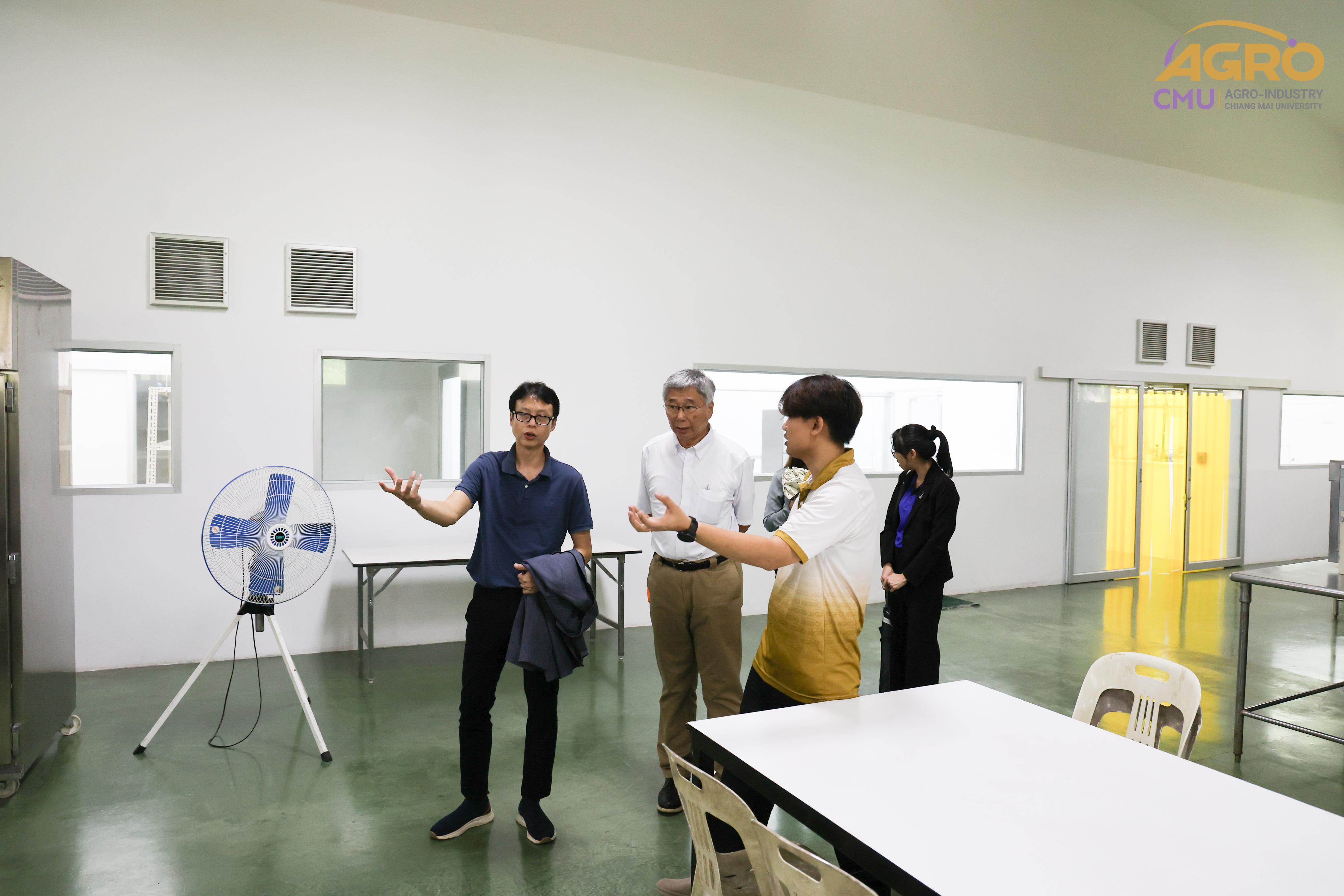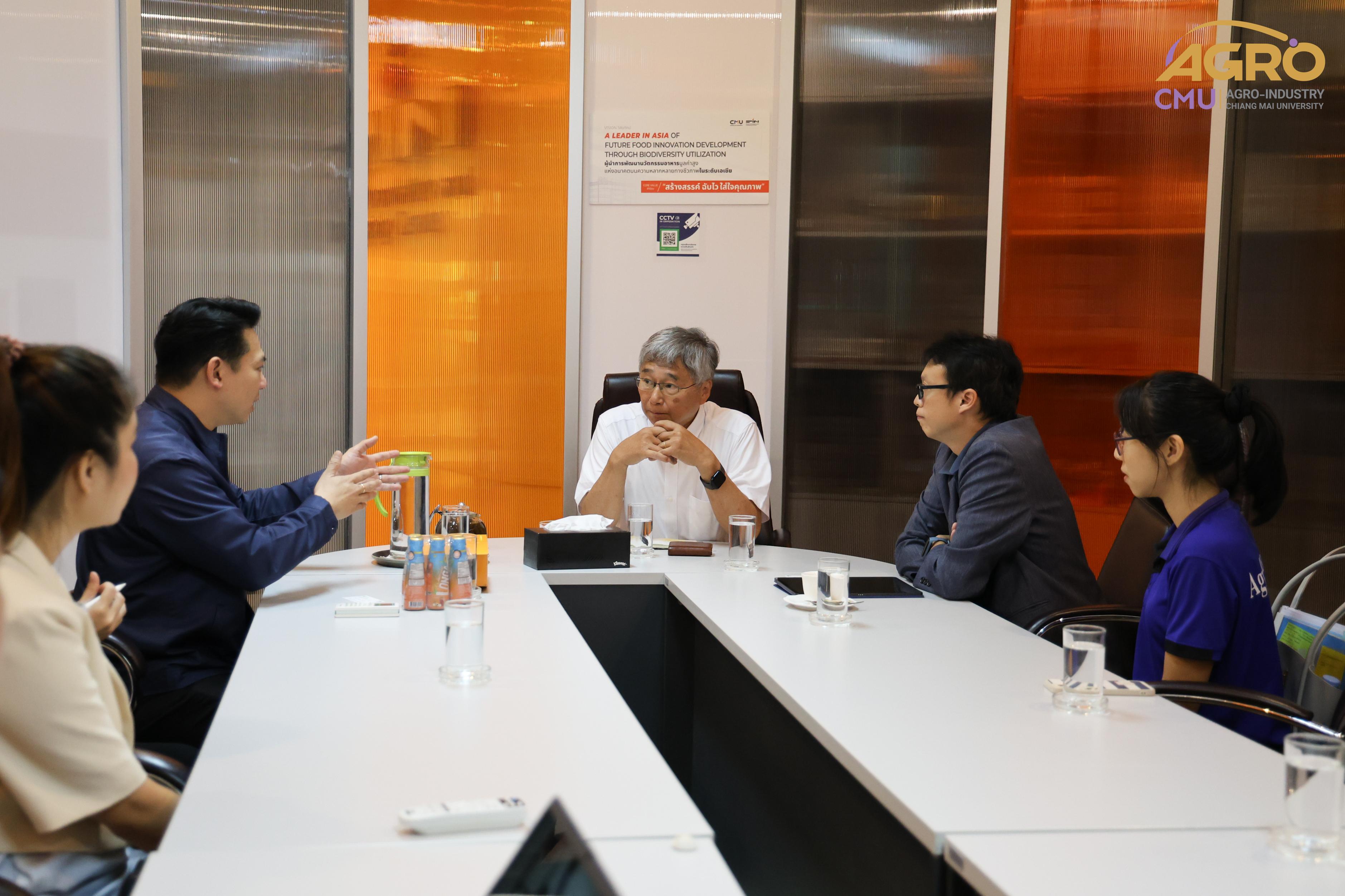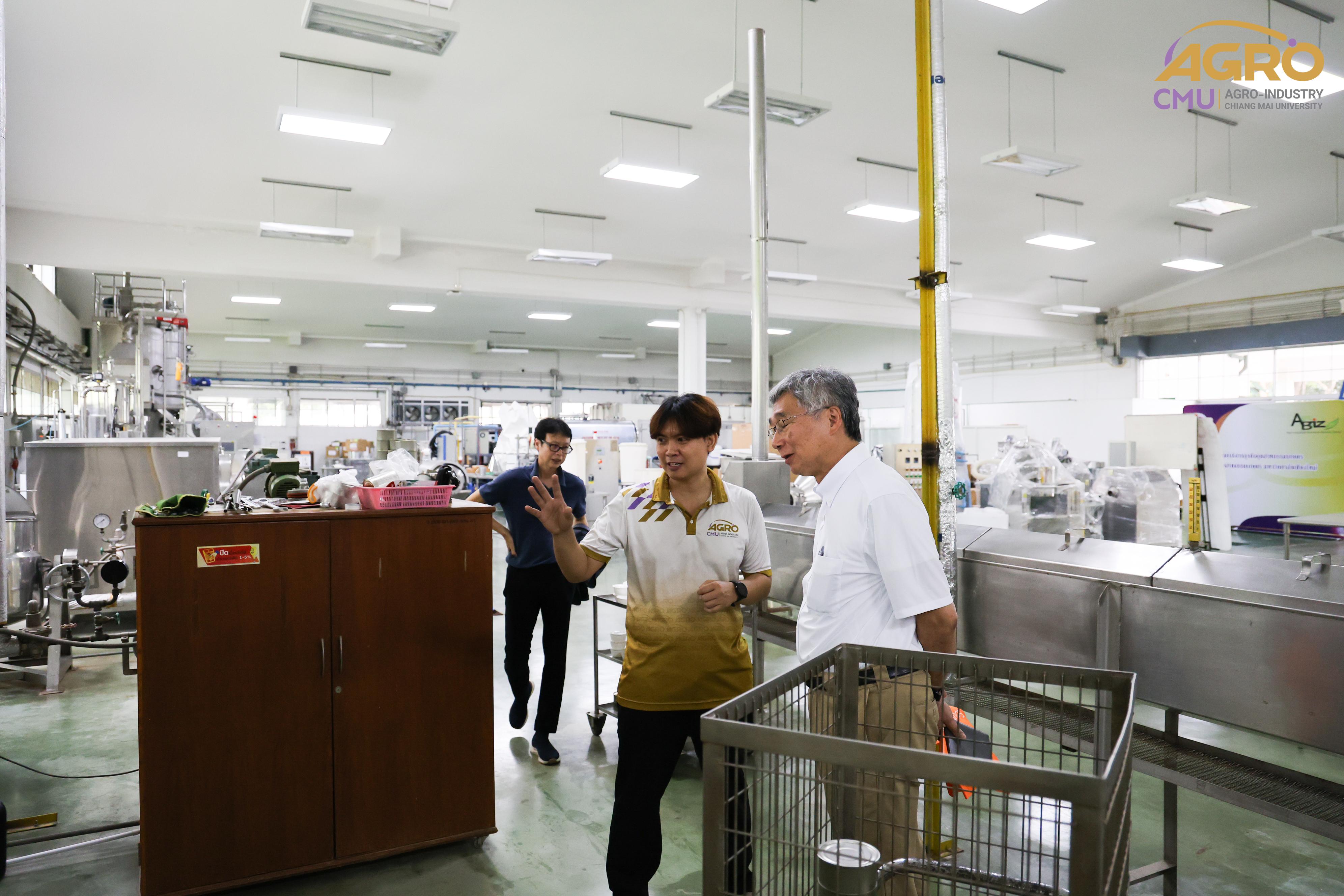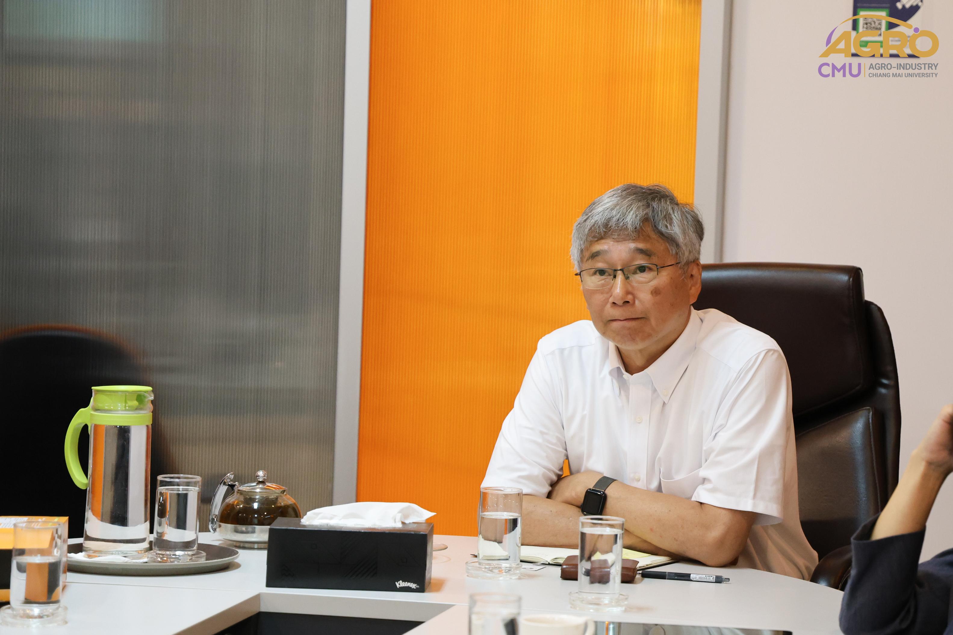 On July 16, 2024, Associate Professor Dr. Yuttana Phimolsiripol, Dean of the Faculty of Agro-Industry, along with the administration and faculty members, welcomed Professor Dr. Kenji Sato, an expert from the Graduate School of Agriculture at Kyoto University. The visit aimed to discuss the feasibility of establishing academic collaborations. The guests were also given a tour of the FIN Center, the laboratories, and the pilot plant of the Faculty of Agro-Industry.