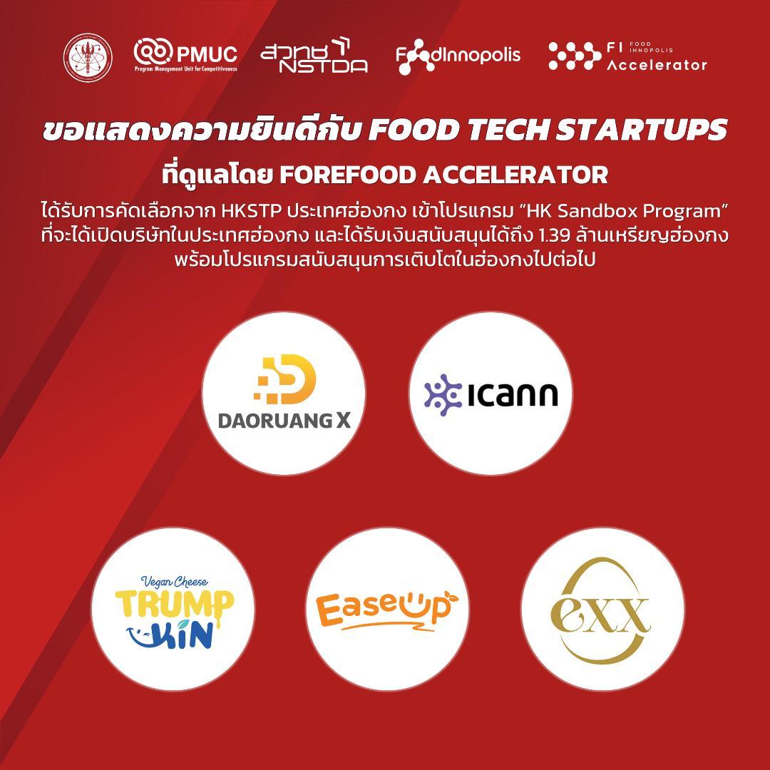 คณะอุตสาหกรรมเกษตร ขอแสดงความยินดีกับ Food Tech Startups (ภายใต้การดูแลของ Forefood Accelerator) จำนวน 5 กิจการ (DAORUANG X, ICANN, TRUMKIN, EASE UP FOOD, EXX PLANT ORIGIN)
