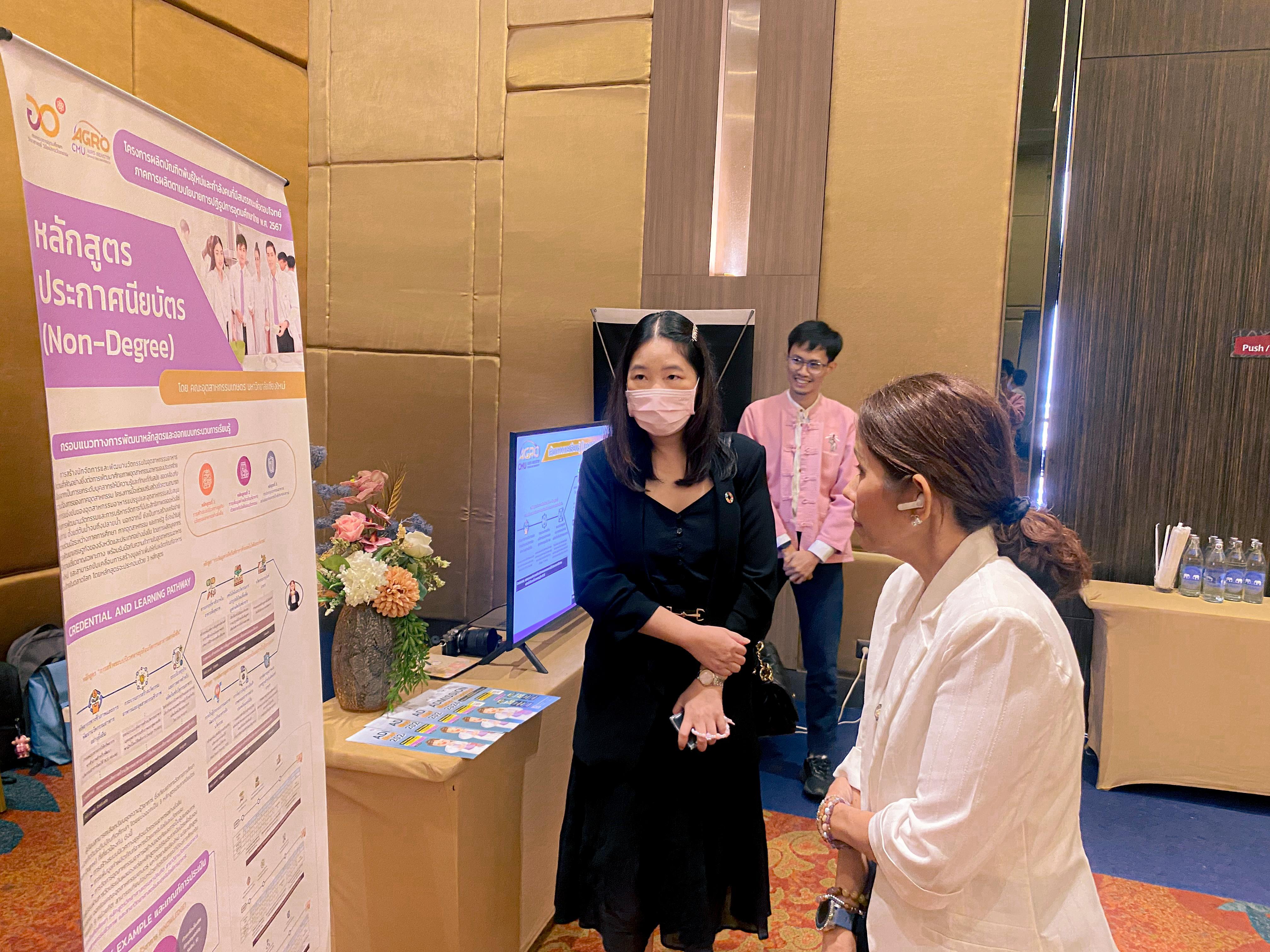 On September 12, 2024, the Faculty of Agro-Industry (Samut Sakhon), representing Chiang Mai University and led by Asst. Prof. Dr. Wirachchaya Chanpuypetch and her team, participated in a workshop aimed at capacity building and developing a highly skilled workforce linked to lifelong learning for sustainable livelihoods. This event was part of the "New Growth Engine Project", the Office of the Permanent Secretary, Ministry of Higher Education, Science, Research and Innovation. Additionally, the faculty showcased the non-degree programs for the fiscal year 2024 and set up an exhibition booth, organized by the Faculty of Agro-Industry (Samut Sakhon), at the Best Western Plus Wanda Grand Hotel in Nonthaburi Province.
