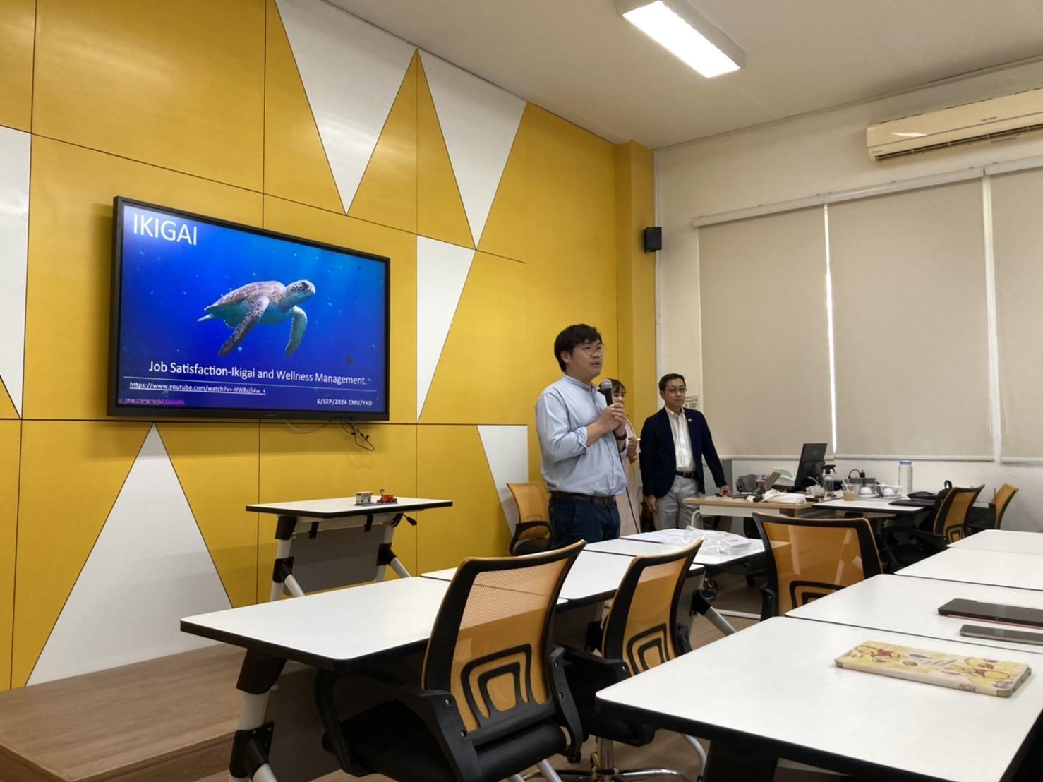 On September 6, 2024, Associate Professor Dr. Sutee Wangtueai, Vice Dean of the Faculty of Agro-Industry, gave a welcome speech at the opening ceremony for the training of “Japanese Working Culture IKIGAI : Meaning of Being” at the classroom 1-219, the Faculty of Agro-industry.