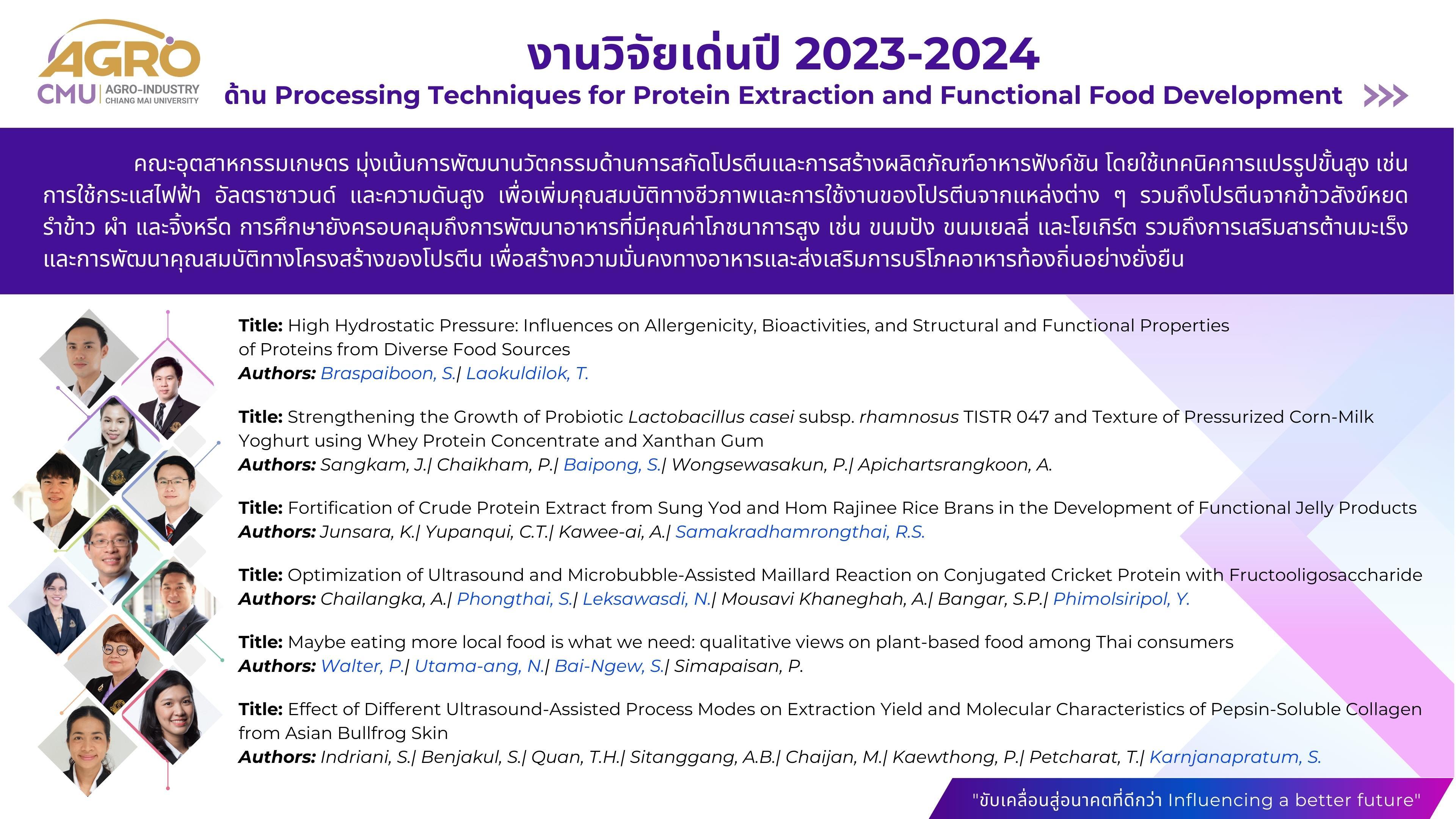 งานวิจัยเด่นปี 2023-2024 ด้าน Processing Techniques for Protein Extraction and Functional Food Development