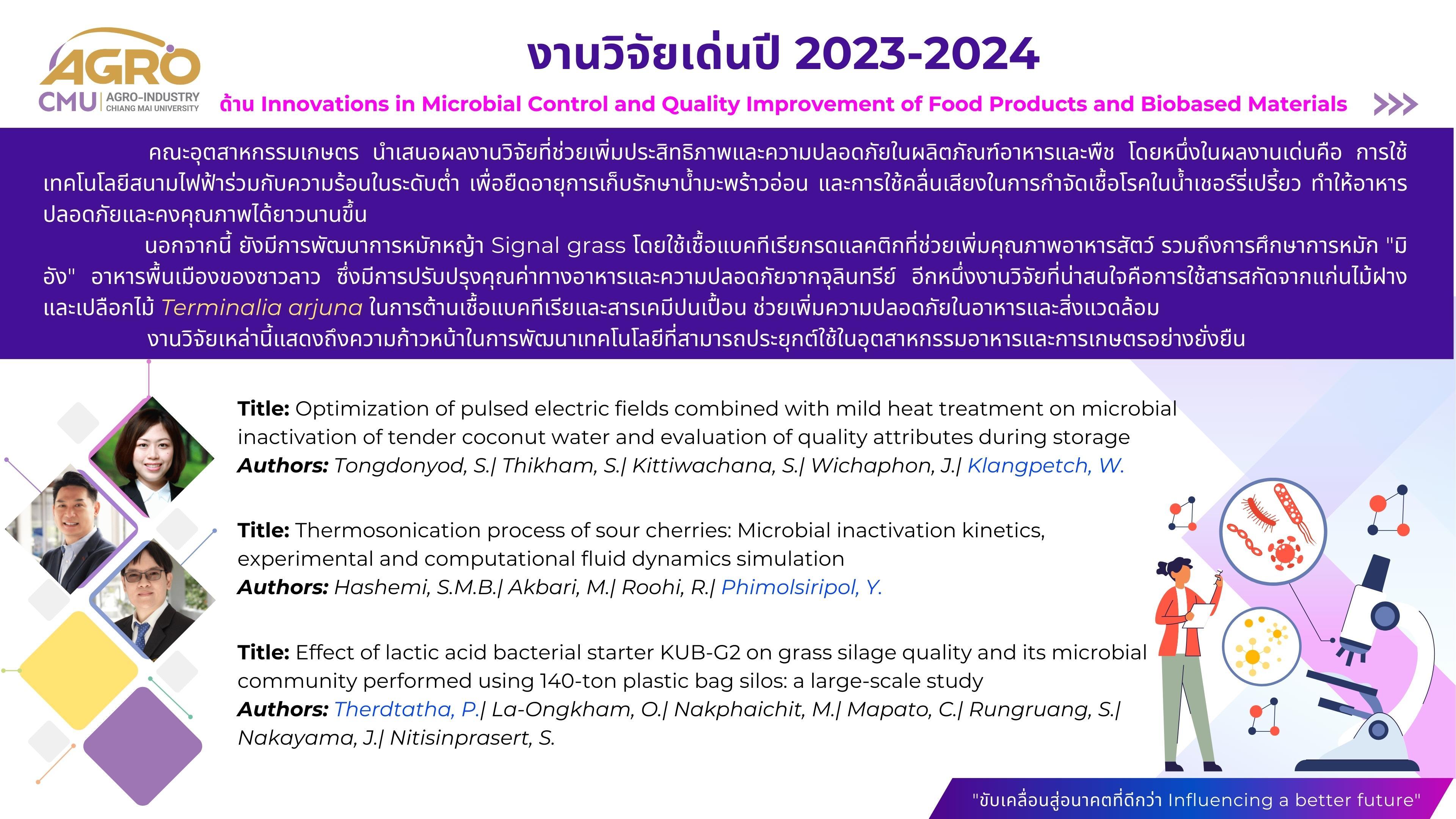 งานวิจัยเด่นปี 2023-2024 ด้าน Innovations in Microbial Control and Quality Improvement of Food Products and Biobased Materials