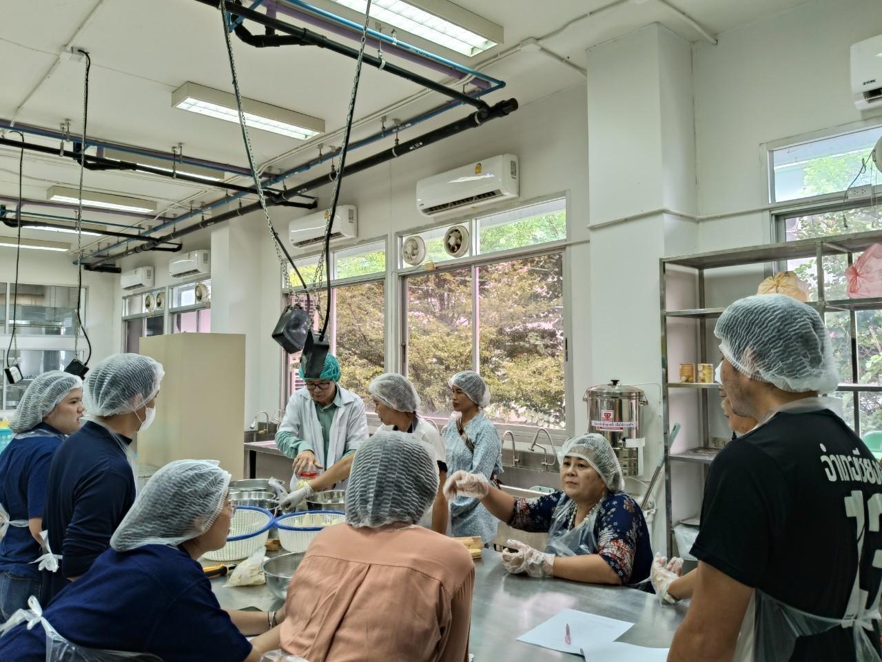 "The Faculty of Agro-Industry supports community empowerment to sustainably and sufficiently coexist with forests by organizing a quality bamboo shoot fermentation training for representatives of Ban Kaeng Pantao community, Mae Na Subdistrict, Chiang Dao District, Chiang Mai, and staff from the Mae Fah Luang Foundation under Royal Patronage. This initiative is part of the Carbon Credit Management in Forests for Sustainable Development Project. The training was held on September 25, 2024, at the Faculty of Agro-Industry, with Mr.Israpong Pongsirikul from the Division of Product Development Technology serving as the workshop's trainer."