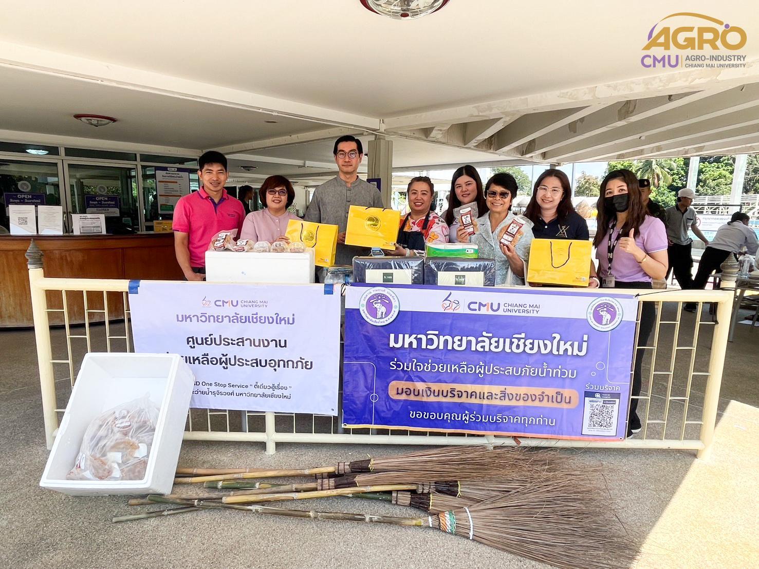 วันที่ 8 ตุลาคม 2567 รองศาสตราจารย์ ดร.พิสิฐ ศรีสุริยจันทร์ รองคณบดีคณะอุตสาหกรรมเกษตร นำทีมอุตสาหกรรมเกษตรร่วมส่งความช่วยเหลือไปยังผู้ประสบอุทกภัย นอกจากนี้ ยังได้ส่งมอบผลิตภัณฑ์ของคณะฯ เช่น ไส้อั่วลดไขมัน เพื่อเป็นกำลังใจให้กับทีมงานอาสาสมัครภายใต้การดำเนินงานของกองพัฒนานักศึกษา มหาวิทยาลัยเชียงใหม่ ซึ่งการร่วมสนับสนุนในครั้งนี้นอกจากจะส่งมอบผลิตภัณฑ์ของคณะฯ แล้ว ยังได้มอบสิ่งของจำเป็น เช่น น้ำ อาหารแห้ง รวมถึงอุปกรณ์ทำความสะอาดและสิ่งของอื่นๆ เพื่อช่วยบรรเทาความเดือดร้อนของผู้ประสบภัยและเพื่อช่วยให้สามารถซ่อมแซมปรับปรุงที่อยู่อาศัยเบื้องต้นได้ การช่วยเหลือผู้ประสบภัยครั้งนี้ไม่ได้เป็นเพียงแค่การมอบสิ่งของที่จำเป็นเท่านั้น แต่ยังเป็นการส่งมอบกำลังใจให้แก่ผู้ที่ได้รับผลกระทบจากอุทกภัยอีกด้วย อันแสดงให้เห็นถึงความเข้มแข็งและความสามัคคีของมหาวิทยาลัยในยามวิกฤต คณะอุตสาหกรรมเกษตรขอร่วมส่งกำลังใจจากใจจริงไปยังผู้ที่ได้รับผลกระทบทุกคน