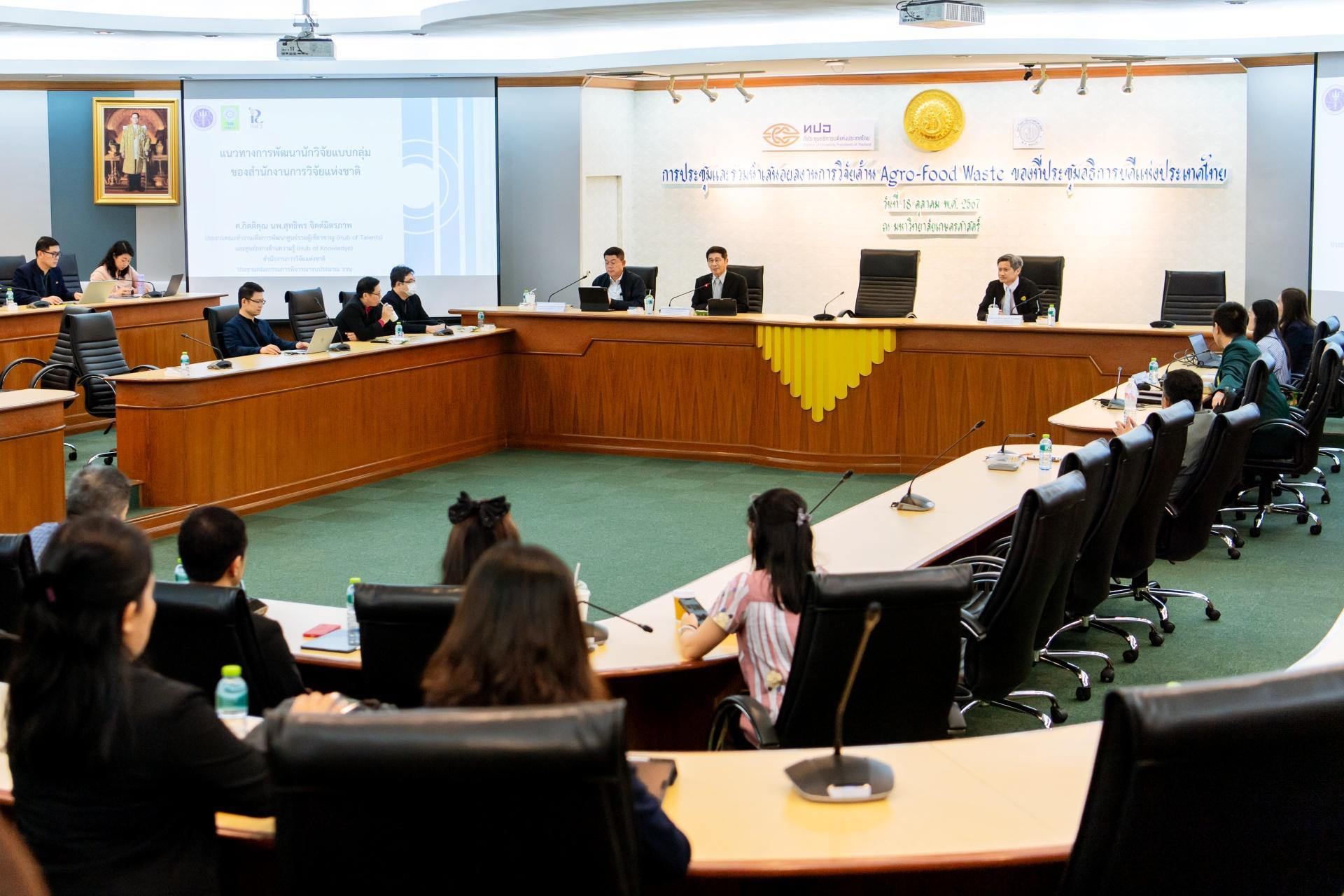 โดยมีนโยบายขับเคลื่อนงานวิจัยด้าน Waste Management and Utilization เพื่อสร้างเครือข่ายวิจัยด้าน Agro-Food Waste ด้วยปัจจุบัน ปัญหาเศษอาหารเหลือทิ้งทางการเกษตรนับได้ว่าเป็นปัญหาใหญ่ของประเทศไทย ซึ่งส่งผลกระทบต่อสิ่งแวดล้อมและเศรษฐกิจอย่างมาก จึงได้มีการหารือถึงการกำจัดเศษอาหารเหลือทิ้งจากภาคการเกษตร ผ่านกระบวนการ Recycle ซึ่งเป็นหนึ่งในกระบวนการที่เป็นมิตรกับสิ่งแวดล้อมที่สามารถใช้ได้อย่างแพร่หลายอีกวิธีหนึ่ง ซึ่งการประชุมดังกล่าวจัดขึ้น ณ มหาวิทยาลัยเกษตรศาสตร์ กรุงเทพมหานคร