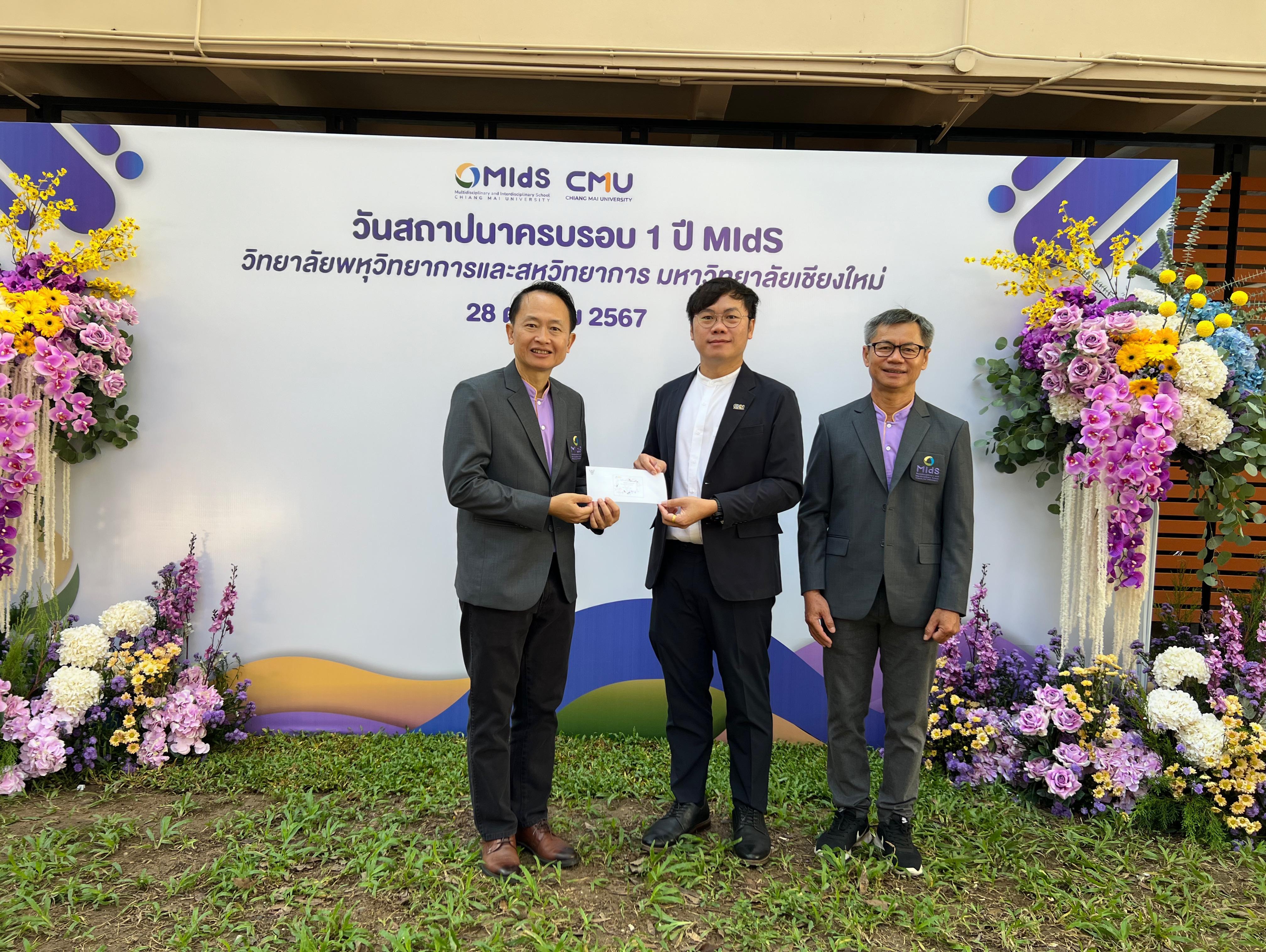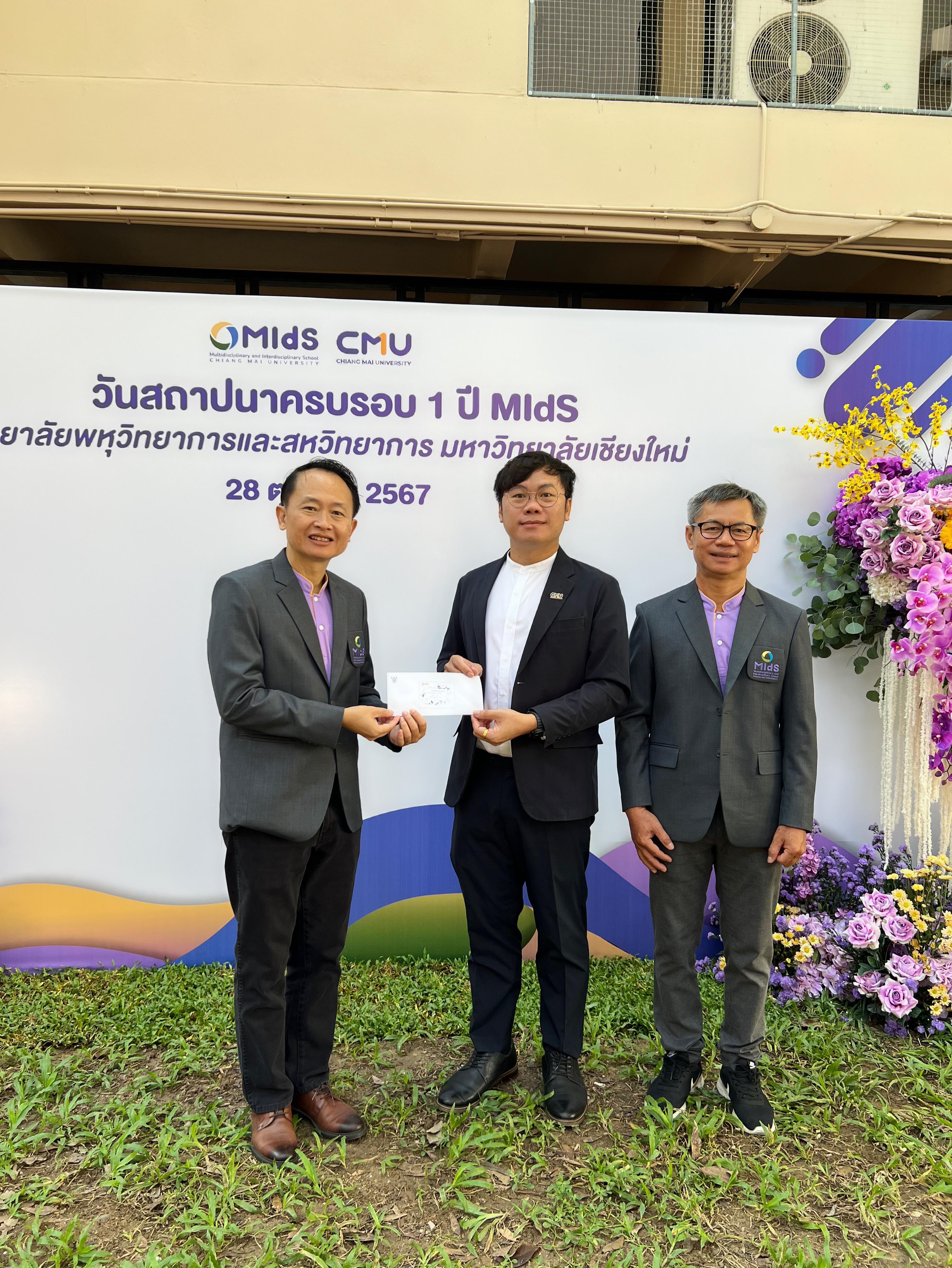 On 28th October 2024, Associate Professor Dr.Sutee Wangtueai, Vice Dean of the faculty of Agro-Industry, participated in the merit-making ceremony to celebrate the 1th Anniversary of the establishment of the Multidisciplinary and Interdisciplinary School (MIdS), which including the Handover Ceremony of Grant for the participants through the collaborative effort leads to the improvement of the learning and teaching program under the collaboration of the Multidisciplinary and Interdisciplinary School (MIdS). This event took place at 1st floor, the Multidisciplinary and Interdisciplinary School (MIdS), CMU